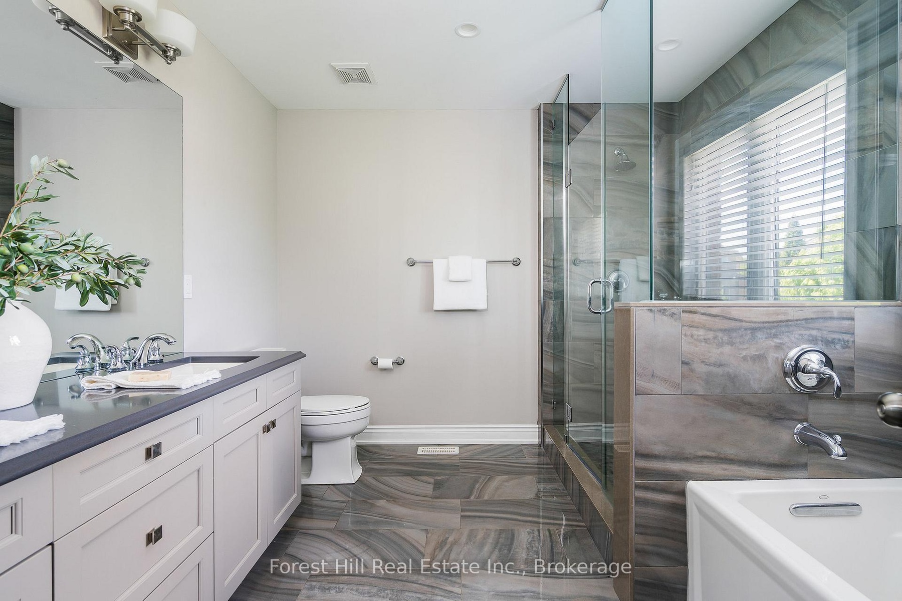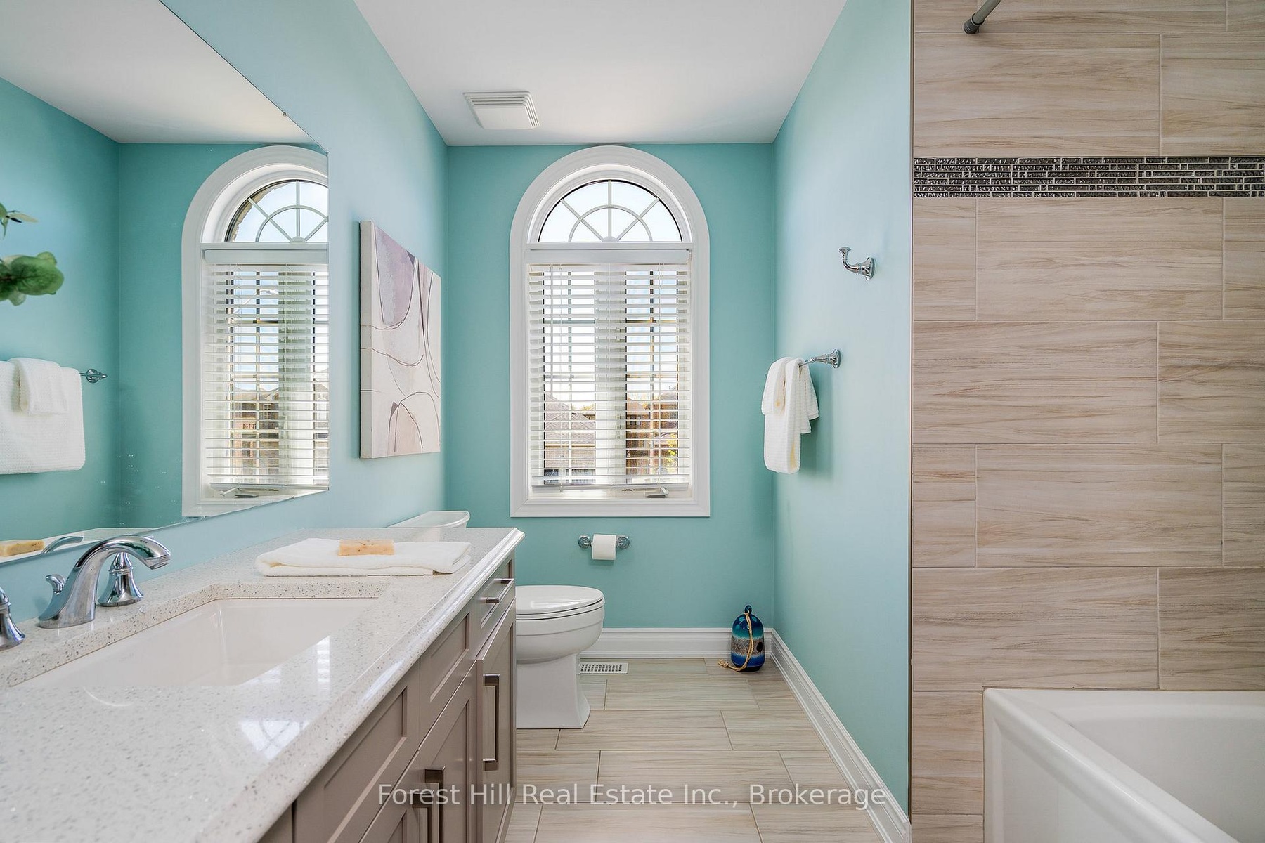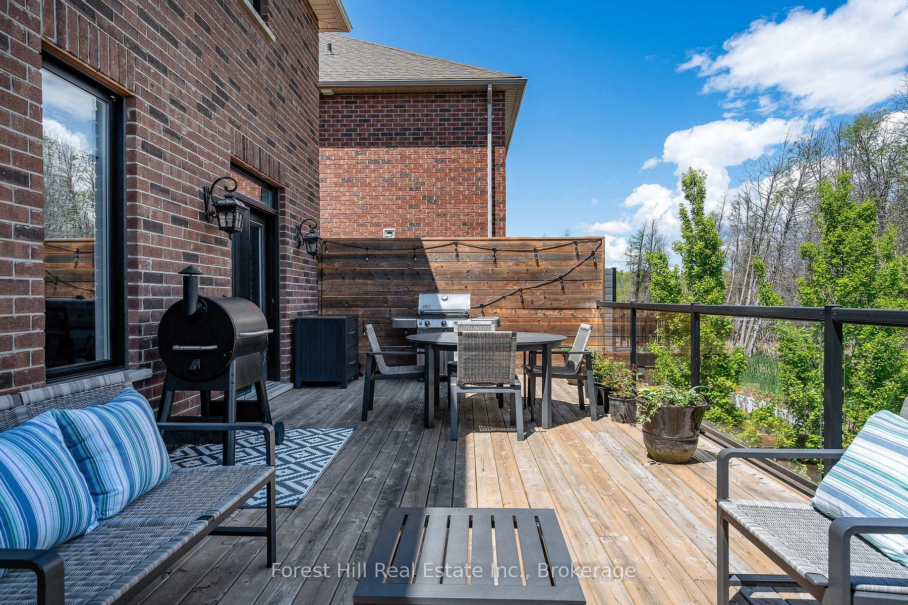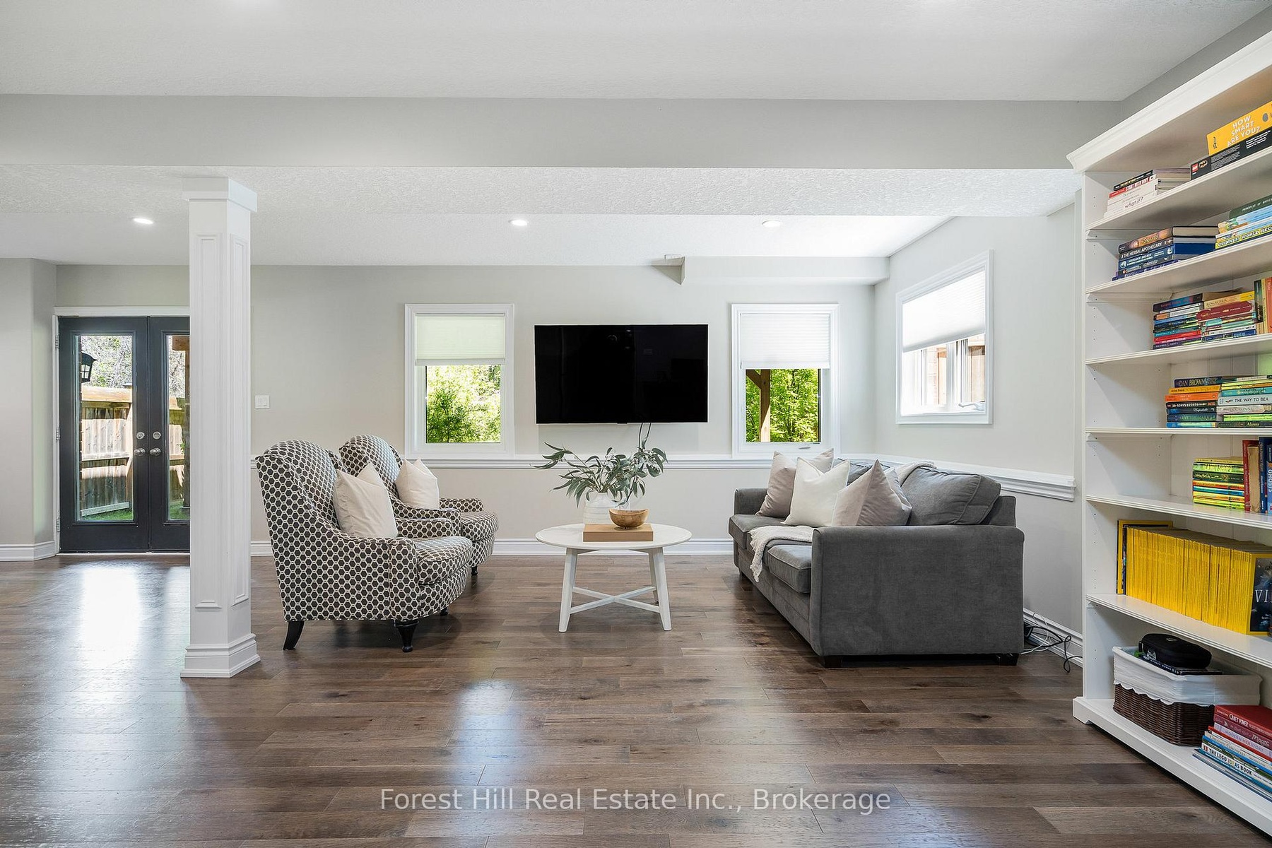 Charming Family Home with original owners in the Heart of South Barrie. Nestled on an idyllic street in a vibrant, family-friendly South Barrie neighborhood, this stunning all-brick-and-stone home is a rare gem. Just steps from top-rated Catholic and public elementary schools, this location is perfect for growing families seeking convenience and community. Step inside to discover a bright and airy open-concept main floor, bathed in natural light with gleaming hardwood floors and an abundance of clever storage solutions. The seamless flow between the living, dining, and kitchen areas creates an inviting space perfect for entertaining or cozy family nights.The luxuriously finished bathroom is a spa-inspired retreat, boasting high-end fixtures and meticulous attention to detail. Upstairs, three well-appointed bedrooms offer ample space for rest and relaxation. The fully finished walk-out-basement, provides endless possibilities as a home theater, playroom, or private office. Outside offers established shrubs and charming garden which creates a welcoming curb appeal, while the backyards towering trees form a serene, green retreat. Enjoy summer barbecues or tranquil evenings on the expansive large deck, perfect for creating lasting memories.