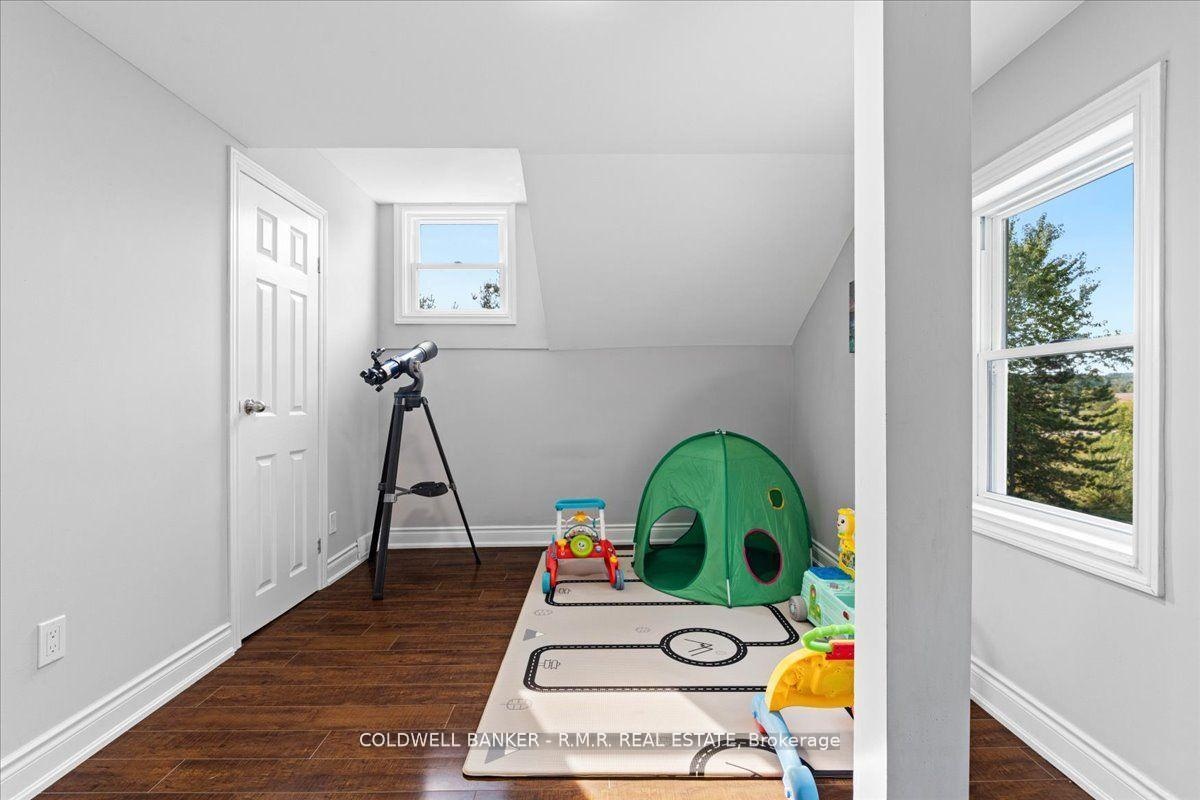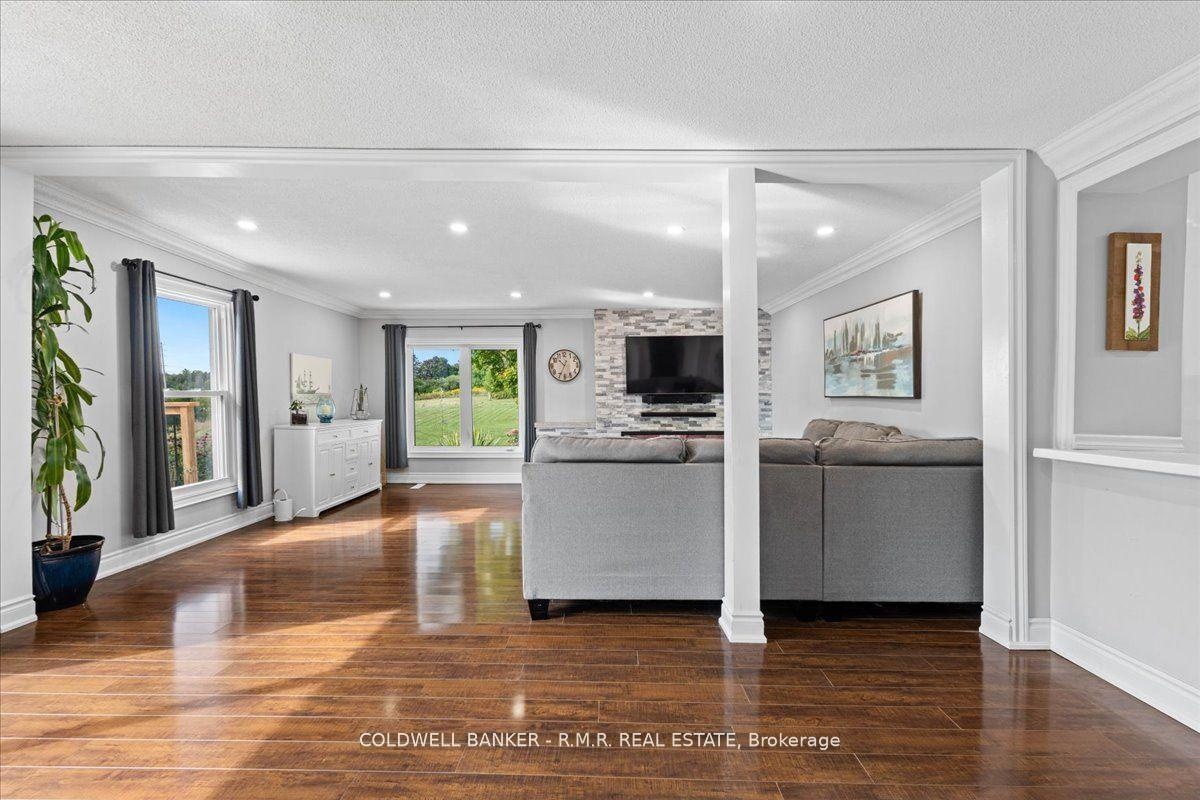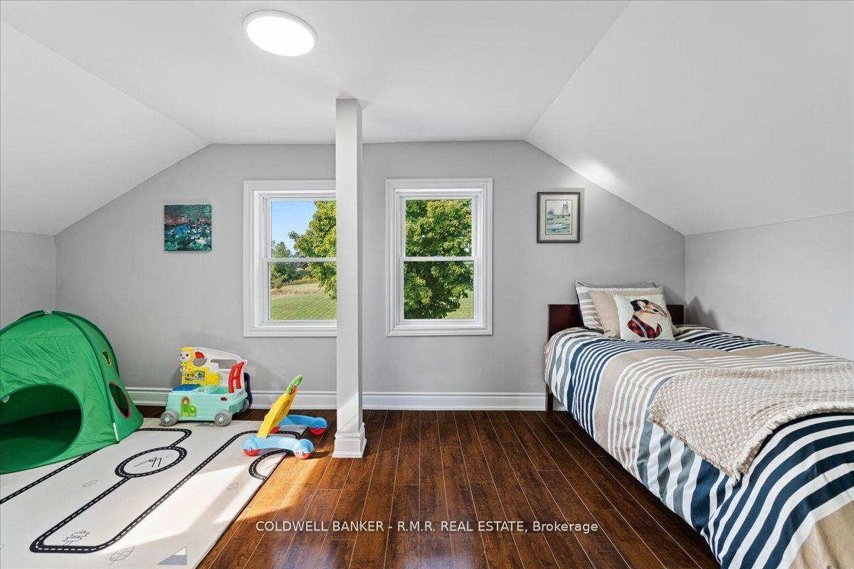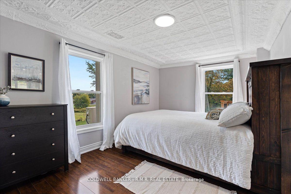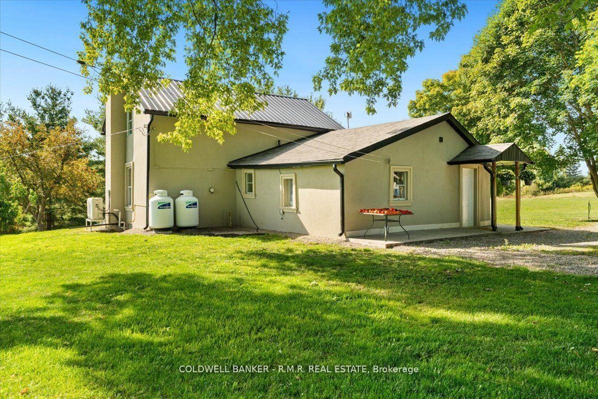 Step into this beautifully updated century home, tucked away on a gorgeous 7.5-acre country property that blends charm with practicality. Surrounded by nature and set up for rural living, the land comes with a barn, shed, and horse paddock-perfect if you're into riding, farming, or just want space to roam. A peaceful stream winds through the property, adding a touch of storybook magic to the setting. Inside, the detached home has been completely renovated but still holding onto its timeless character. The open-concept living and dining area is warm and welcoming, with fresh flooring throughout and an electric fireplace that makes it feel extra cozy. Just off the dining room, a huge new deck stretches out into the backyard and fire pit, ideal for summer BBQ's, morning coffee, or simply kicking back and enjoying the view. Speaking of views every window looks out over your own land, so whether you're gazing at the paddocks, the stream, or massive mature trees in your own yard, you're always connected to the beauty around you. The home features three roomy bedrooms and two full bathrooms, plus a bright, modern kitchen with new appliances. Recent updates include windows, exterior stucco, a new gas furnace, metal roof, and eavestroughs; so it's not just beautiful, it's built to last. Whether you're dreaming of a quieter lifestyle, a place for your horses, or just move -in-ready home with space to breathe, this property offers a rare mix of comfort, character, and country living.