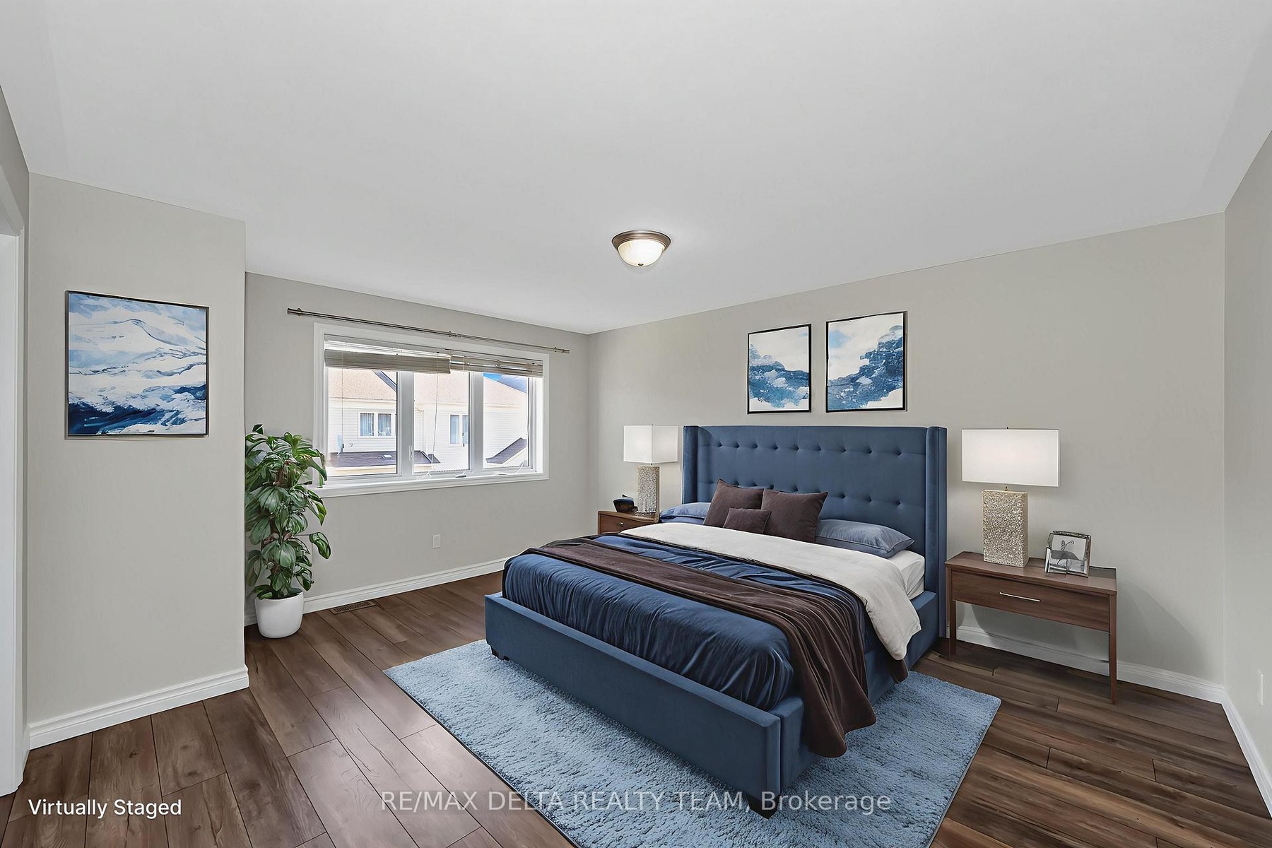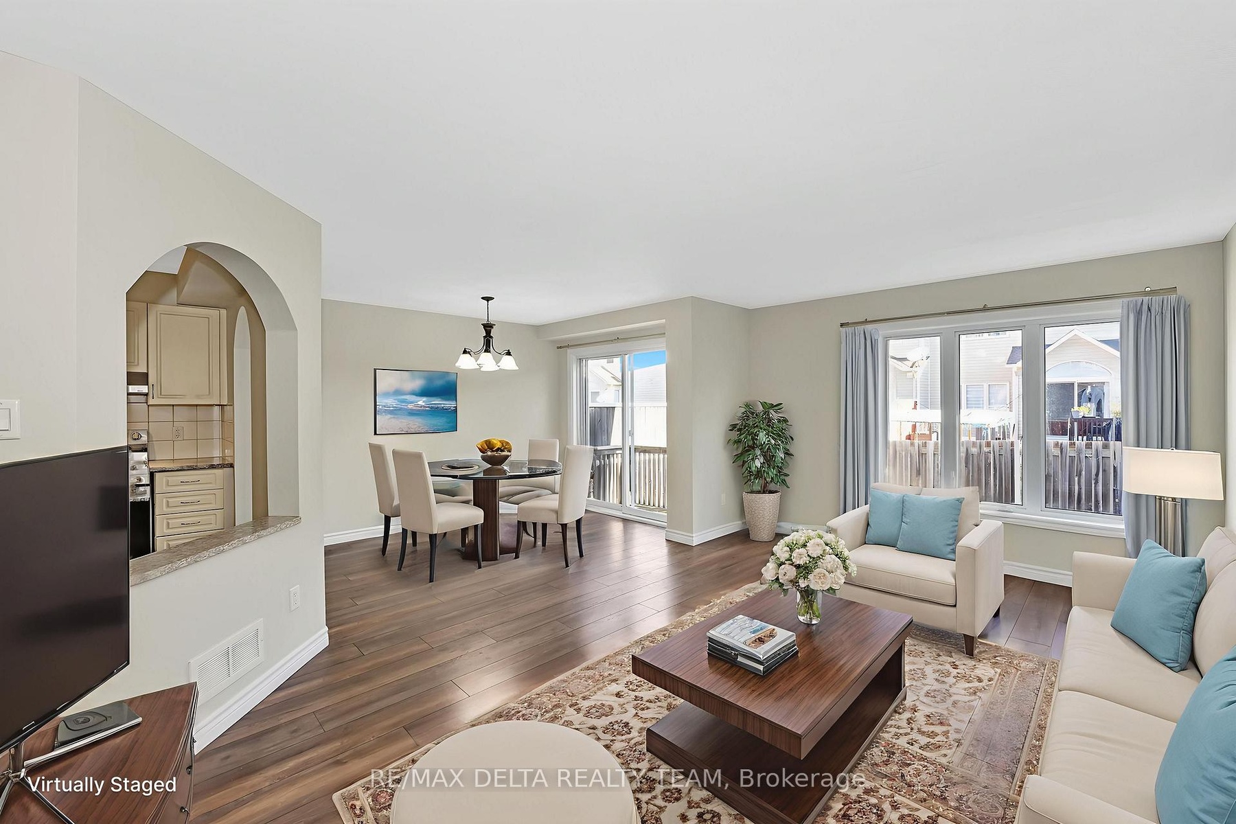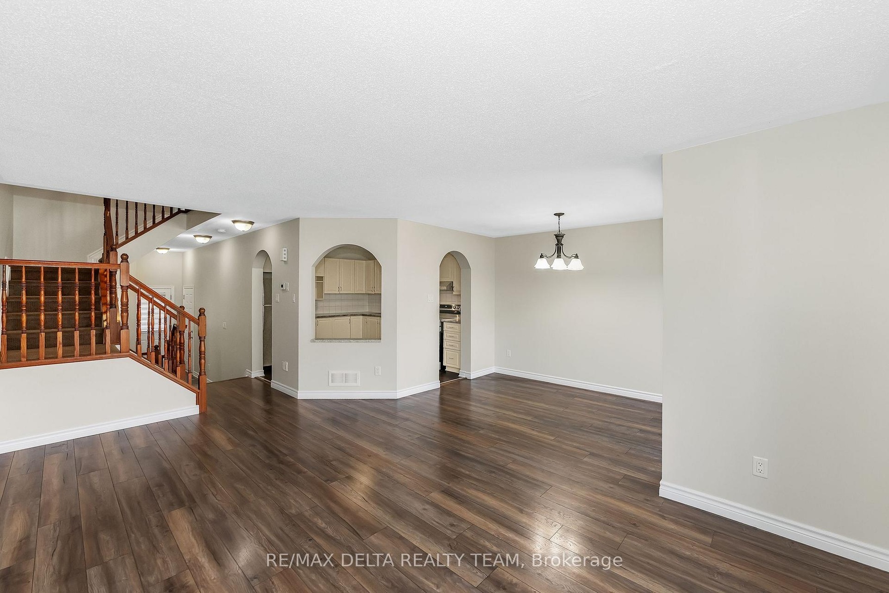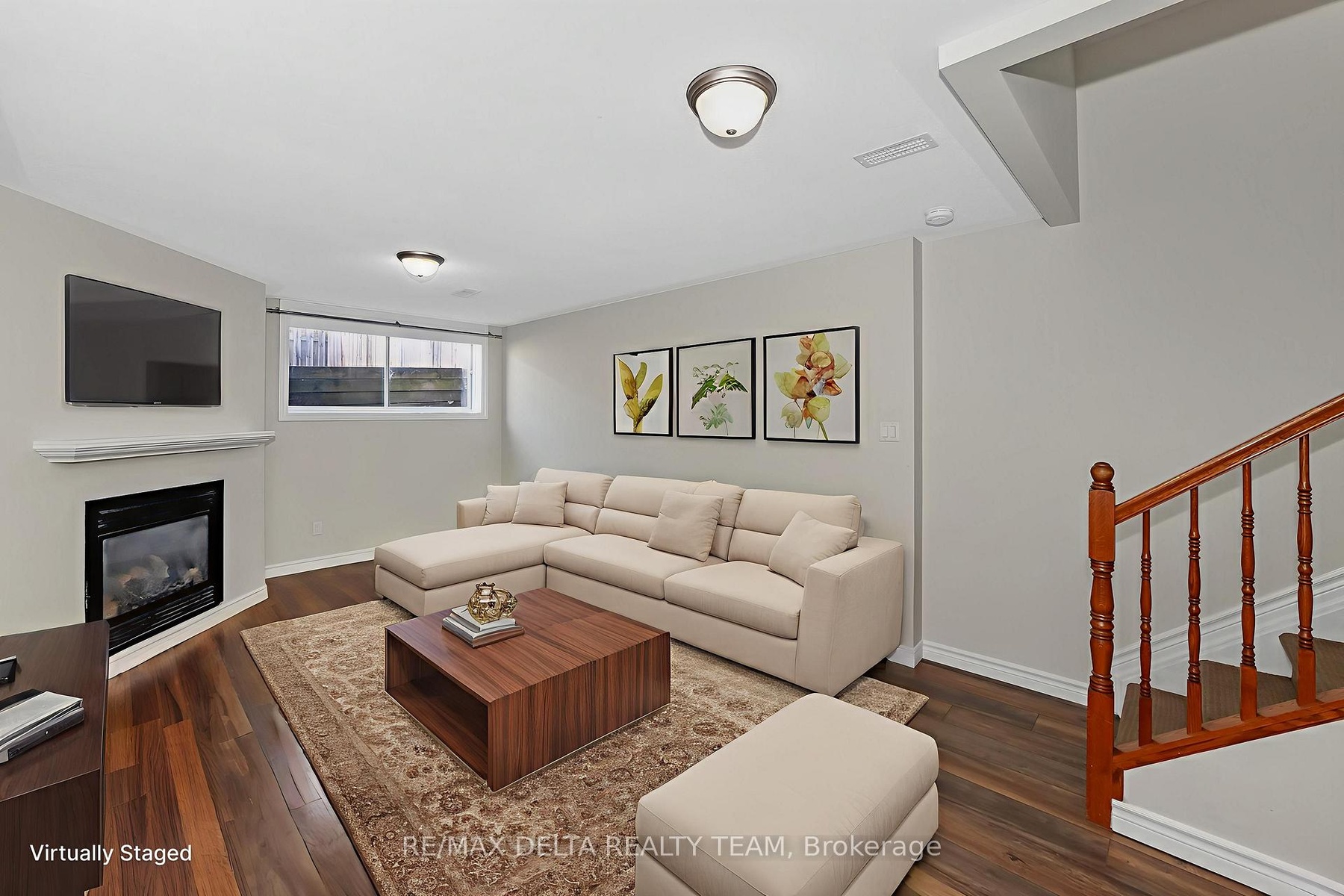Beautiful Family Home in Sought-After Avalon. Welcome to this bright and spacious family-oriented home. Step into a tiled foyer with convenient garage access and a main-floor powder room. The new laminate flooring flows throughout the open-concept living and dining areas as well as the entire bedroom level, creating a warm and modern feel. The freshly painted interior, done in stylish designer tones, offers a clean and contemporary look ready for your personal touch. The kitchen features off-white cabinetry, a tile backsplash, dark tile flooring, and stainless steel appliances - plus a cozy eating area perfect for family meals. The patio door off the living room opens to a private yard, ideal for relaxing or barbecuing. Upstairs, you'll find a large primary bedroom with a walk-in closet and a full ensuite complete with a soaker tub and separate shower. Two additional bedrooms provide plenty of space for children or guests and share a 4-piece main bathroom. The fully finished lower level offers a bright recreation/playroom featuring a gas fireplace - a perfect spot for cozy movie nights. There's also ample storage space and a laundry area on this level. Located close to schools, parks, shopping, restaurants, and the community recreation centre, this home is ideal for growing families seeking comfort, space, and convenience.