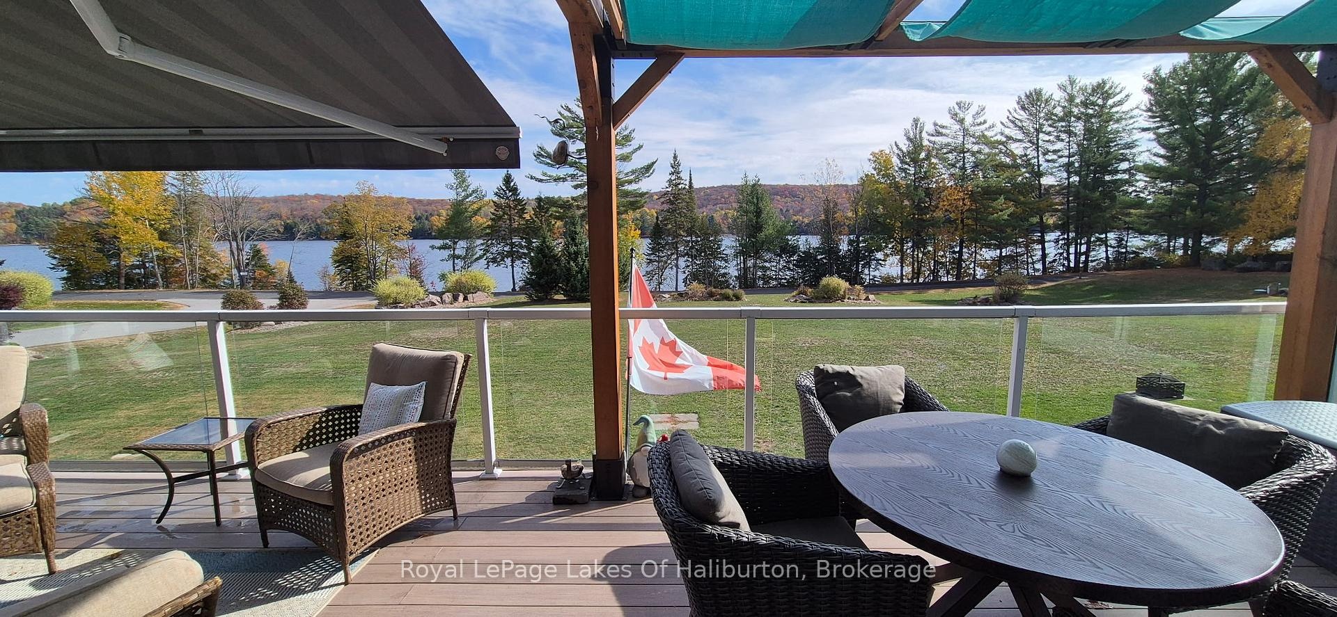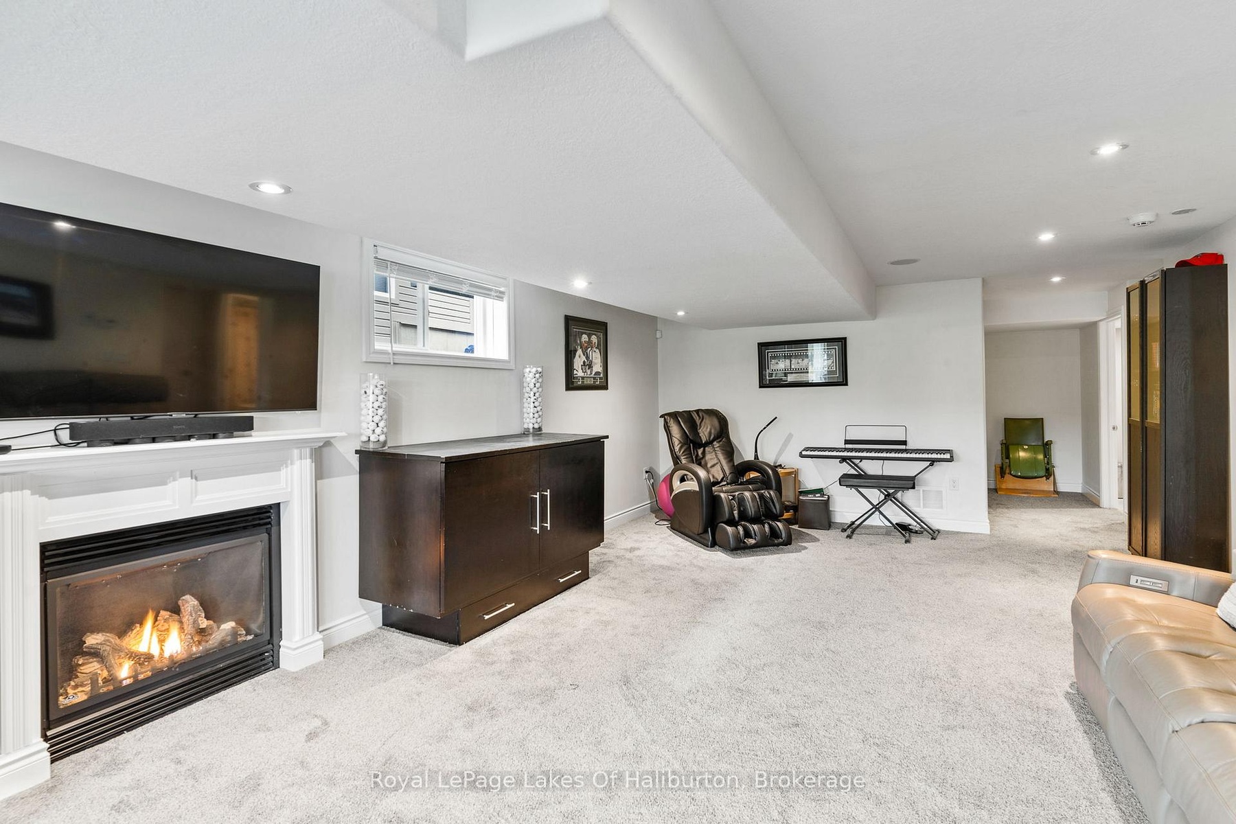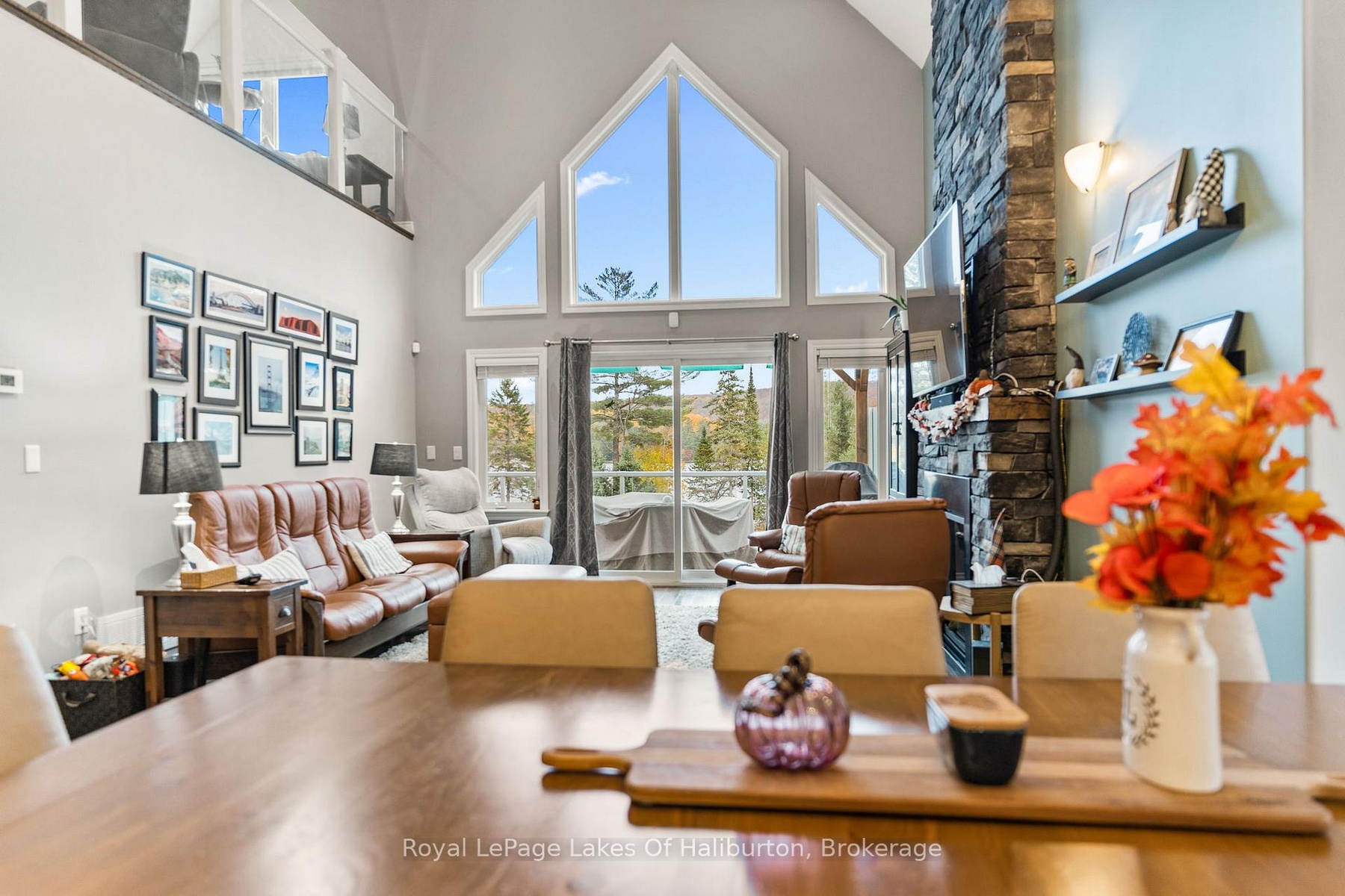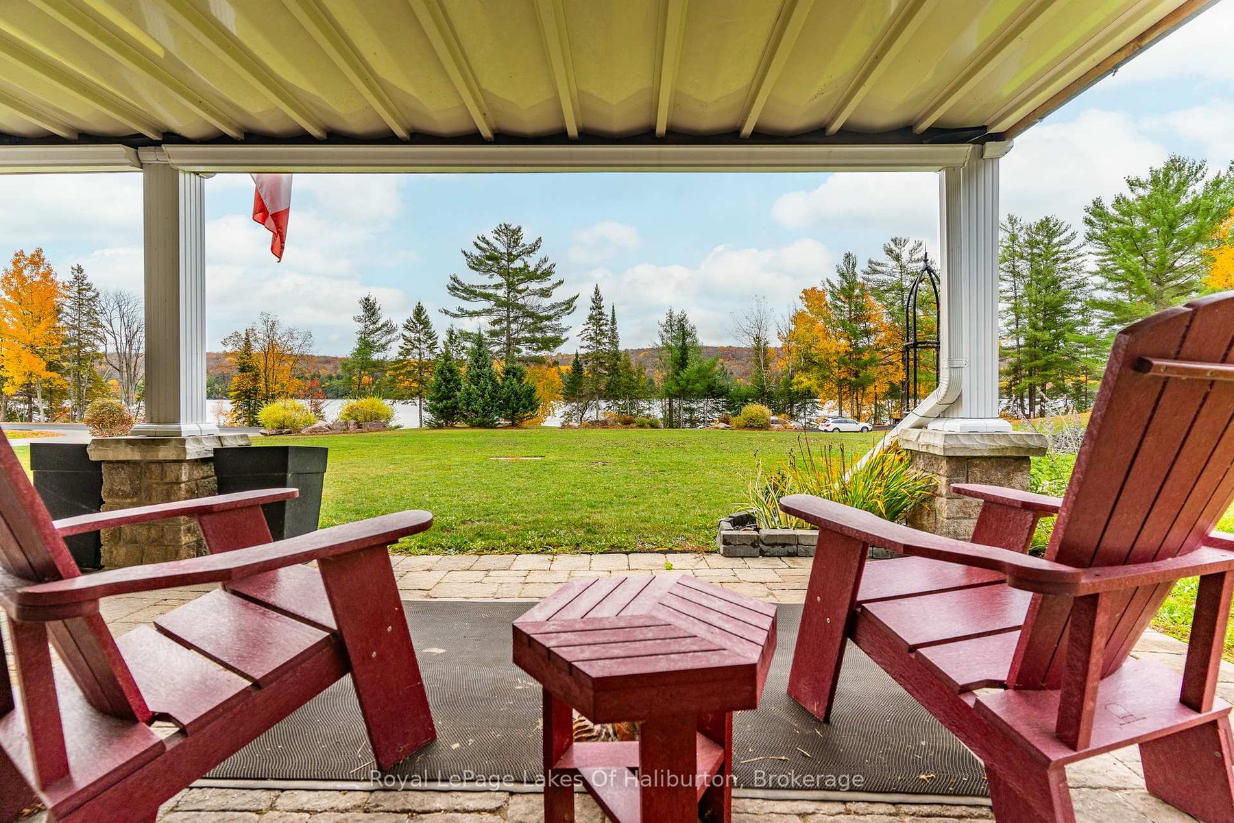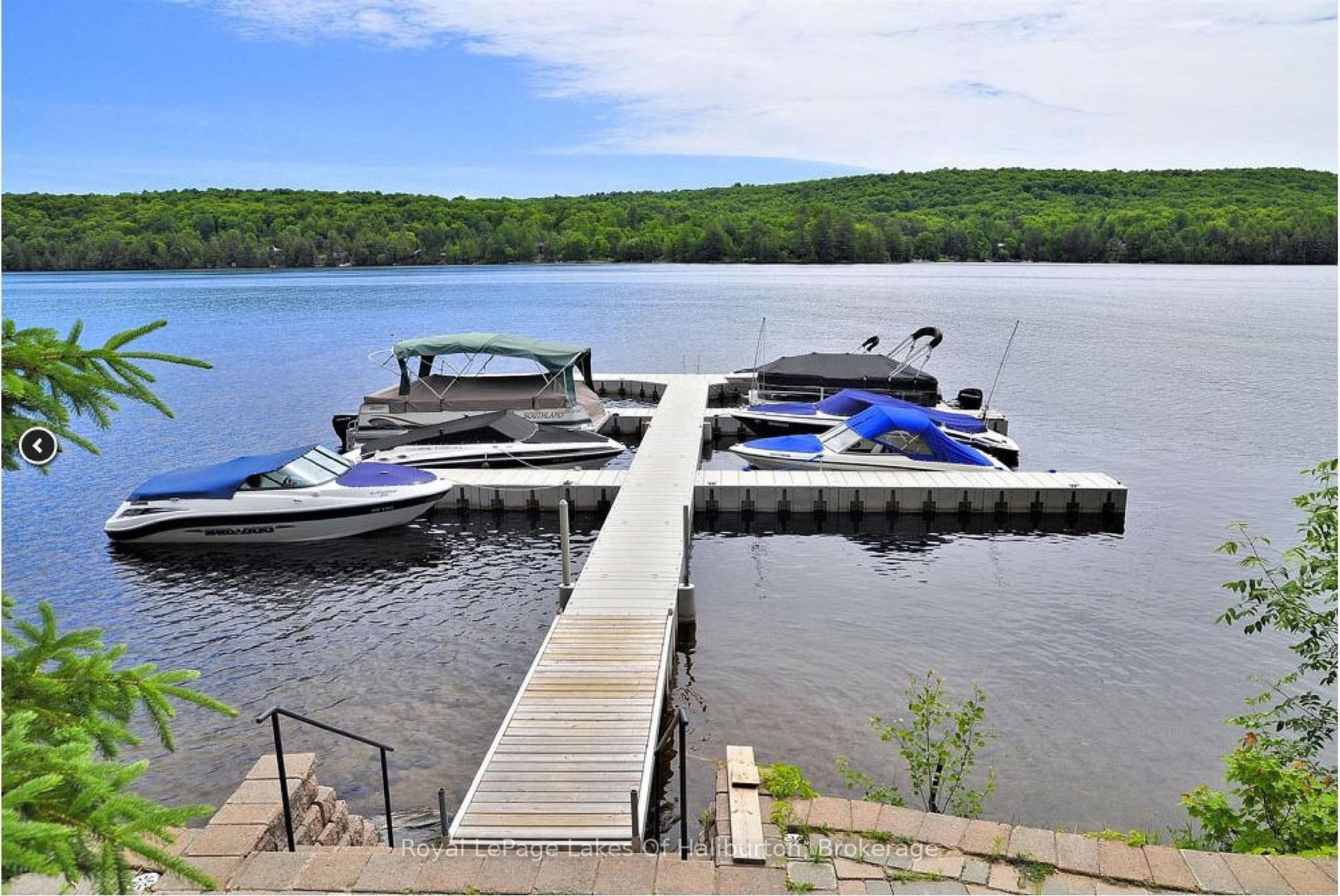 Welcome to this 4-bedroom, 4-bathroom executive home in the prestigious Silver Beach waterfront community on Kashagawigamog Lake, part of the sought-after 5-lake chain. With 2,955 sq. ft. of refined living space, this home combines quality craftsmanship, luxury finishes, and spectacular lake views.The foyer offers keyless entry, retractable screen, and tile floors leading to a gourmet kitchen with upgraded cabinetry, granite counters, under-cabinet lighting, sit-up area, stainless steel appliances, and elegant fixtures. The great room impresses with cathedral ceilings, a stunning floor-to-ceiling stone propane fireplace, hardwood floors, soaring windows, and walkout to a lakeside composite deck featuring a cedar timber-frame pergola and BBQ area and endless lakeviews.The primary suite provides a peaceful retreat with walkout to the deck and awning, ceiling fan, ensuite with heated floors and glass shower. The upper level offers a bright family room with glass panels overlooking the great room, high ceilings, hardwood flooring, 2 bedrooms, carpeted, ceiling fans, and custom blinds, while a walk-in closet area adds generous storage and 4pc bath with soaker tub.The lower level features a spacious rec room with propane fireplace, pot lights, and walkout to an interlocking lakeside patio. A guest suite offers a walkout to waterside patio, walk-in closet, and 4-pc ensuite. Additional highlights include, all bathrooms with heated floors, a multi-zone HVAC system, new hot water on demand (2025), 18W Generac generator, NFTC fibre optics, and a heated, insulated garage with storage and retractable screen. Exterior upgrades include programmable soffit lighting, glass railings, firepit area, and under-deck shielding.Enjoy exclusive access to the Silver Beach Clubhouse featuring a grand hall, kitchen, fitness center, games room, guest suite, two beaches & trails, close to Haliburton for all your amenities. Dock slip available to purchase ($25K). See full list of features.