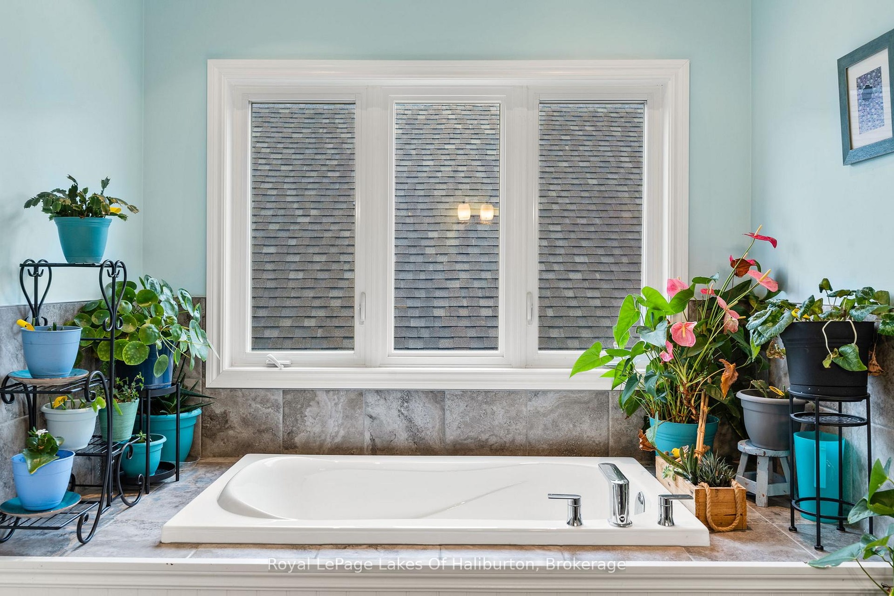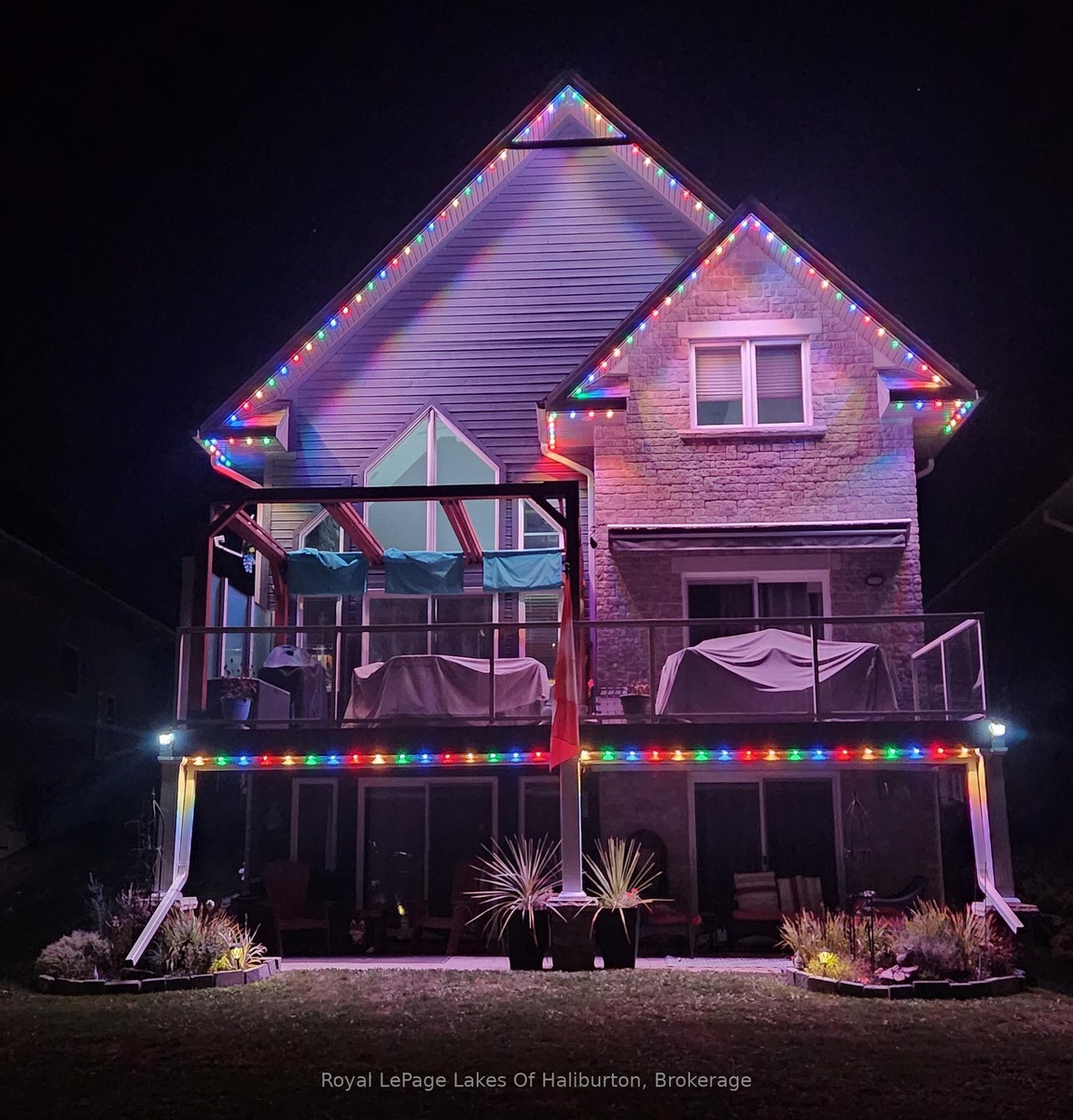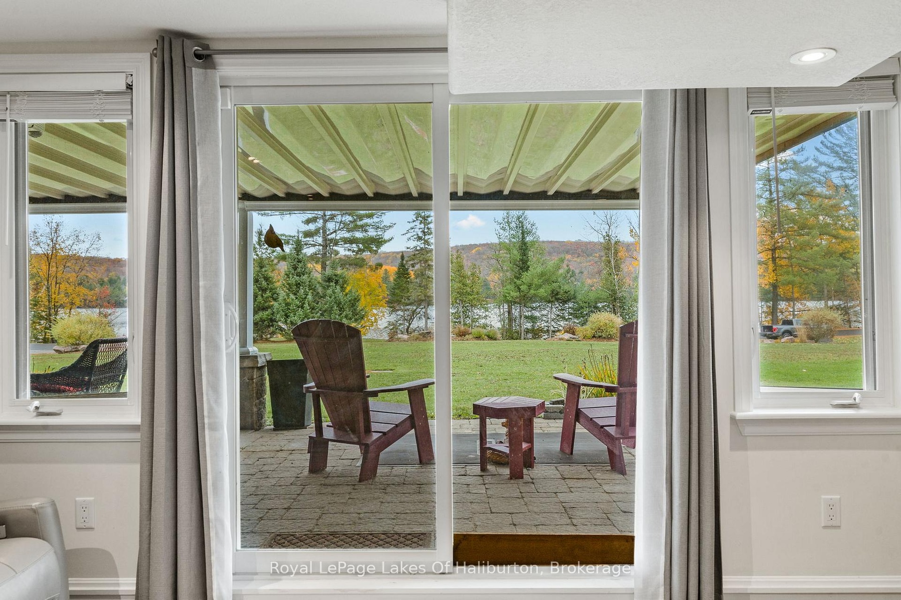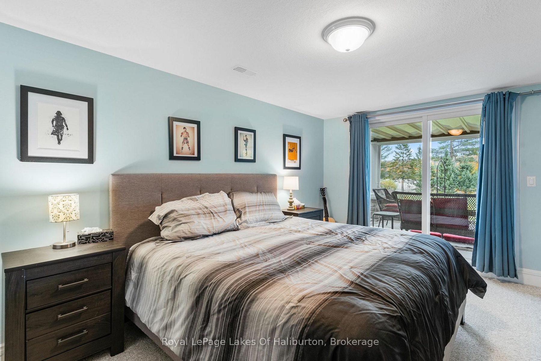 Welcome to this 4-bedroom, 4-bathroom executive home in the prestigious Silver Beach waterfront community on Kashagawigamog Lake, part of the sought-after 5-lake chain. With 2,955 sq. ft. of refined living space, this home combines quality craftsmanship, luxury finishes, and spectacular lake views.The foyer offers keyless entry, retractable screen, and tile floors leading to a gourmet kitchen with upgraded cabinetry, granite counters, under-cabinet lighting, sit-up area, stainless steel appliances, and elegant fixtures. The great room impresses with cathedral ceilings, a stunning floor-to-ceiling stone propane fireplace, hardwood floors, soaring windows, and walkout to a lakeside composite deck featuring a cedar timber-frame pergola and BBQ area and endless lakeviews.The primary suite provides a peaceful retreat with walkout to the deck and awning, ceiling fan, ensuite with heated floors and glass shower. The upper level offers a bright family room with glass panels overlooking the great room, high ceilings, hardwood flooring, 2 bedrooms, carpeted, ceiling fans, and custom blinds, while a walk-in closet area adds generous storage and 4pc bath with soaker tub.The lower level features a spacious rec room with propane fireplace, pot lights, and walkout to an interlocking lakeside patio. A guest suite offers a walkout to waterside patio, walk-in closet, and 4-pc ensuite. Additional highlights include, all bathrooms with heated floors, a multi-zone HVAC system, new hot water on demand (2025), 18W Generac generator, NFTC fibre optics, and a heated, insulated garage with storage and retractable screen. Exterior upgrades include programmable soffit lighting, glass railings, firepit area, and under-deck shielding.Enjoy exclusive access to the Silver Beach Clubhouse featuring a grand hall, kitchen, fitness center, games room, guest suite, two beaches & trails, close to Haliburton for all your amenities. Dock slip available to purchase ($25K). See full list of features.