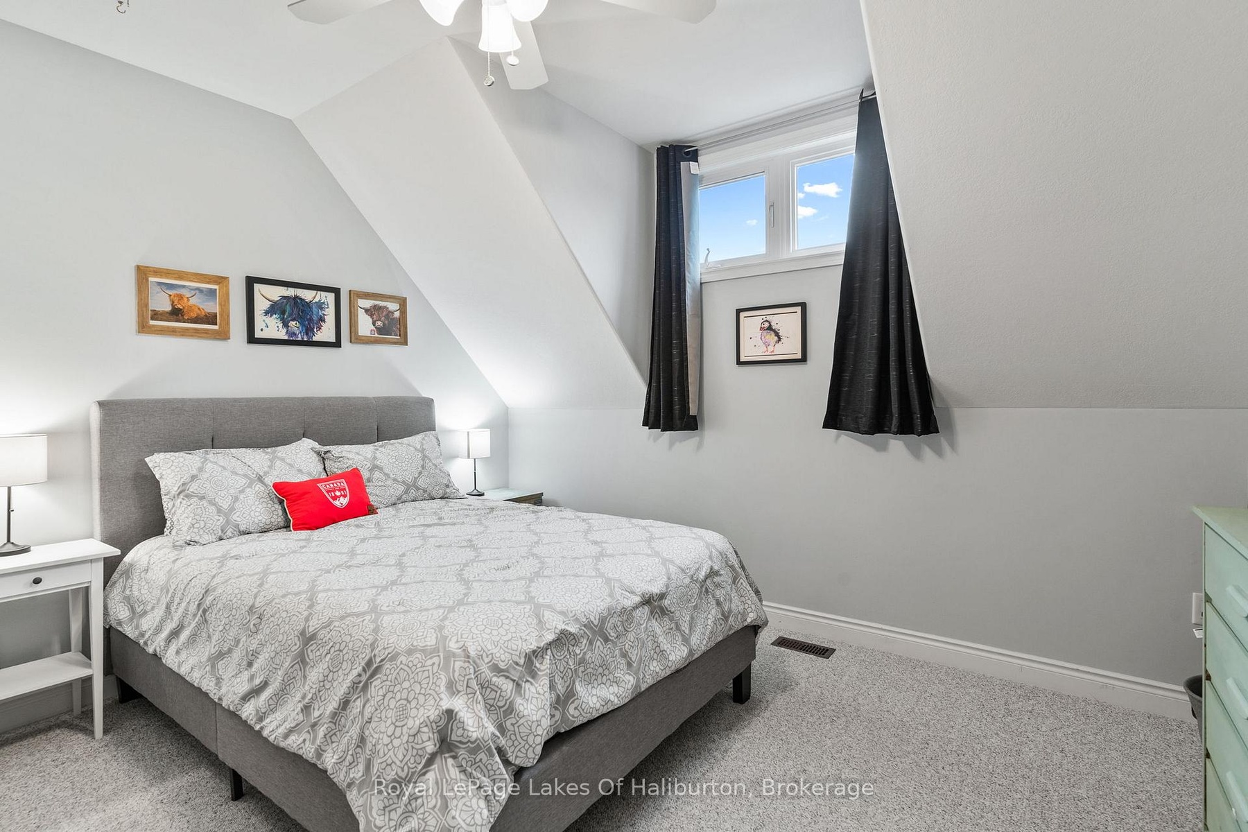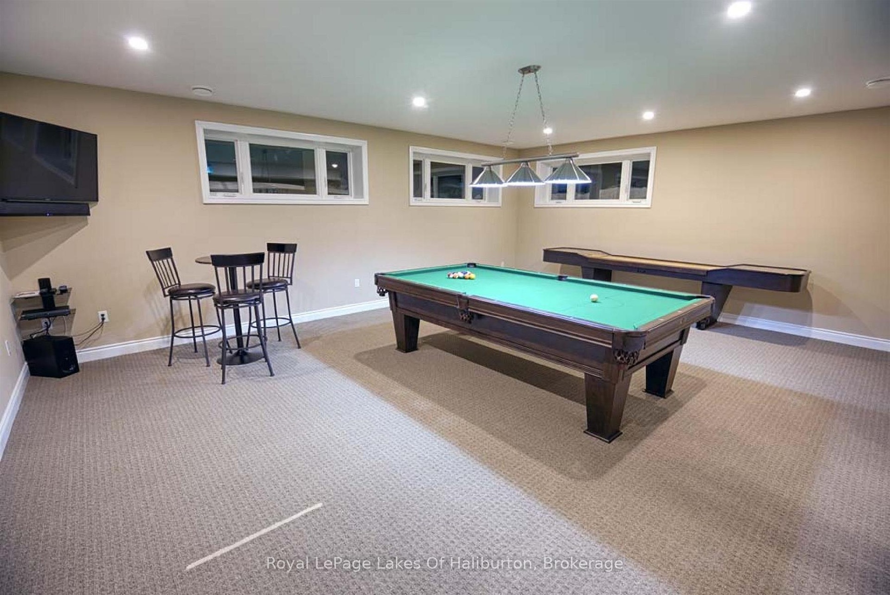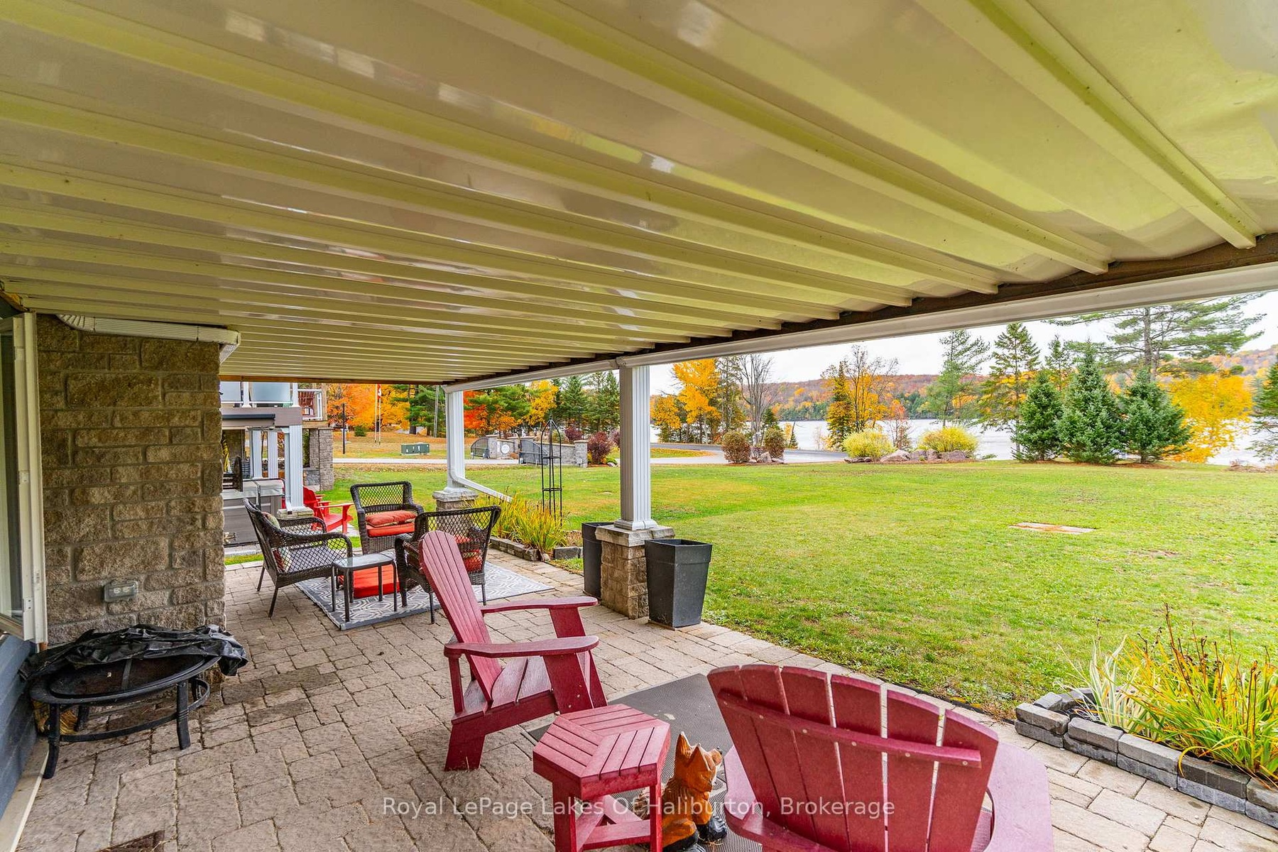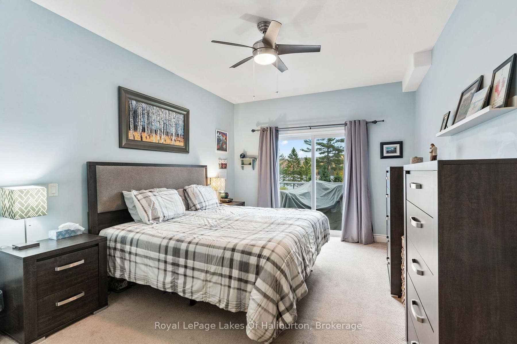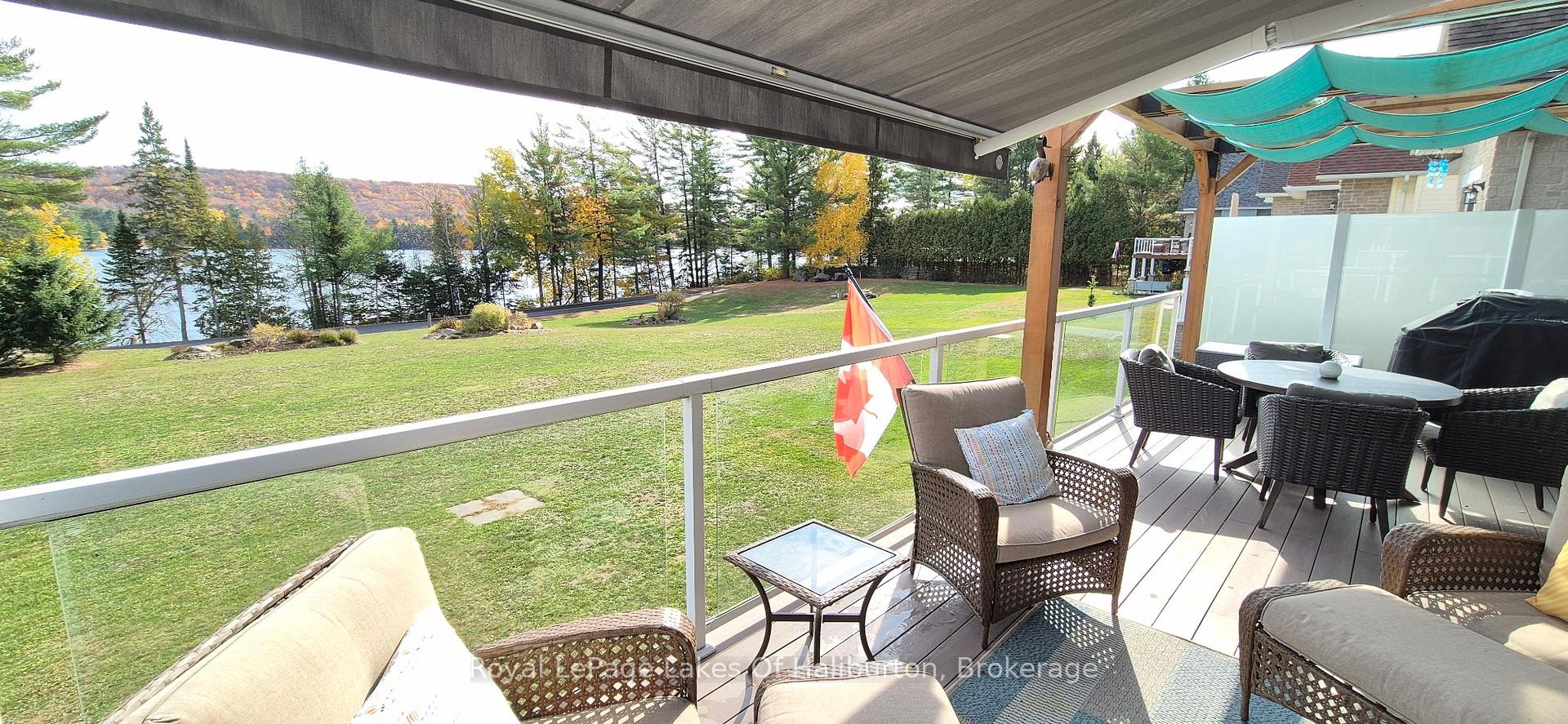 Welcome to this 4-bedroom, 4-bathroom executive home in the prestigious Silver Beach waterfront community on Kashagawigamog Lake, part of the sought-after 5-lake chain. With 2,955 sq. ft. of refined living space, this home combines quality craftsmanship, luxury finishes, and spectacular lake views.The foyer offers keyless entry, retractable screen, and tile floors leading to a gourmet kitchen with upgraded cabinetry, granite counters, under-cabinet lighting, sit-up area, stainless steel appliances, and elegant fixtures. The great room impresses with cathedral ceilings, a stunning floor-to-ceiling stone propane fireplace, hardwood floors, soaring windows, and walkout to a lakeside composite deck featuring a cedar timber-frame pergola and BBQ area and endless lakeviews.The primary suite provides a peaceful retreat with walkout to the deck and awning, ceiling fan, ensuite with heated floors and glass shower. The upper level offers a bright family room with glass panels overlooking the great room, high ceilings, hardwood flooring, 2 bedrooms, carpeted, ceiling fans, and custom blinds, while a walk-in closet area adds generous storage and 4pc bath with soaker tub.The lower level features a spacious rec room with propane fireplace, pot lights, and walkout to an interlocking lakeside patio. A guest suite offers a walkout to waterside patio, walk-in closet, and 4-pc ensuite. Additional highlights include, all bathrooms with heated floors, a multi-zone HVAC system, new hot water on demand (2025), 18W Generac generator, NFTC fibre optics, and a heated, insulated garage with storage and retractable screen. Exterior upgrades include programmable soffit lighting, glass railings, firepit area, and under-deck shielding.Enjoy exclusive access to the Silver Beach Clubhouse featuring a grand hall, kitchen, fitness center, games room, guest suite, two beaches & trails, close to Haliburton for all your amenities. Dock slip available to purchase ($25K). See full list of features.