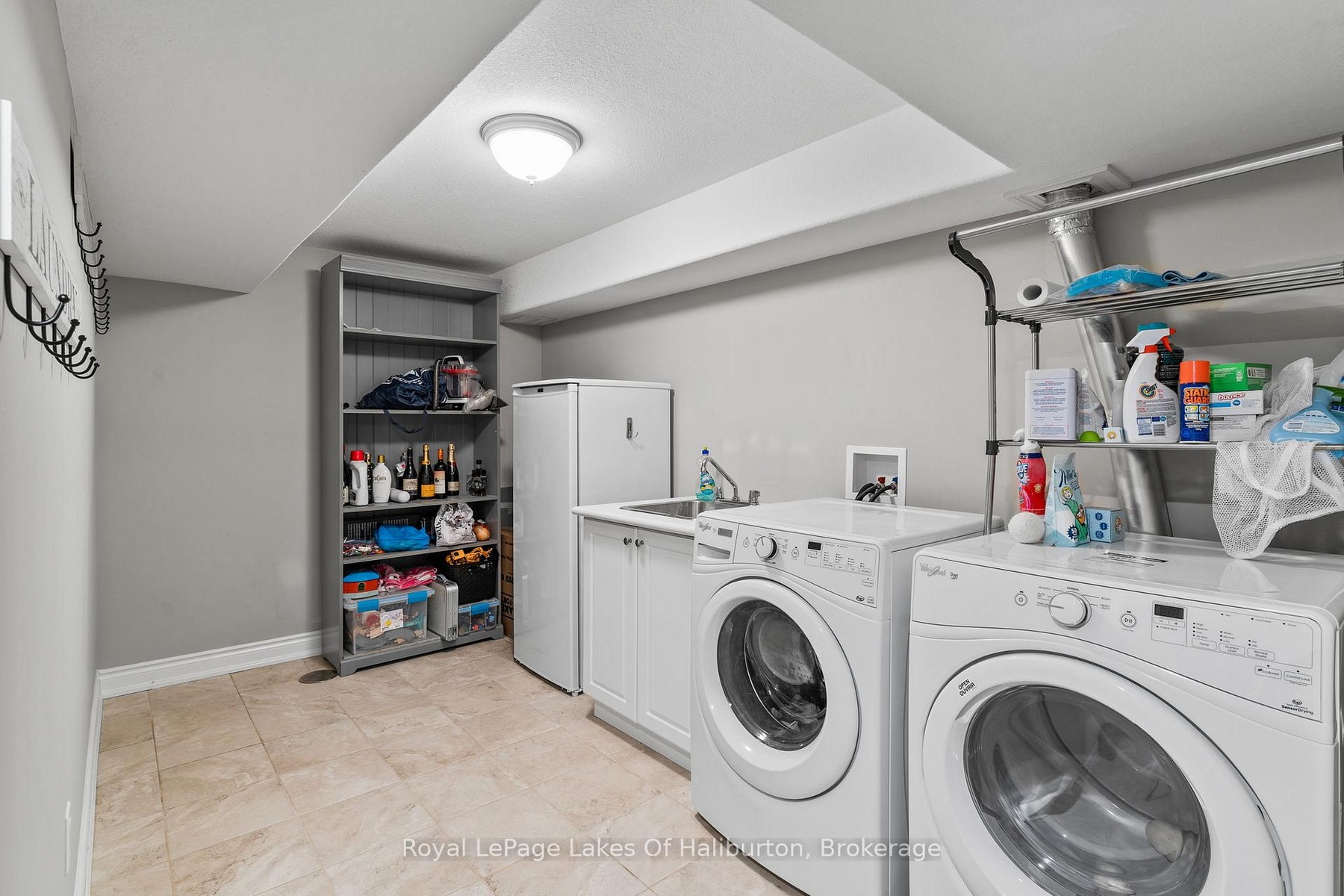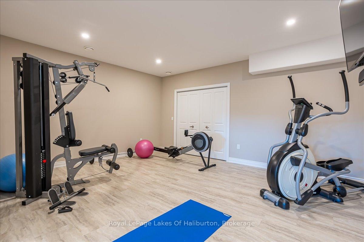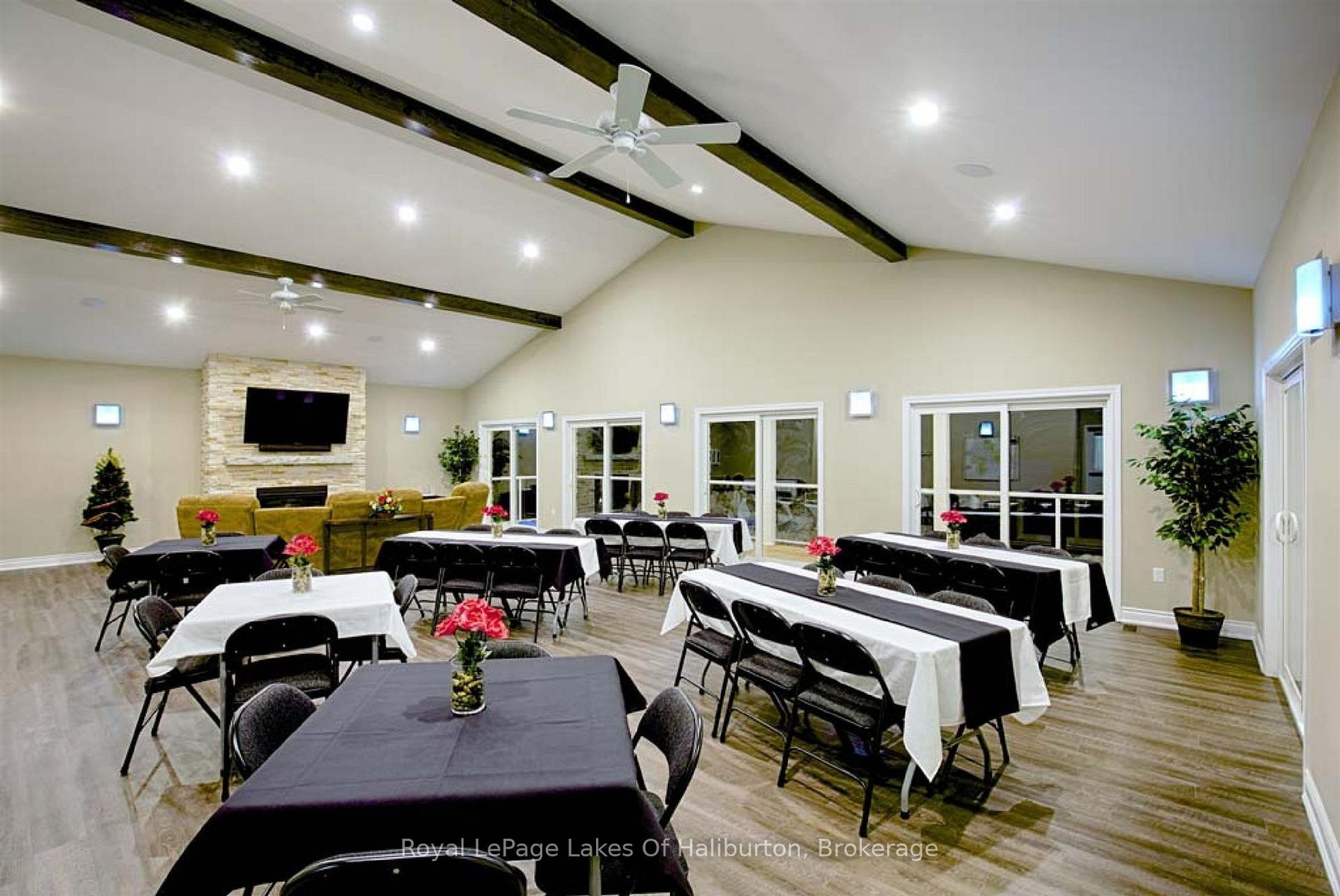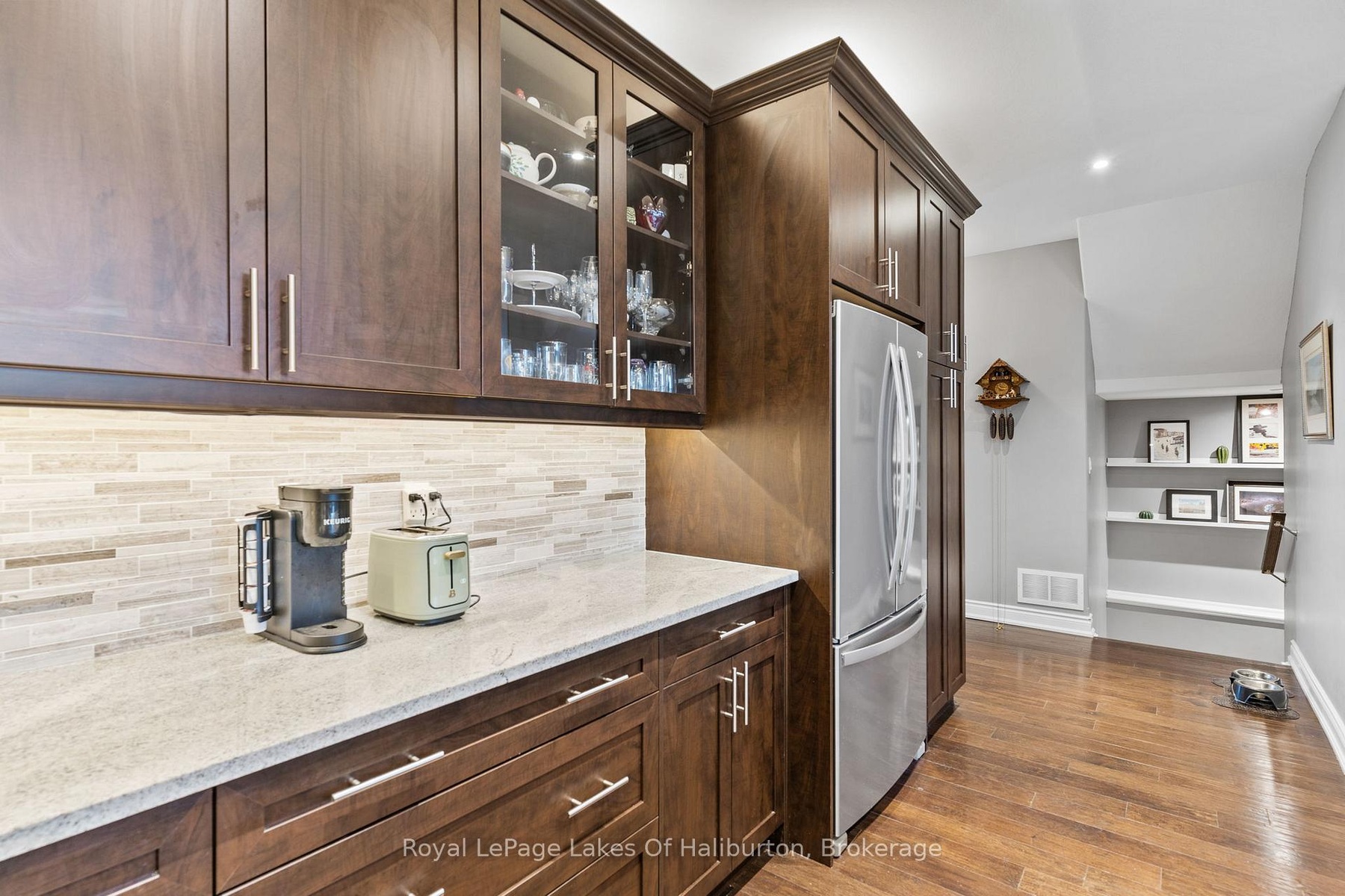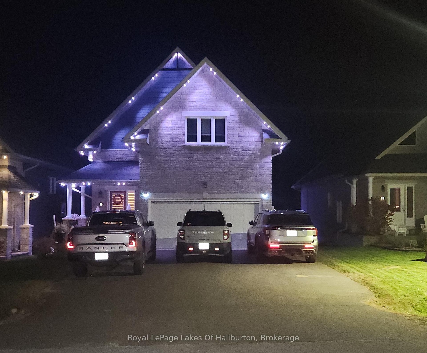 Welcome to this 4-bedroom, 4-bathroom executive home in the prestigious Silver Beach waterfront community on Kashagawigamog Lake, part of the sought-after 5-lake chain. With 2,955 sq. ft. of refined living space, this home combines quality craftsmanship, luxury finishes, and spectacular lake views.The foyer offers keyless entry, retractable screen, and tile floors leading to a gourmet kitchen with upgraded cabinetry, granite counters, under-cabinet lighting, sit-up area, stainless steel appliances, and elegant fixtures. The great room impresses with cathedral ceilings, a stunning floor-to-ceiling stone propane fireplace, hardwood floors, soaring windows, and walkout to a lakeside composite deck featuring a cedar timber-frame pergola and BBQ area and endless lakeviews.The primary suite provides a peaceful retreat with walkout to the deck and awning, ceiling fan, ensuite with heated floors and glass shower. The upper level offers a bright family room with glass panels overlooking the great room, high ceilings, hardwood flooring, 2 bedrooms, carpeted, ceiling fans, and custom blinds, while a walk-in closet area adds generous storage and 4pc bath with soaker tub.The lower level features a spacious rec room with propane fireplace, pot lights, and walkout to an interlocking lakeside patio. A guest suite offers a walkout to waterside patio, walk-in closet, and 4-pc ensuite. Additional highlights include, all bathrooms with heated floors, a multi-zone HVAC system, new hot water on demand (2025), 18W Generac generator, NFTC fibre optics, and a heated, insulated garage with storage and retractable screen. Exterior upgrades include programmable soffit lighting, glass railings, firepit area, and under-deck shielding.Enjoy exclusive access to the Silver Beach Clubhouse featuring a grand hall, kitchen, fitness center, games room, guest suite, two beaches & trails, close to Haliburton for all your amenities. Dock slip available to purchase ($25K). See full list of features.