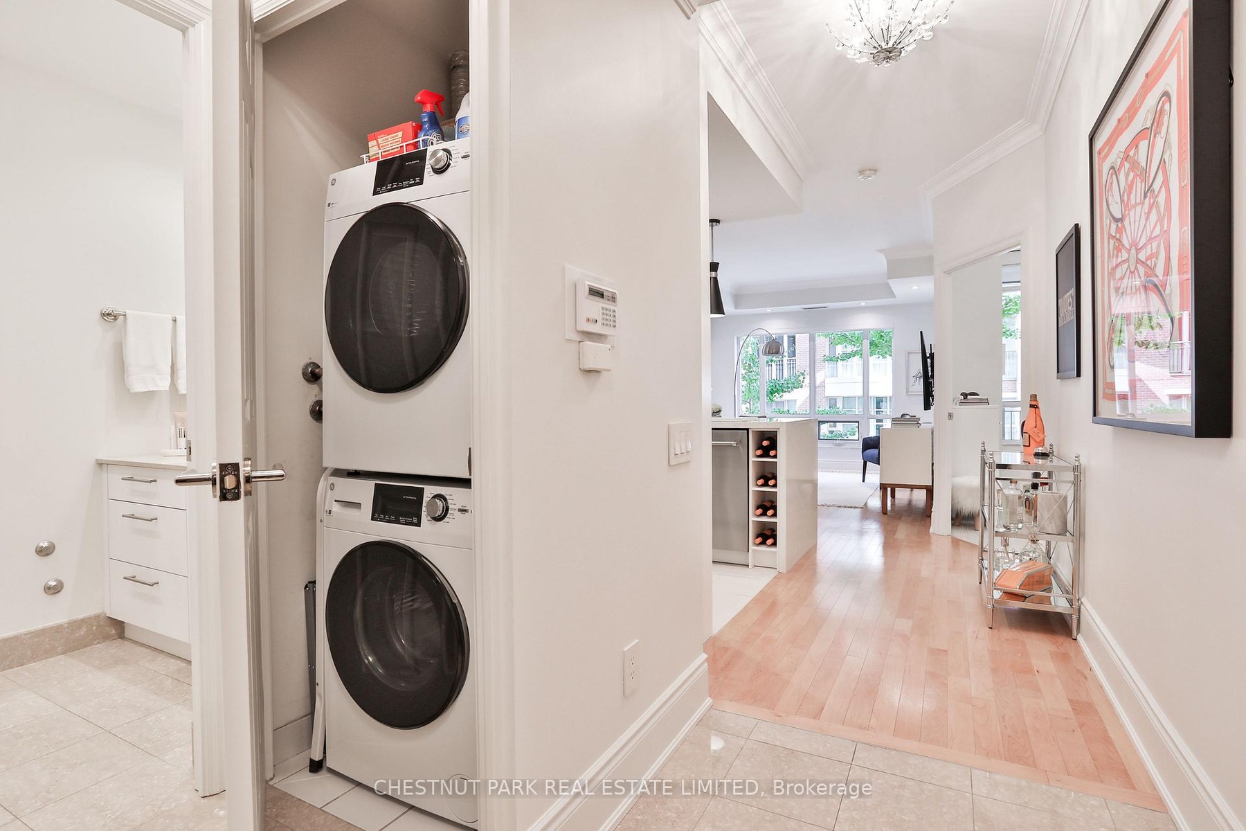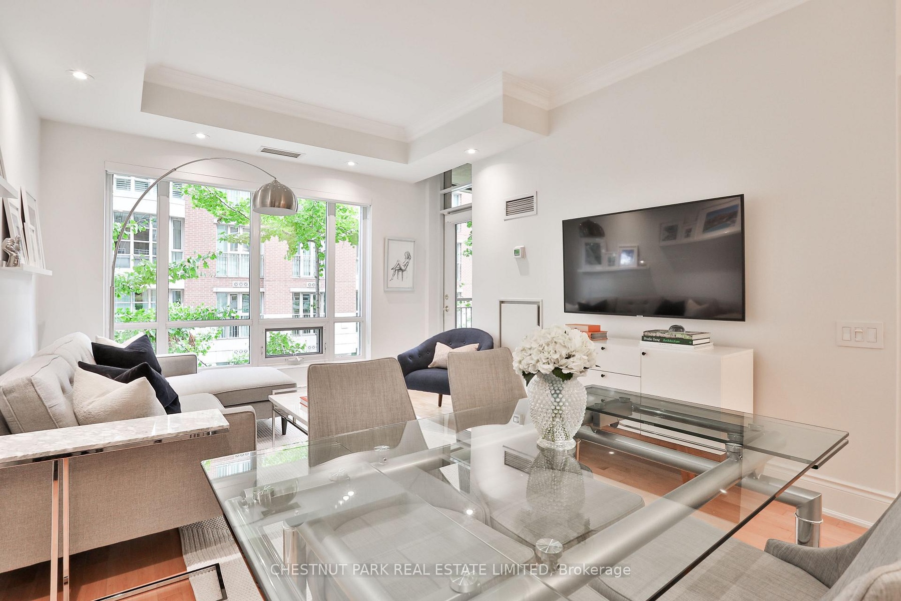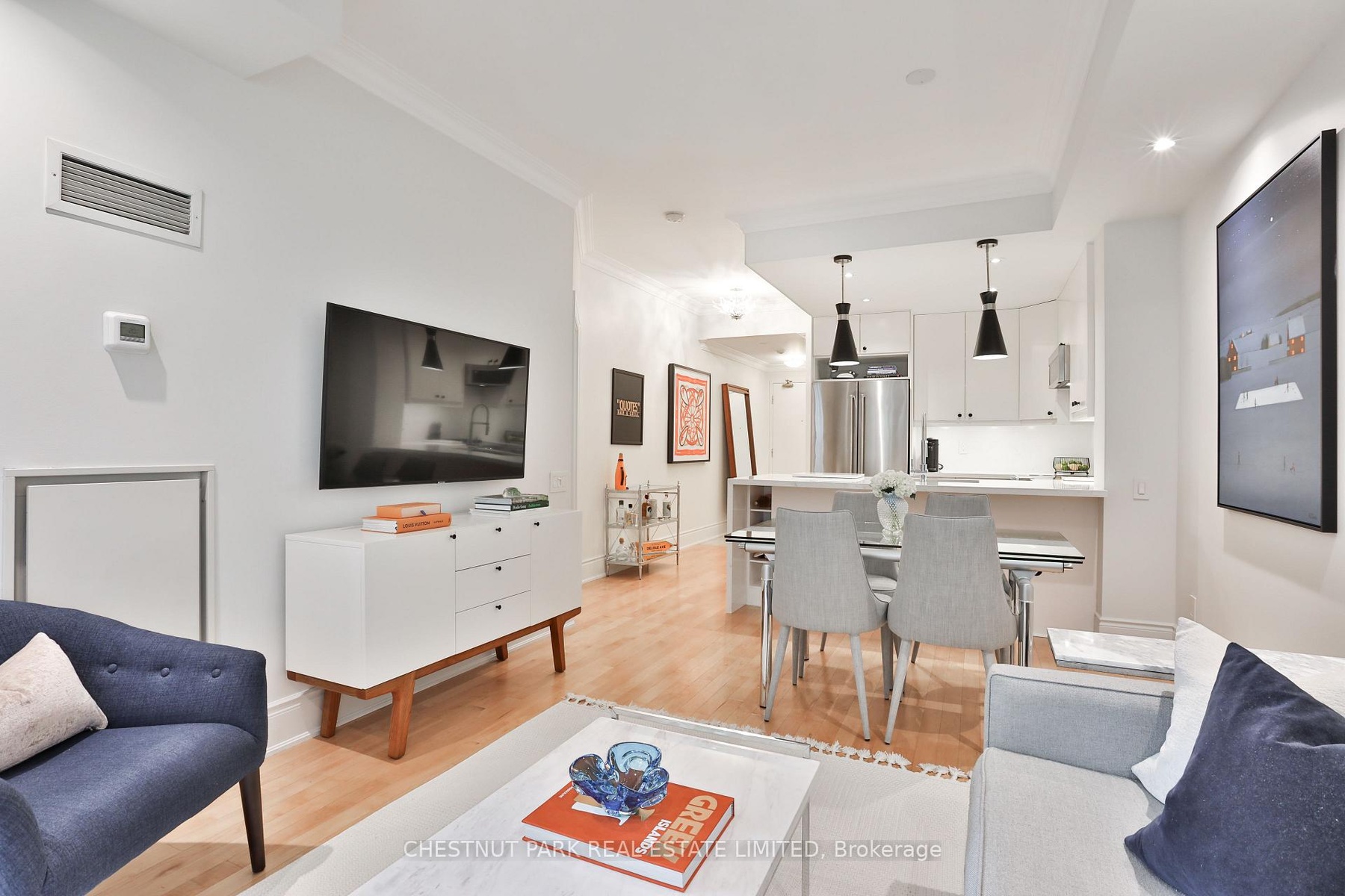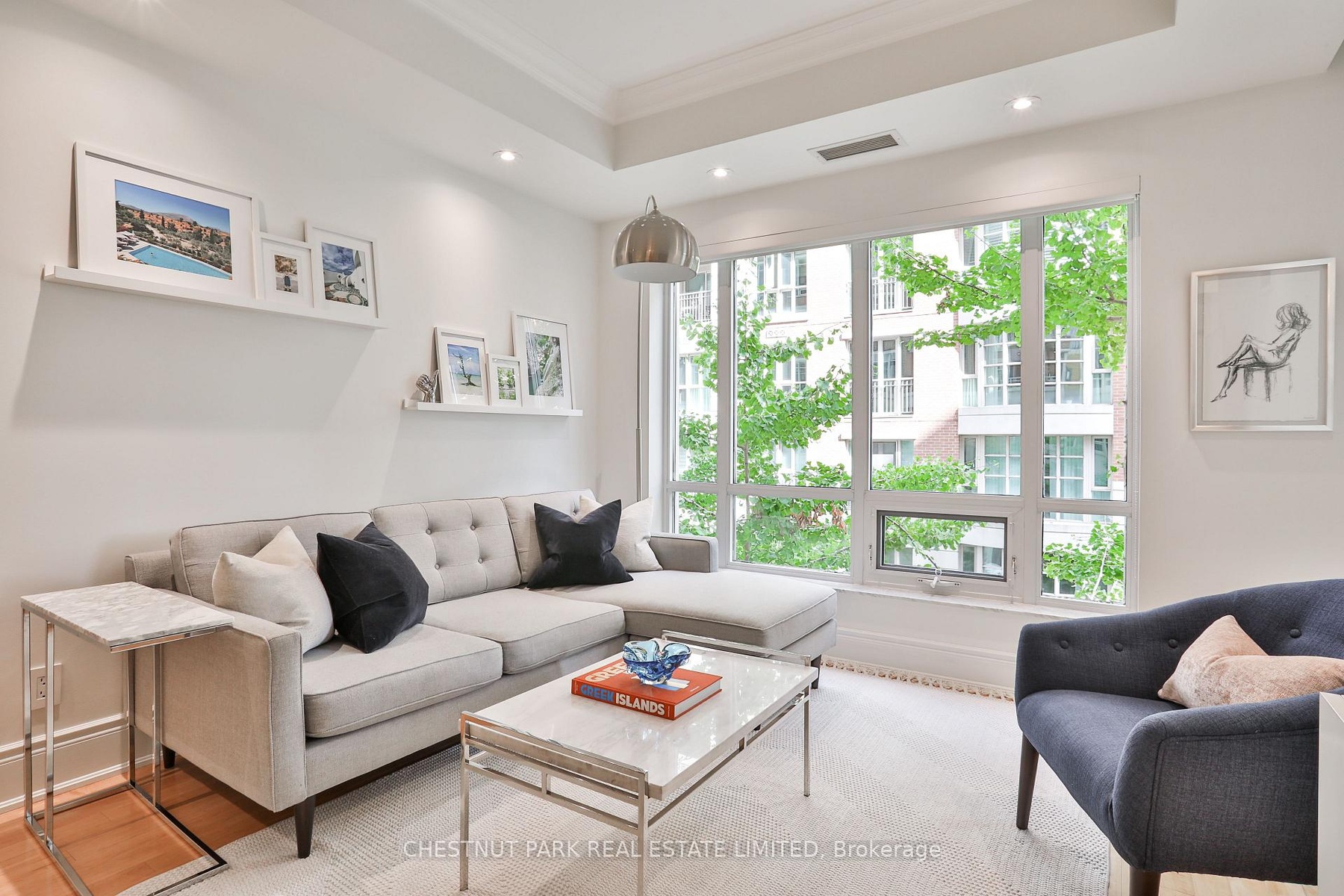 Welcome to 55 Delisle Ave where elegance meets urban living! This is your chance to live in Deer Park, one of Midtown's most coveted neighbourhoods. Nestled on a quiet, tree-lined street in the heart of vibrant Yonge & St. Clair, Suite 301 is a rarely available and beautifully upgraded 1 bedroom residence offering 630 sq ft of refined living space in an exclusive 64-suite boutique building. Meticulously updated with over $75k in premium upgrades, this thoughtfully designed suite combines timeless finishes with modern conveniences. A welcoming foyer with marble-tiled flooring, crown mouldings and a generous hall closet sets the tone for the quality throughout. The open concept living and dining area features loft-style east-facing windows that flood the space with natural light and offer a chic "Manhattan" view framed by lush Gingko trees. Crown mouldings and hardwood flooring add warmth and character, while the covered east-facing balcony allows for BBQs and al fresco dining. The fully renovated kitchen is a standout, showcasing quartz waterfall countertops, a breakfast bar, custom built-in wine rack, stainless steel appliances and upgraded pot & pendant lighting - ideal for both everyday living and entertaining. The spacious primary bedroom offers room for a full bedroom set and features newer broadloom, plus a large double-door closet with custom built-in organizers. The 4-piece marble-tiled bathroom includes a deep soaker tub and custom vanity with excellent storage. Laundry closet with additional storage. 1 owned underground parking space & 1 owned storage locker. Fantastic building amenities include; 24hr concierge, gym, guest suite, party room with outdoor patio and ample visitor parking. Live just steps to the TTC, shops, top-tier restaurants & wonderful parks. This is a well-managed, meticulously maintained building with a sophisticated community. A rare opportunity to own a turn-key suite in one of Toronto's most sought-after and accessible neighbourhoods.