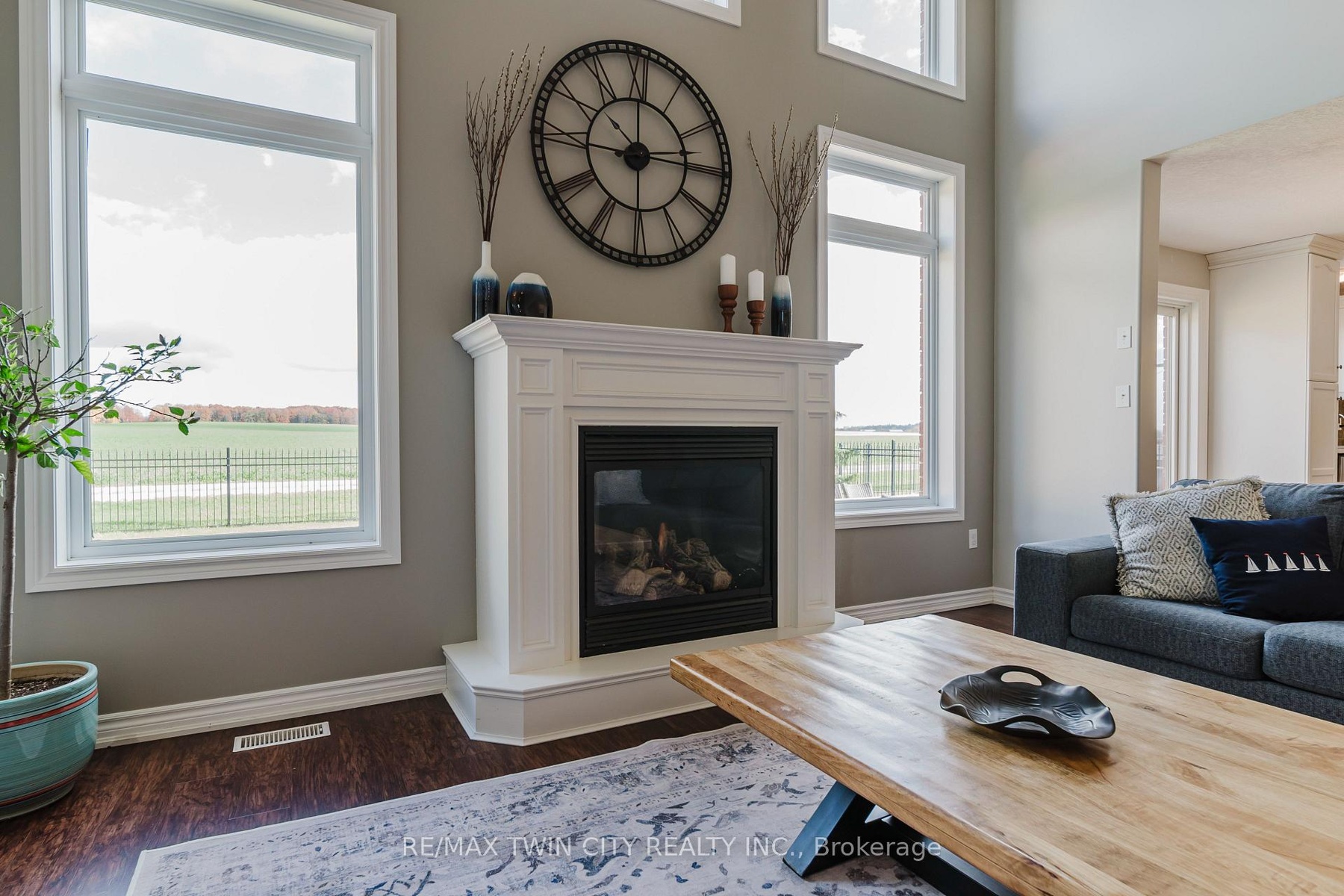 Nestled on a quiet, family-friendly street, this beautiful home sits on a large, private lot backing onto peaceful greenspace. With 4 bedrooms and 4 bathrooms, it's the perfect blend of comfort, style, and function. Step inside to a grand two-story entrance that sets the tone for what's to come. The spacious great room is filled with natural light and features 17-foot ceilings and a cozy gas fireplace, creating an inviting space for family gatherings and quiet evenings alike. In 2022, the stair railings were beautifully updated, adding a modern touch to the elegant, well-built wood staircase. The kitchen offers a fresh, modern feel with professionally re-refreshed cabinetry, quartz countertops, and a large island perfect for cooking or casual dining. Thoughtful updates include a newer fridge, dishwasher, sink, range hood, stylish backsplash, undermount lighting, and a reverse osmosis water system, combining convenience with contemporary design. Upstairs, you'll find three comfortable bedrooms, including a spacious primary suite, with a stunning 5-peice spa like ensuite bathroom. The professionally finished basement adds exceptional living space with a large bedroom featuring a walk-in closet and a three-piece bathroom. The lower level was designed with quality in mind, boasting spray foam insulation and soundproofing and fireproofing in the ceiling for added peace of mind. Step outside to enjoy the tranquility of your private backyard overlooking open farm fields - a serene setting where you can enjoy beautiful sunrises each morning. The new patio and concrete walkway (2024) provide the perfect spot for outdoor entertaining or simply unwinding after a long day. This is the kind of home where you can raise your family, grow into your space, and create lasting memories. A truly special property - move in ready and waiting for you!