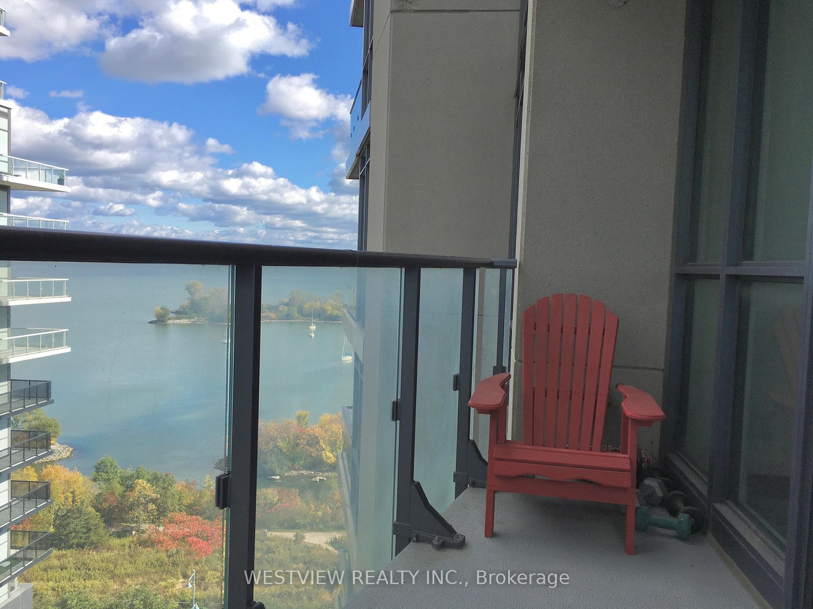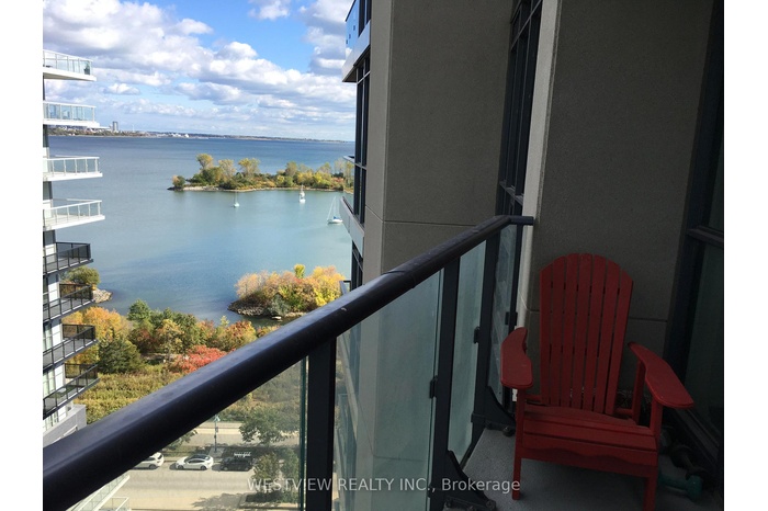 Beautifully appointed one bedroom corner unit offering views of the lake and city. Featuring both East & West exposure, plenty of natural light. Freshly painted & new laminate flooring thru-out. Features a Large living space with a separate kitchen area allowing for you to furnish the space to suit your needs. Wall mounted TV, new leather couch, kitchen island and stools can also be included at no additional cost if required. (can also be removed) One parking spot and storage locker included. Building offers excellent amenities. Steps to coffee shops & local restaurants. Take advantage of the miles of waterfront walking / biking paths at your door step.