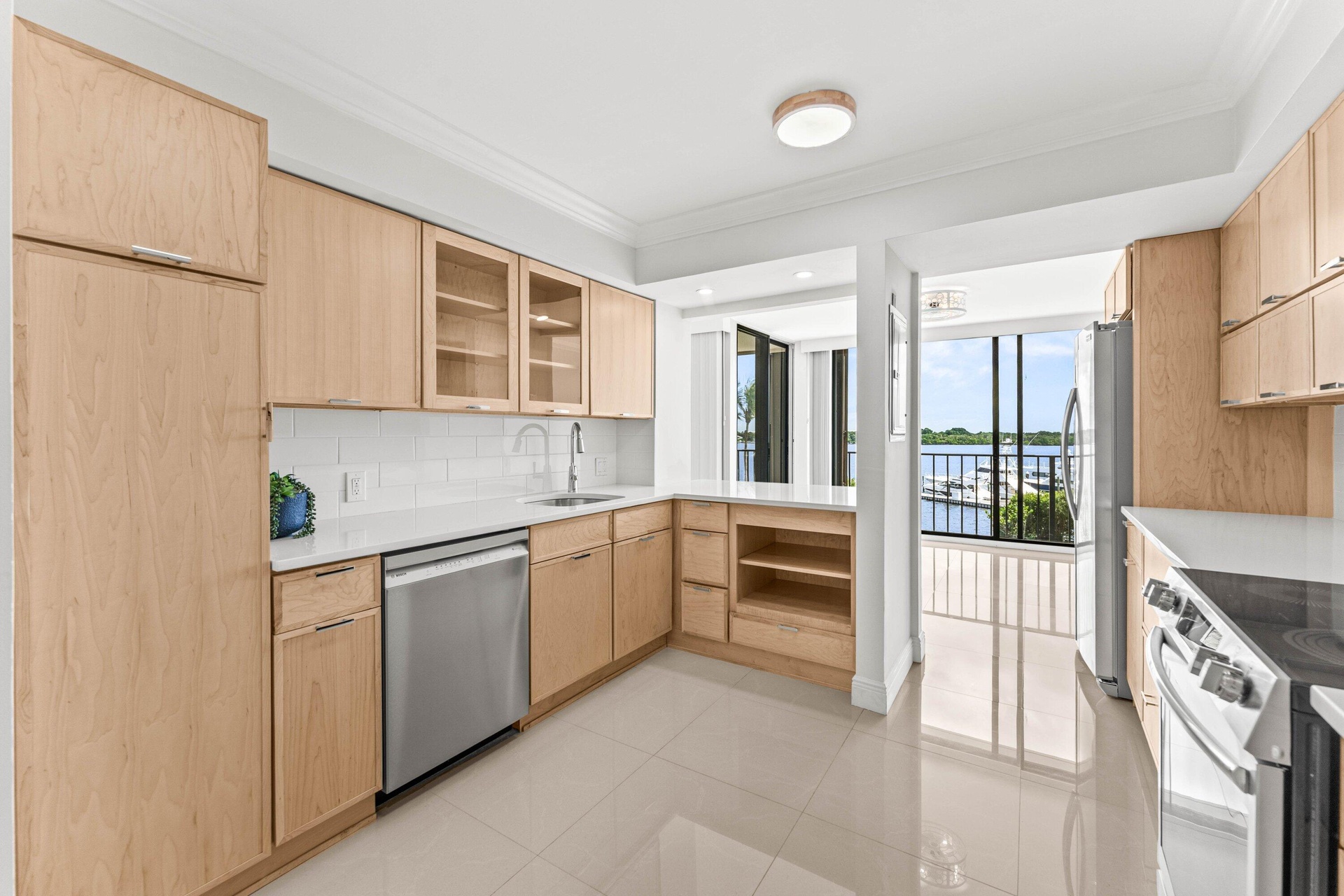 Don't miss this exciting all-newly remodeled GEM at Old Port Cove, (Quay South), with its 48 linear ft of waterfront for amazing sunrises, expansive daytime views and spectacular sunsets! It's tall ceilings, crown moulding, gleaming tiled floors and special lighting throughout its open flow of rooms are only waiting for your choices of furnishings to call it ''home.'' Designed and renovated with details beyond the norm, all of its former interior wiring has been replaced, all new-to-code, along with all new plumbing. Included is a state-of-the art Hydroviv water filtration system in both kitchen and bathrooms. The condo has all new solid-core custom-made interior doors by Jenn-Weld. The kitchen boasts custom grade contemporary natural maple cabinets and two pantries for additiona