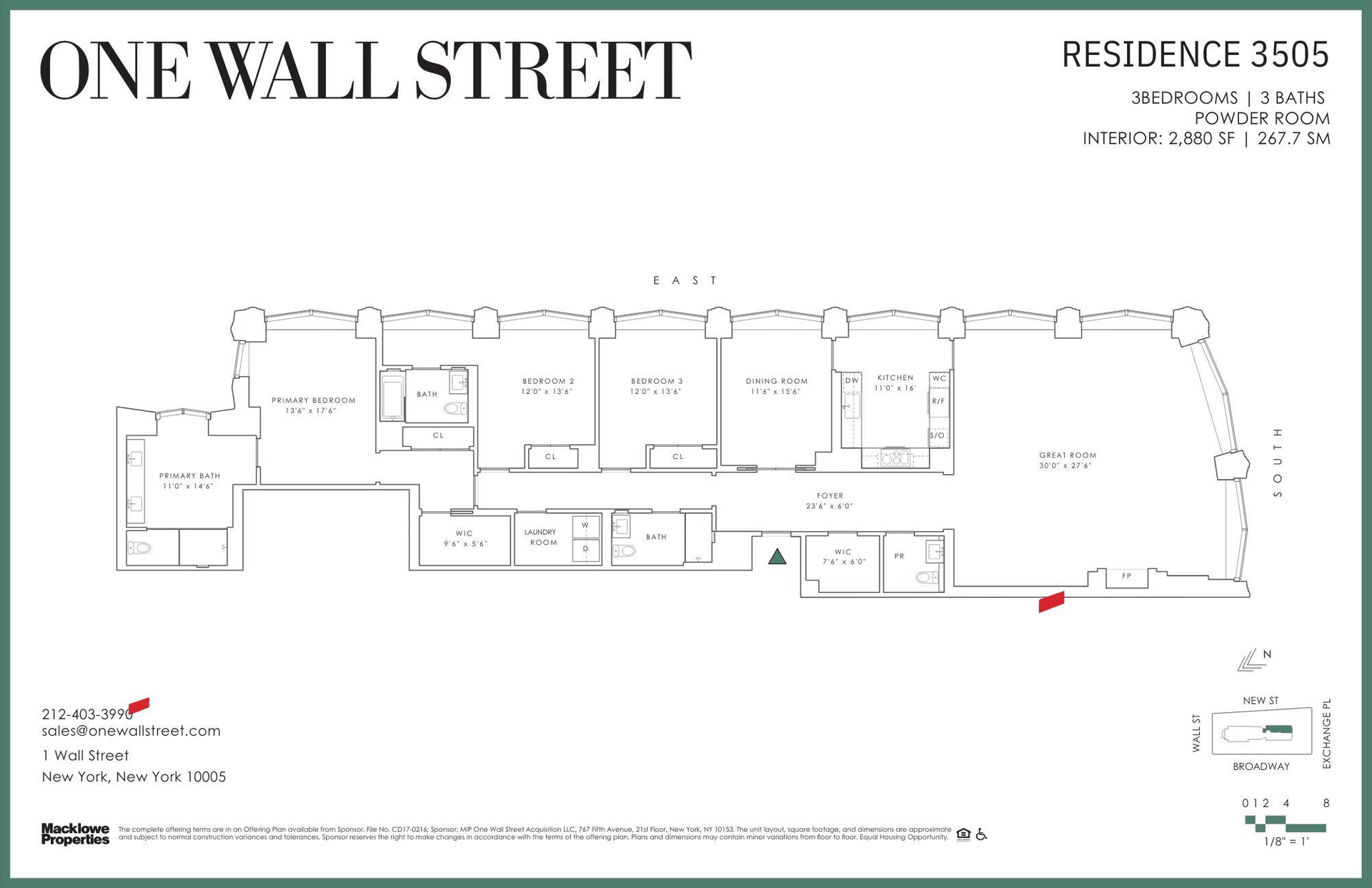 THE COMPLETE OFFERING TERMS ARE IN AN OFFERING PLAN AVAILABLE FROM SPONSOR. FILE NO. CD17-0216 SPONSOR: MIP ONE WALL STREET ACQUISITION LLC, 1 WALL STREET, NEW YORK, NY 10005. EQUAL HOUSING OPPORTUNITY.