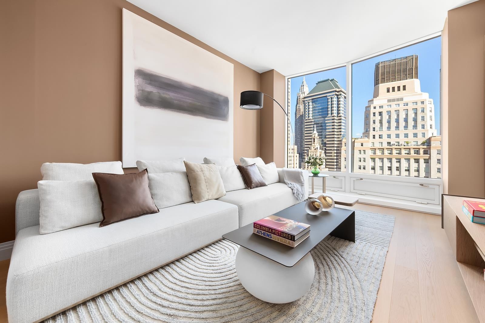 One Wall Street is Lower Manhattan's first true luxury residential building, with full-time door staff and porters, full-time resident manager, and white-glove concierge service. Residents will enjoy a complimentary membership to Life Time Athletic and access to the building's private gym on the 38th floor, including a 75-foot sky pool with indoor and outdoor patios overlooking Downtown Manhattan and New York Harbor below.