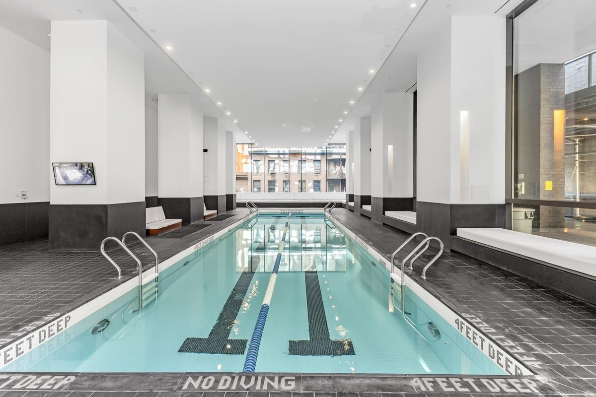 15 William offers one of the most comprehensive amenity packages in Lower Manhattan: a 24-hour doorman and concierge, resident lounge, screening room, indoor lap pool, fitness center, yoga studio, squash court, children’s playroom, and a landscaped rooftop sundeck with breathtaking skyline and harbor views.