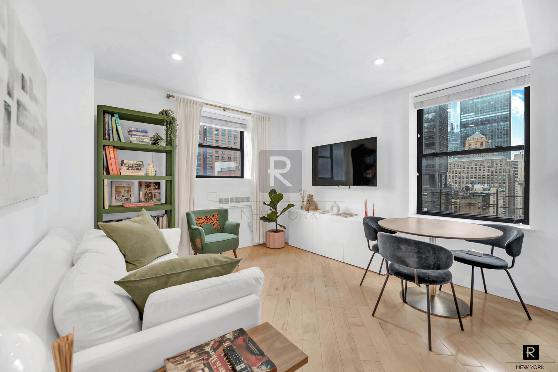 Welcome to a luminous and sophisticated one-bedroom condo ideally situated in the heart of Midtown Manhattan. This apartment presents a rare opportunity to own in a full-service building that permits 30-day minimum furnished rentals, making it perfect as a pied-à-terre, full-time home, or income-generating asset.