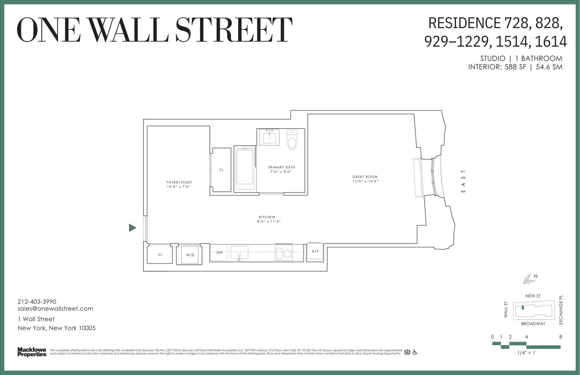 Move In Ready! Residence 1129 is an alcove studio with home office at One Wall Street. 1129 is a spacious layout, alcove studio home with a separate kitchen. Located in the Eastern facing section of the building, this home offers natural light, and ample closet space. Custom kitchens and baths pair seamless technology with classic elegance. The Kitchen features Oceanwood marble slabs which rests on custom Aran Cucine cabinetry, accented by white glass panels and satin nickel finishes and is the perfect blend of beauty and function.