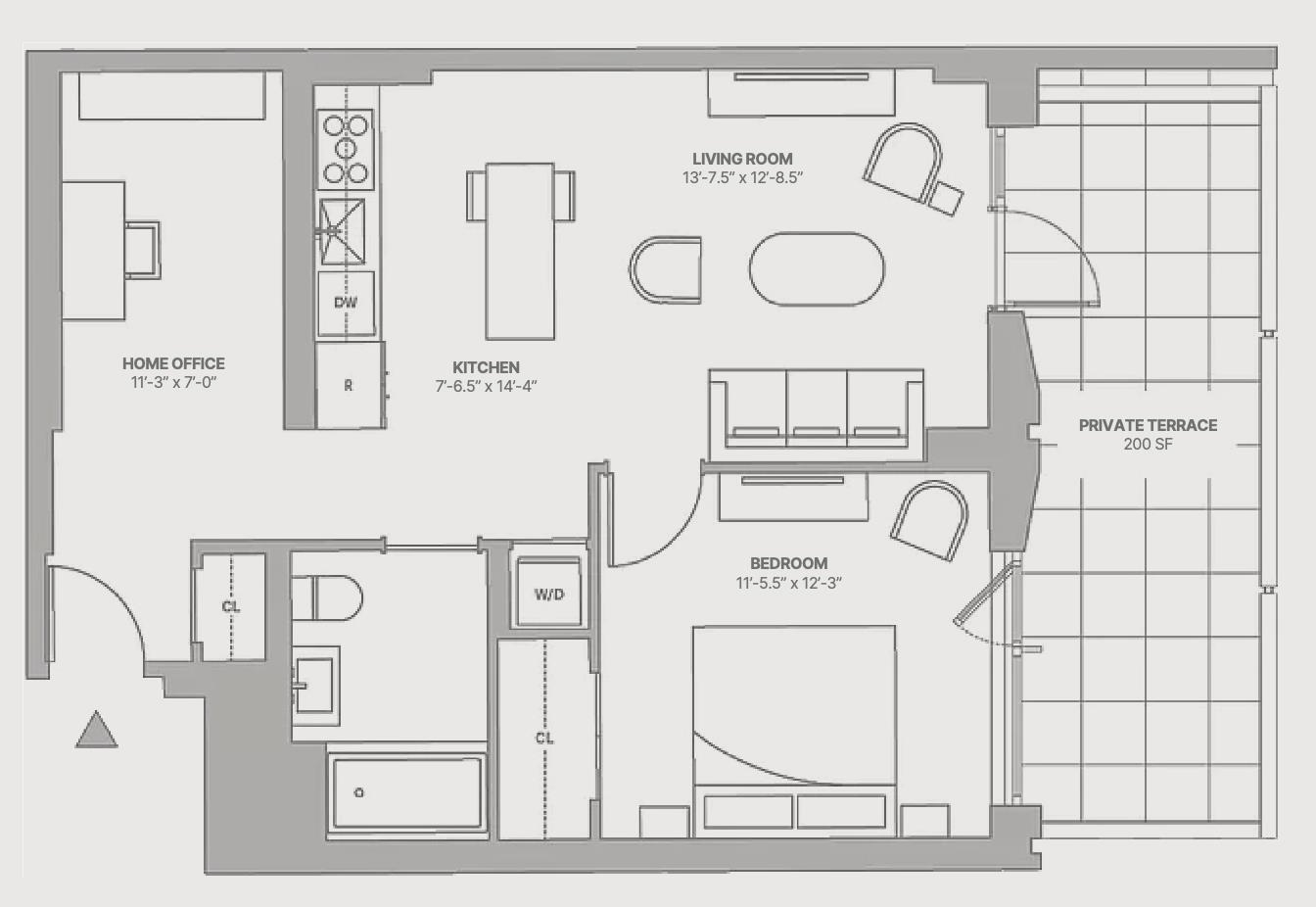Welcome to Residence 221 at Bloom on Forty Fifth—a spacious one-bedroom home with a versatile home office, and fabulous private terrace thoughtfully designed for modern living. Newly revitalized under fresh ownership, Bloom on Forty Fifth offers an elevated lifestyle in the heart of Midtown West, blending elegance, functionality, and community.