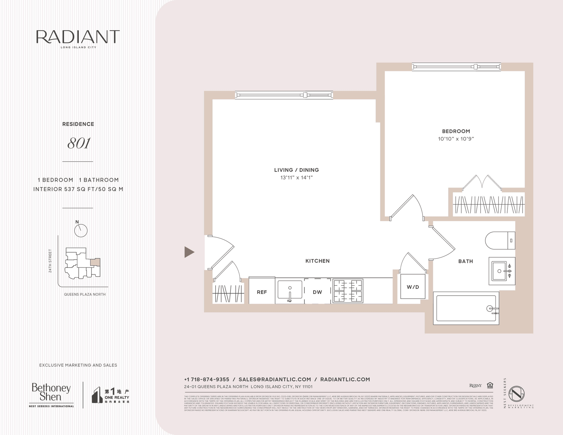 Situated in an emerging residential enclave in Long Island City, Radiant is moments from numerous restaurants, bars, cafes, and shops. MoMA PS1, Brooklyn Boulders, Queensbridge Park, Target, and Murray Playground are all a few blocks away. Accessible subway lines include the 7/E/R/N/W/M/F. Pets are allowed.