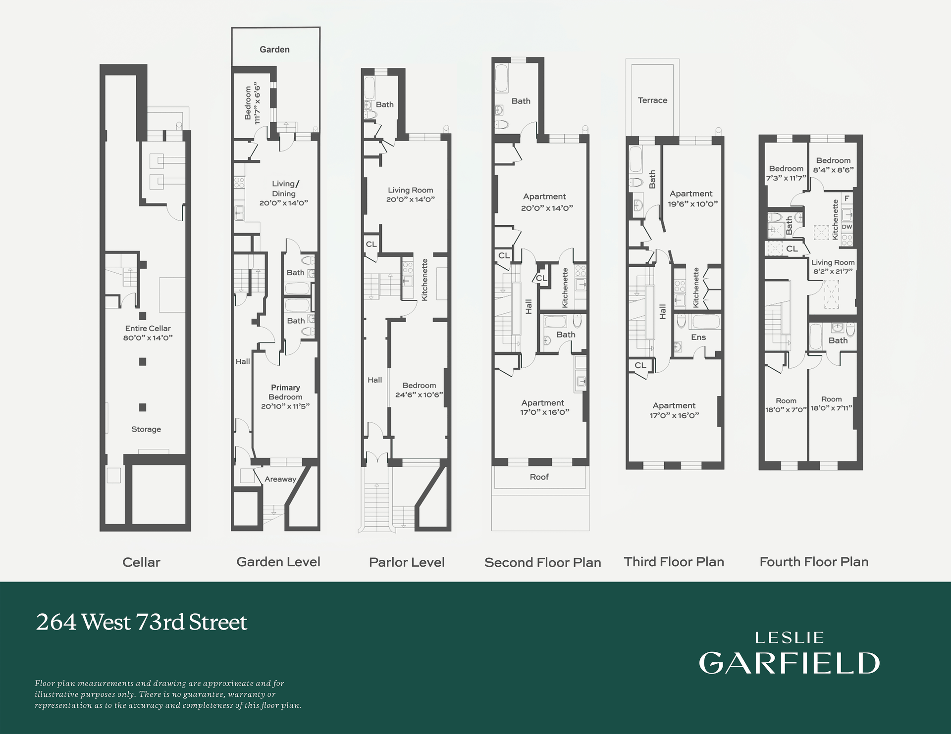 With a mix of renovated and classic interiors, multiple outdoor spaces, and two vacant units, this property offers flexibility for investors or new home owners that can choose either a garden floor through, duplex with parlor floor or triplex with an additional two floors of income. This is a well maintained brownstone with the added dimension of original architectural character and long term increased value in the heart of the Upper West Side. This five-story, 17-foot-wide Victorian brownstone with a three-story rear extension contains eight residential units and retains much of its original character, with beautiful detail throughout including high ceilings, parquet floors, wood wainscoting, and decorative fireplaces. Blending the old with the new, several apartments have been updated with renovated kitchens and baths, in-unit washer/dryers, dishwashers and modern finishes, while others preserve the homes classic turn of the century architecture. Outdoor spaces include a private south-facing garden and a fourth-floor terrace. The garden level is a renovated two-bedroom, two-bath floor-through with direct garden access. The parlor floor is a spacious one-bedroom floor-through showcasing original woodwork, high ceilings, and a newly updated kitchen. The second floor consists of a vacant front studio and a renovated rear one-bedroom with high ceilings, original detail, and an in-unit washer/dryer. The third floor mirrors this layout, with a front studio requiring renovation and a rear one-bedroom that has been updated with a renovated bath, washer/dryer, and terrace access. The top floor includes a front two room suite currently vacant, and a rear two-bedroom apartment in good condition with a washer/dryer/dishwasher, skylights, updated kitchen and bathroom.