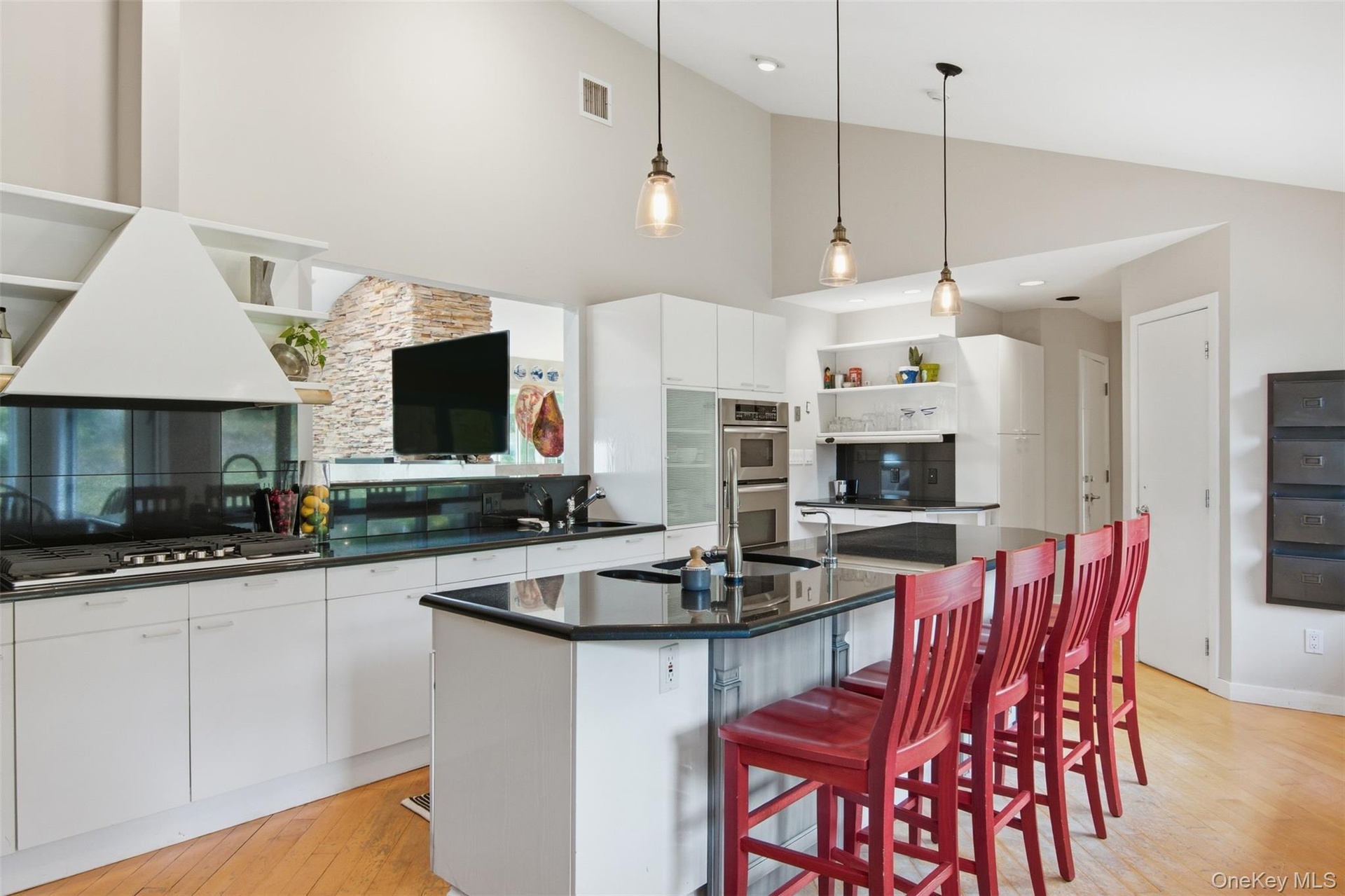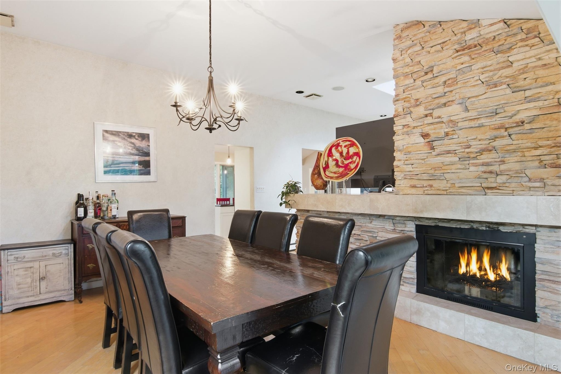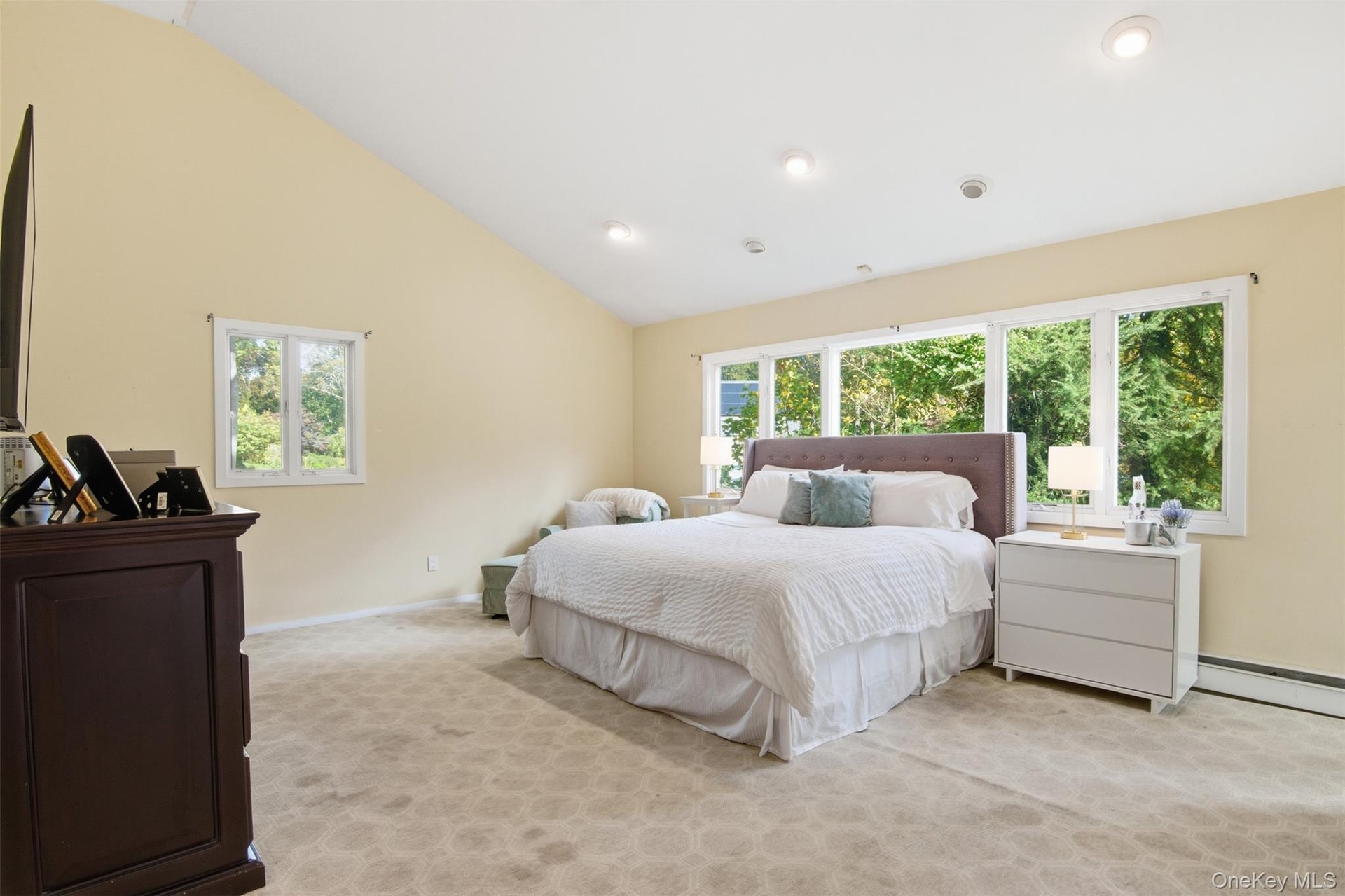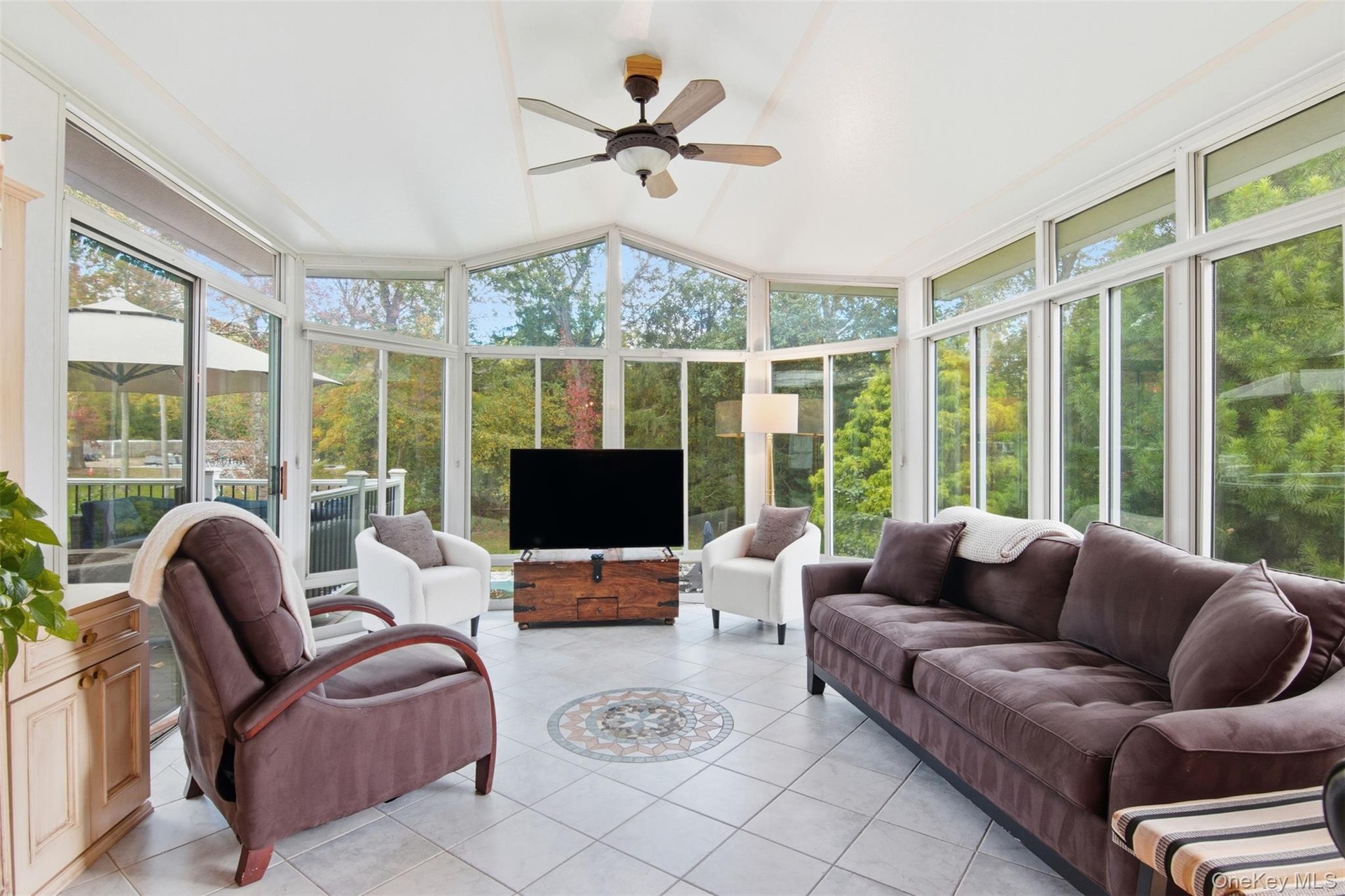 Location, amenities and SPACE in this sprawling, single-story retreat nestled in the absolutely beautiful Caledonia section of Dix Hills. This remodeled, versatile, 3/4 bedroom home was designed with a spacious open floor plan, flexible living options and tons of natural light. Featuring vaulted ceilings and a double-sided fireplace, the large family room and sun room invite effortless indoor-outdoor living: sliding glass doors connect the interior to a multi-level deck and stunning, country club backyard — a landscaped full acre with heated pool, cabana, paver patio, dining and lounge areas! Ideal for entertaining in any season, the home's eat-in kitchen features an oversized island, granite countertops, stainless steel appliances, and ample storage. The primary suite offers a full bathroom with private access to the tiered deck, plus a massive walk-in closet. Additional bedrooms provide flexible accommodations for dwellers or guests. Highlights include new central A/C, young roof, recently converted gas heat, 2-car garage beneath the home, first floor laundry, radiant heated floors and a fabulous walk-out basement with garage access and outside entrance. Ideally located in one of Dix Hills' most serene, bucolic neighborhoods just minutes from Signal Hill Elementary, Hills East High School and St. Anthony's High School. Caledonia Park, Northern State Pkwy and Jericho Tpk are about a mile away. Experience the perfect combination of versatility, location, and lifestyle in one of the best buys in Dix Hills. Sold As Is. Hurry!