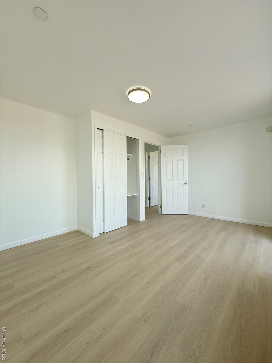 - Unfurnished bedroom featuring light wood finished floors and a closet
