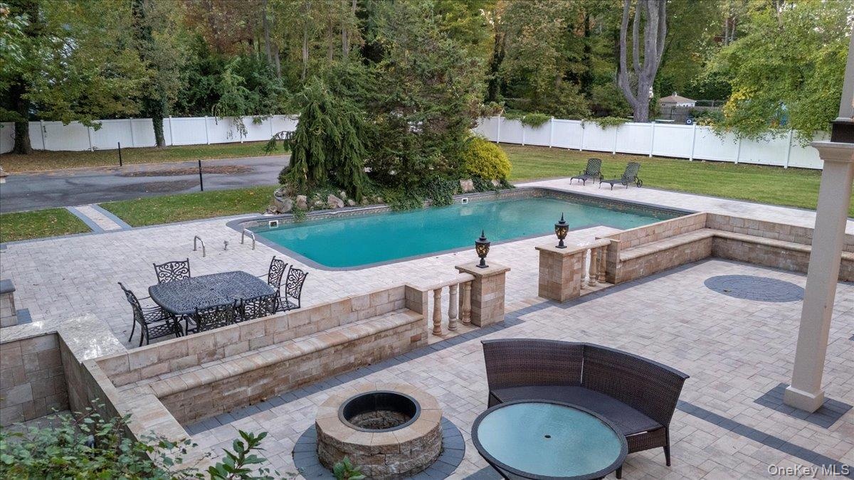 Welcome to this exquisite gated estate, a meticulously updated 5,000-square-foot center hall Colonial masterpiece that exudes timeless elegance and sophistication. Step inside to discover gleaming hardwood floors that flow seamlessly throughout, infusing the space with a warm, inviting ambiance. The expansive layout boasts a grand formal living room bathed in natural light, an opulent formal dining room ideal for lavish gatherings, a state-of-the-art eat-in kitchen with premium finishes, and a cozy den anchored by a majestic fireplace. Enhancing the main level's allure is a versatile bonus living room and a luxurious guest bedroom suite, offering unparalleled convenience and privacy. Ascend to the sumptuous primary suite, where a crackling fireplace and private balcony provide breathtaking views of the sprawling backyard oasis. This serene retreat features a shimmering inground pool, meticulously laid pavers, and an expansive deck—perfect for sophisticated entertaining or tranquil relaxation under the stars. This exceptional property masterfully harmonizes the finest in indoor luxury with idyllic outdoor living. Descend to the fully finished basement, a versatile haven for a bespoke home office or indulgent recreational space. Complete with a tennis court (offered as is) and served by the prestigious Half Hollow Hills school district, this residence is a rare gem for the discerning buyer.