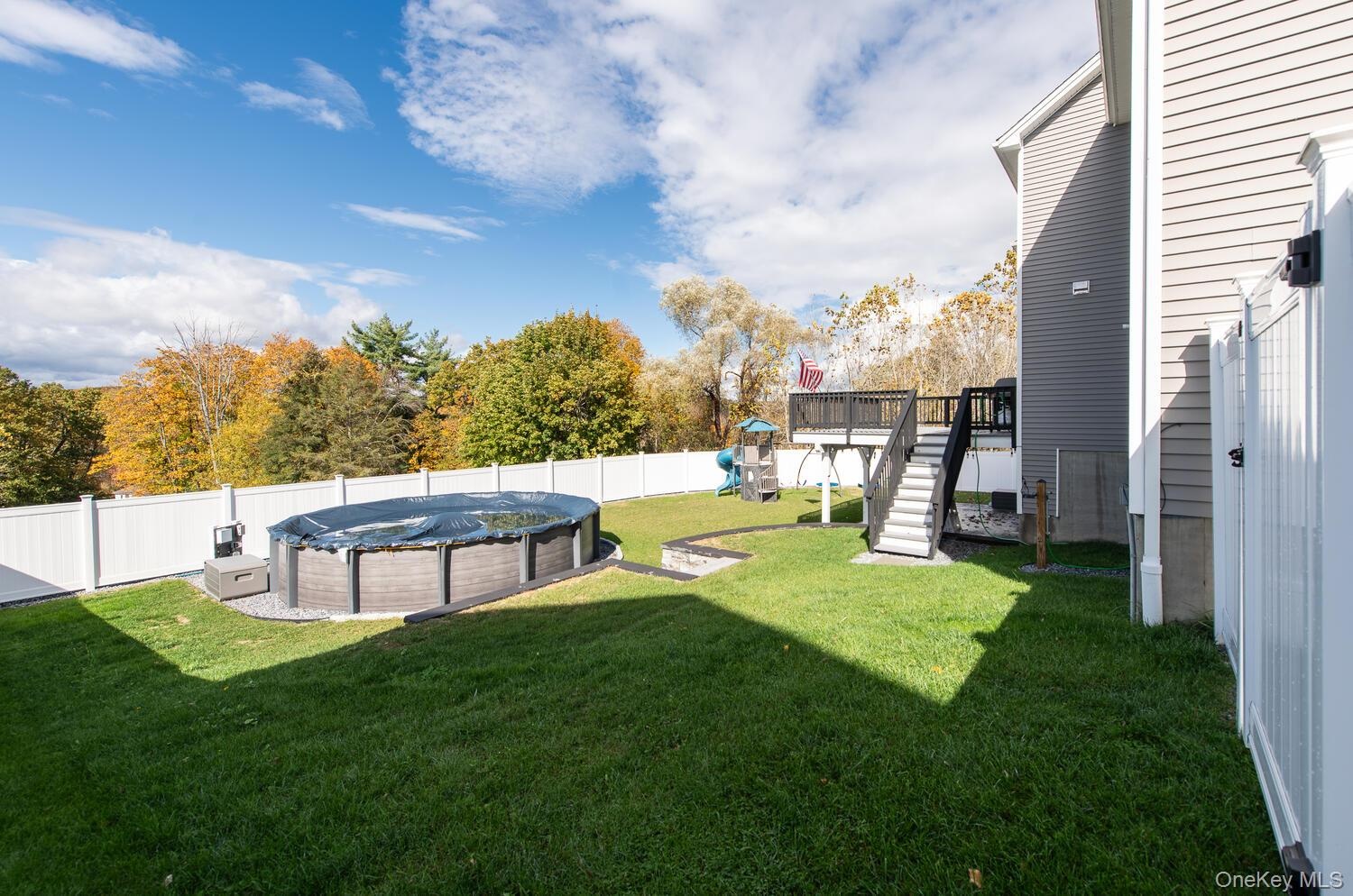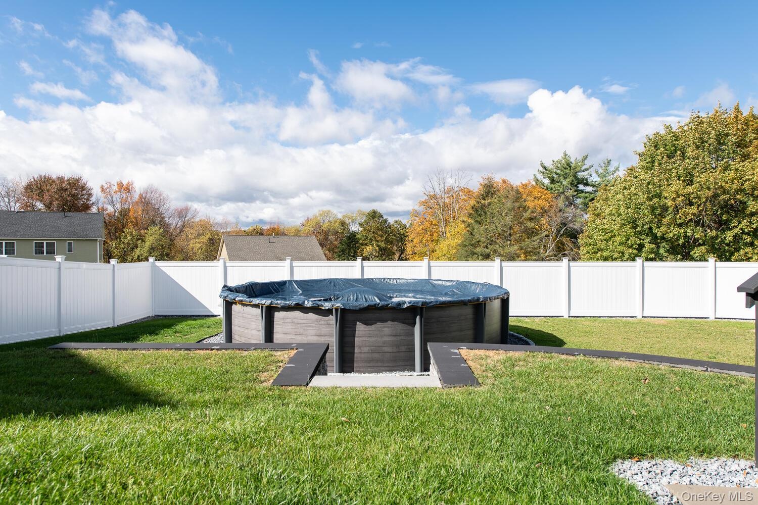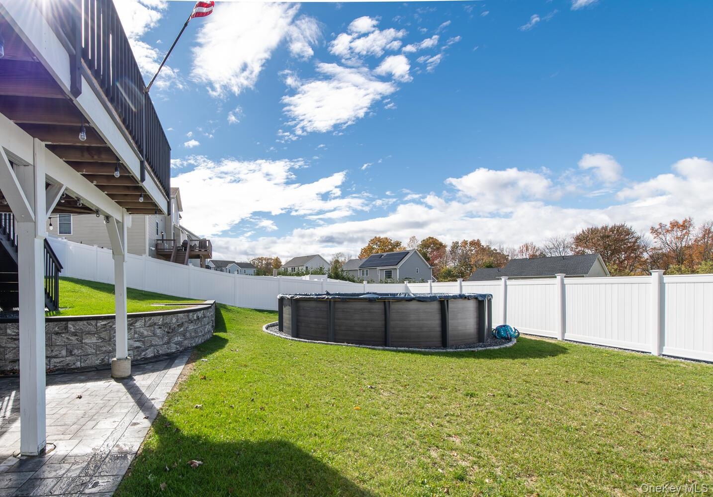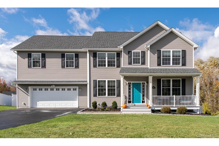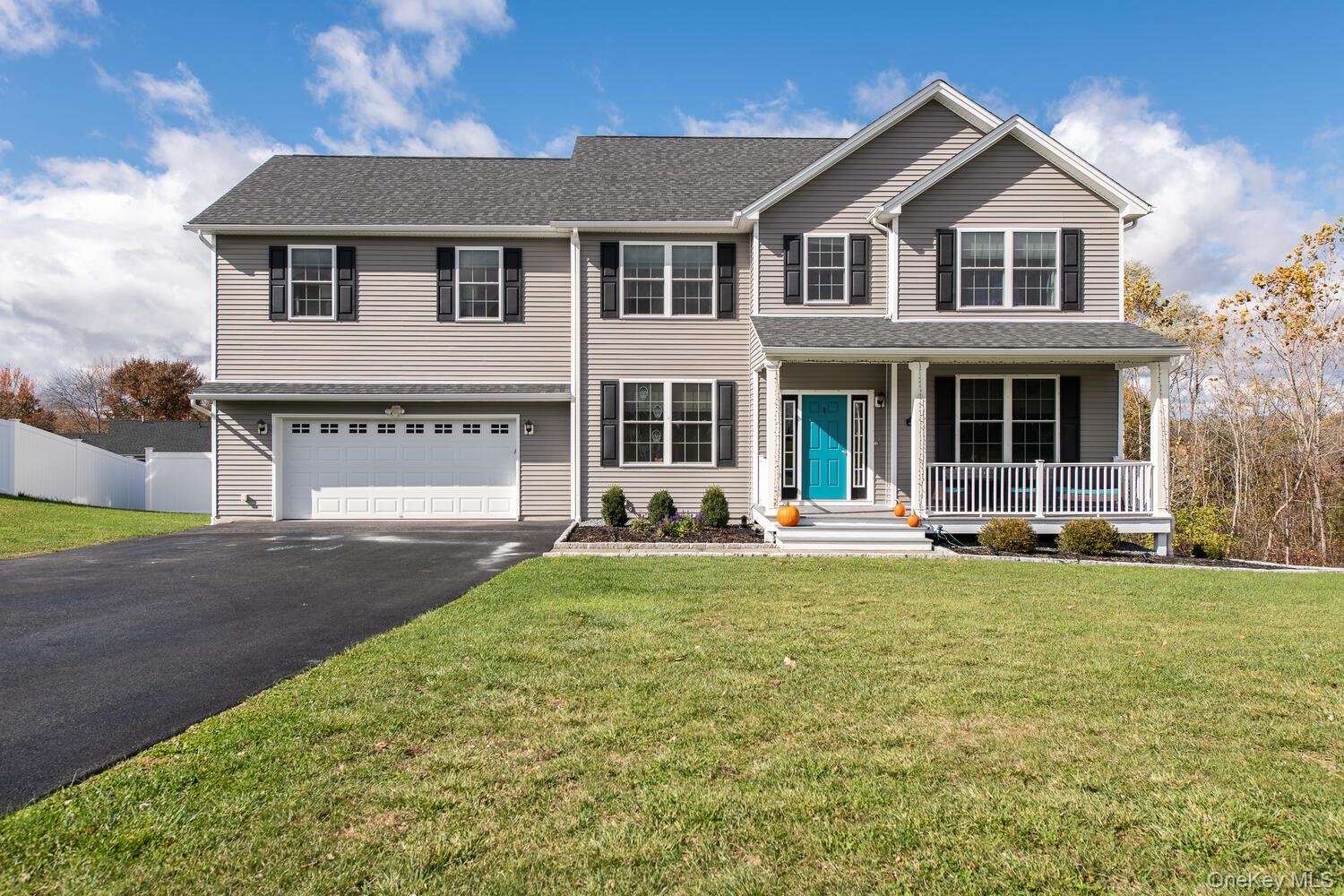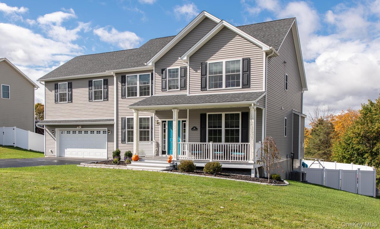Welcome to Stratford Farms – An enclave of modern luxury.  Built in 2018 and pristinely maintained, this 4 bedroom 2.5 bath Colonial in the acclaimed Arlington School District offers a seamless fusion of style, sophistication, and high end comfort.  From the inviting rocking-chair front porch to the rich walnut-toned hardwood flooring throughout, this home exudes warmth and quality at every turn.  The first floor features a formal living/flex room and a formal dining room, ideal for entertaining or a home office setup. The open-concept kitchen and family room are the heart of the home - enjoy the cozy gas fireplace with custom remote-control blinds, and a gourmet kitchen boasting a massive center island, stainless steel appliances, and granite countertops with a unique leathered finish. Sliding glass doors lead to a spacious 16’x20’ deck, perfect for outdoor gatherings. Convenient access from the two-car garage into the kitchen with minimal steps - adds ease to everyday living. A stylish half bath completes the main level.  Upstairs, the primary suite impresses with a large walk-in closet and a luxurious ensuite bath featuring an oversized walk-in shower and double-sink vanity with granite countertop. Three additional bedrooms offer generous space, complemented by a full hallway bath with tub/shower combination and a dedicated laundry room with utility sink.  A full, unfinished walkout basement provides endless possibilities for future expansion – perfect for recreation room, home gym or media space.  With high ceilings, backyard access, and abundant storage – this level combines flexibility with functionality.  You’ll love the extras! - custom blackout blinds throughout, recessed lighting, central air, an Energy Star Navien hydronic boiler, and so much more. Enjoy outdoor living on the brand new paver patio or take a dip in the 21-foot round saltwater pool - all within your own private, fully fenced backyard oasis. The home is also hardwired for an alarm system with full property radius cameras for added peace of mind.  With natural gas, municipal water, and community sewer, this home checks every box. Just minutes to Adams Fairacre Farms, East Dale Village, The Empire State Rail Trail and the Taconic State Parkway. This move-in-ready home combines comfort, privacy, and modern amenities - perfect for today’s lifestyle!