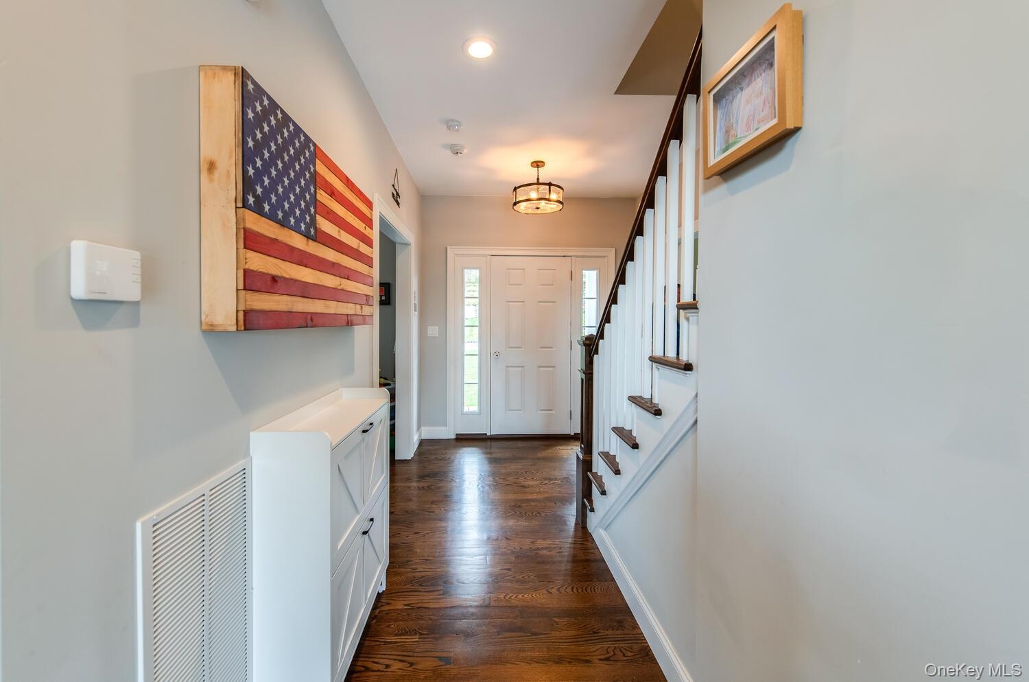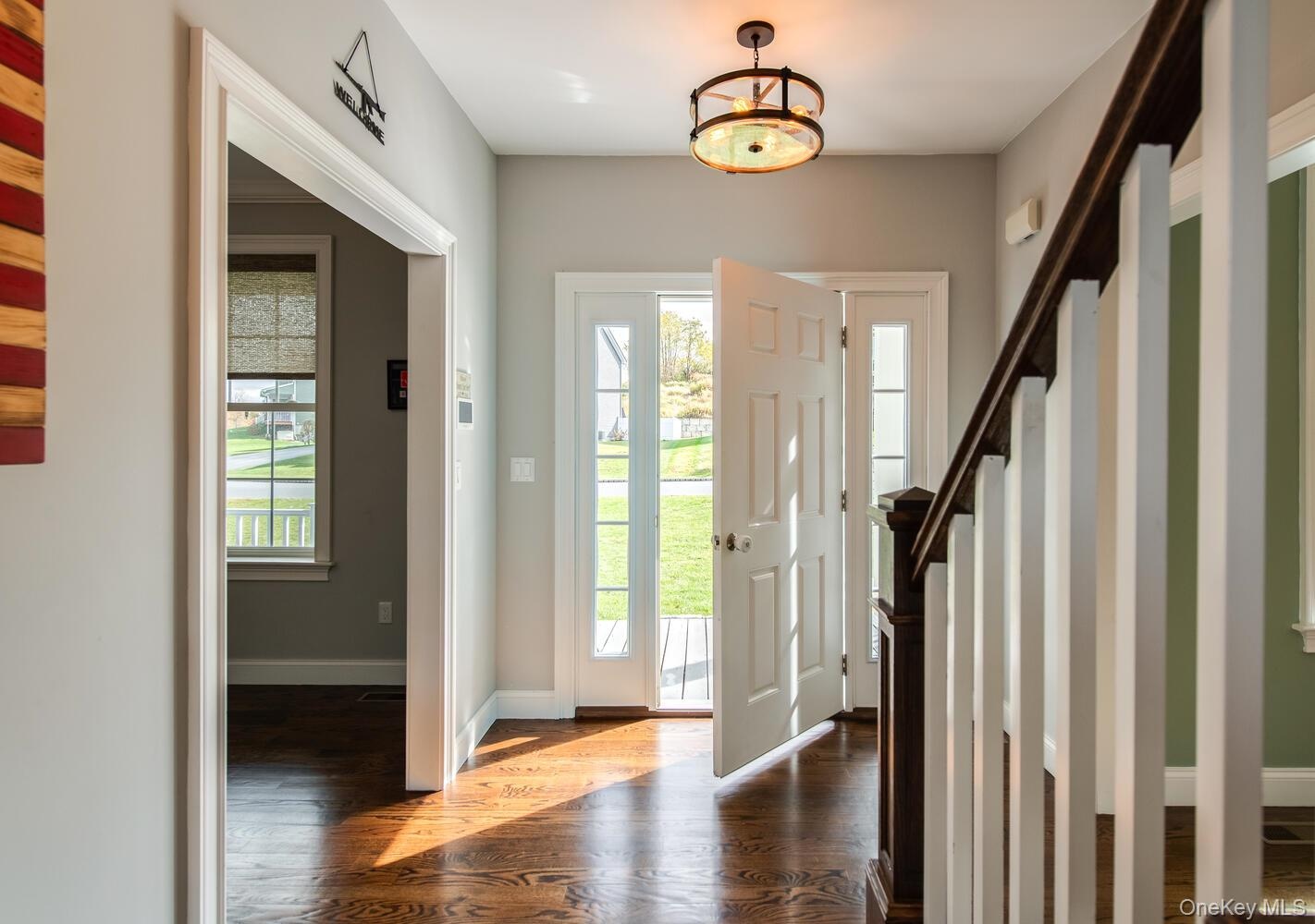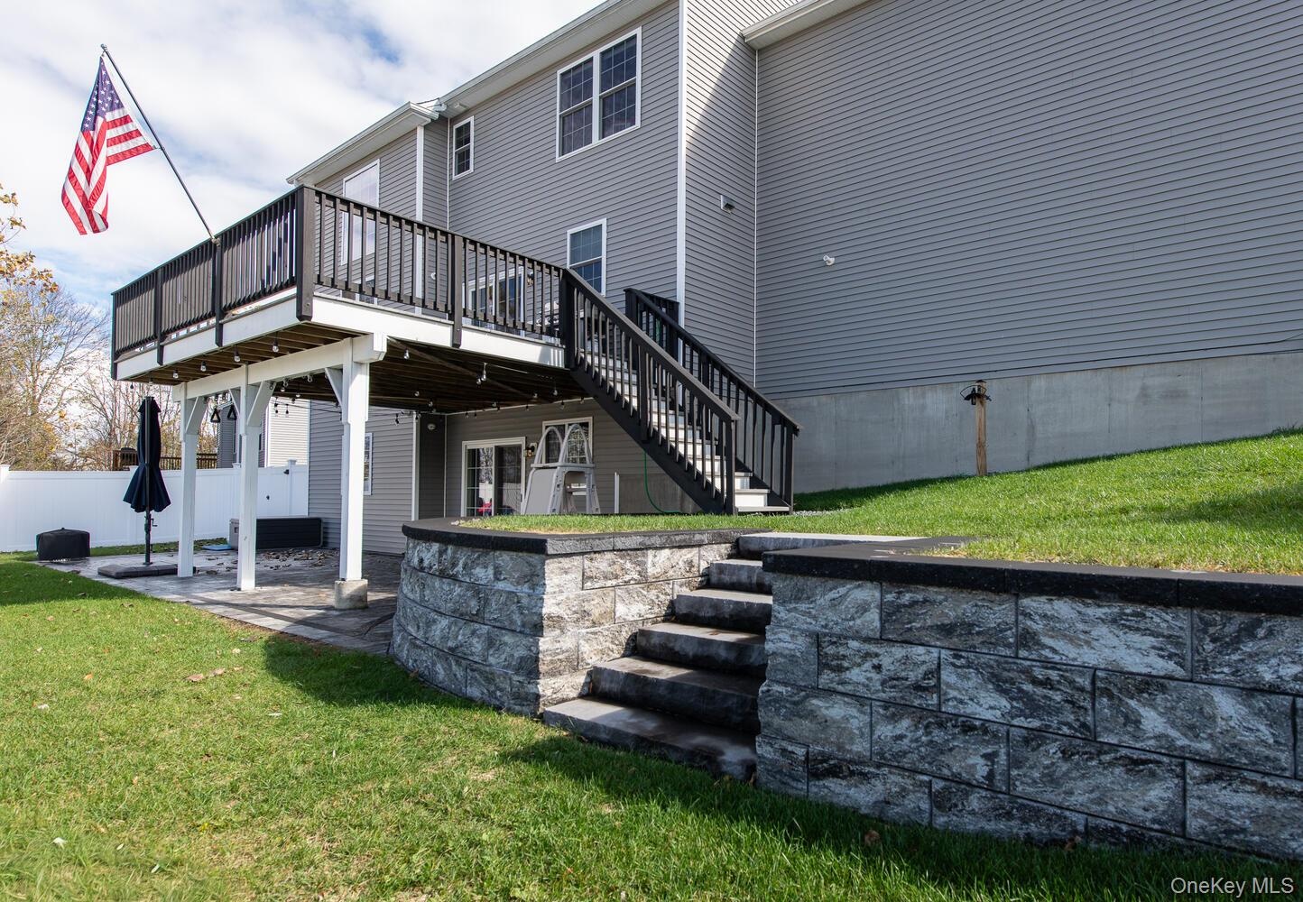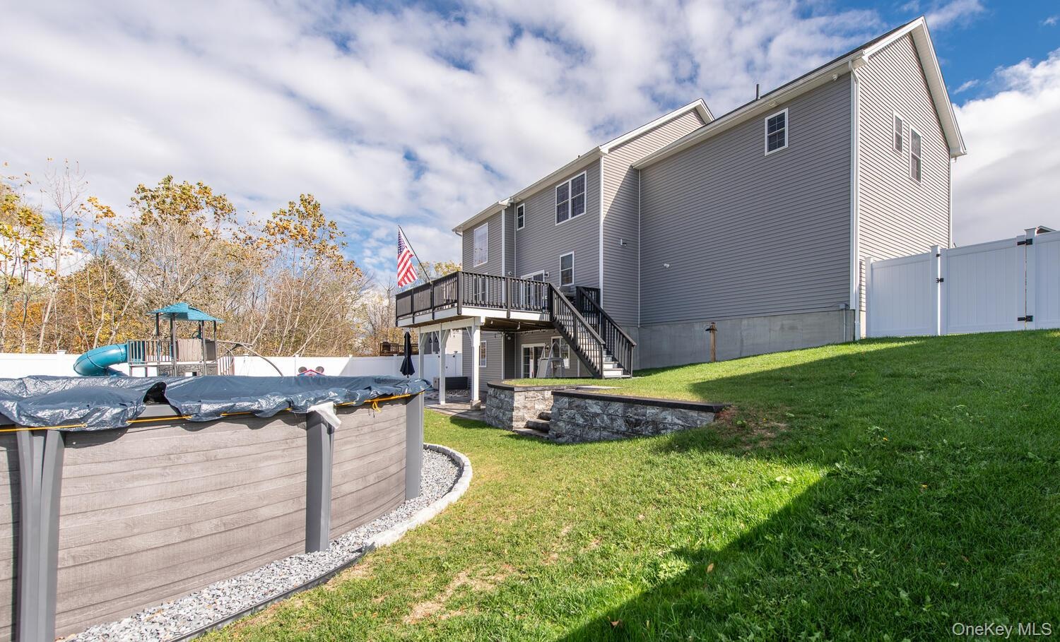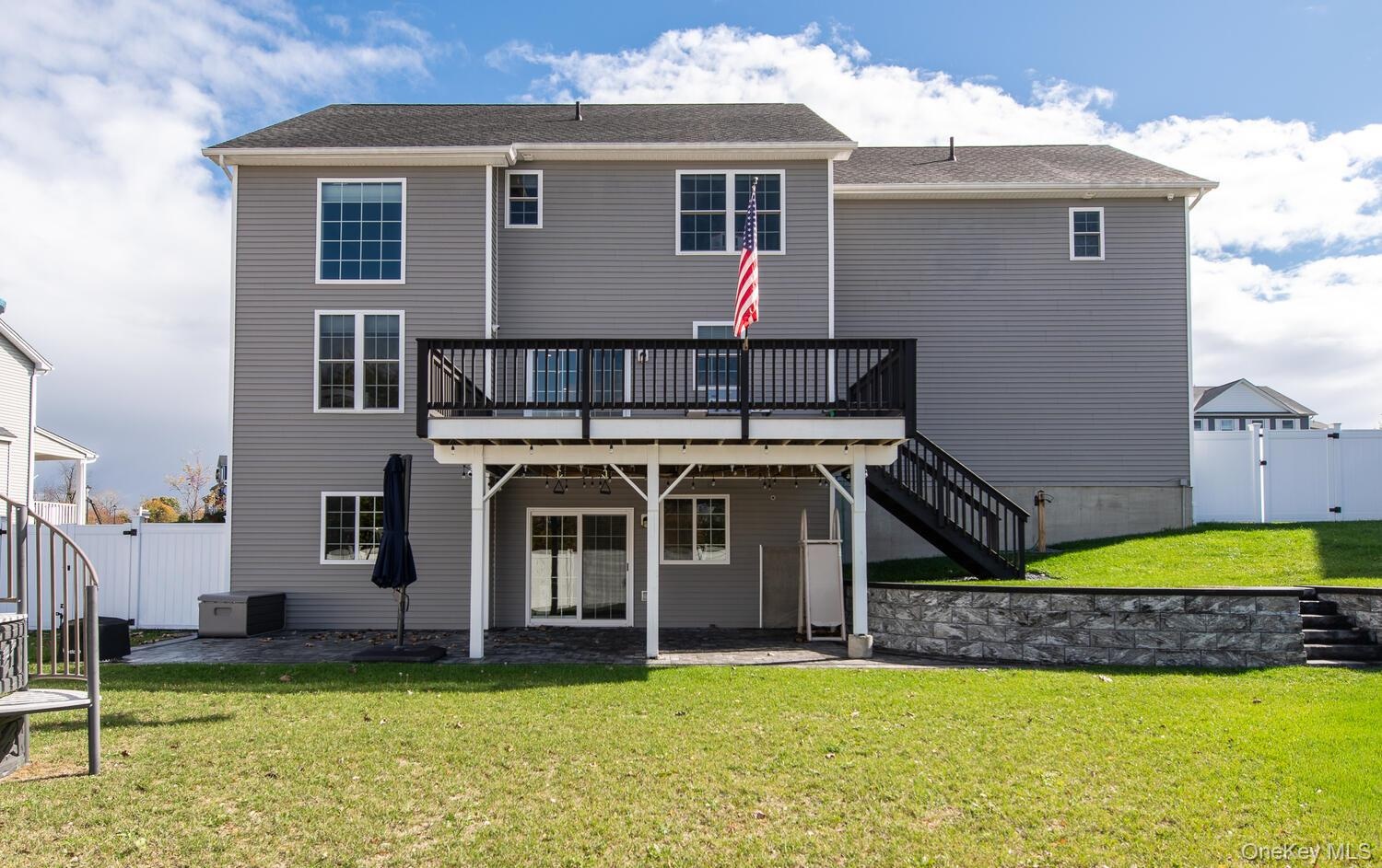 Welcome to Stratford Farms – An enclave of modern luxury.  Built in 2018 and pristinely maintained, this 4 bedroom 2.5 bath Colonial in the acclaimed Arlington School District offers a seamless fusion of style, sophistication, and high end comfort.  From the inviting rocking-chair front porch to the rich walnut-toned hardwood flooring throughout, this home exudes warmth and quality at every turn.  The first floor features a formal living/flex room and a formal dining room, ideal for entertaining or a home office setup. The open-concept kitchen and family room are the heart of the home - enjoy the cozy gas fireplace with custom remote-control blinds, and a gourmet kitchen boasting a massive center island, stainless steel appliances, and granite countertops with a unique leathered finish. Sliding glass doors lead to a spacious 16’x20’ deck, perfect for outdoor gatherings. Convenient access from the two-car garage into the kitchen with minimal steps - adds ease to everyday living. A stylish half bath completes the main level.  Upstairs, the primary suite impresses with a large walk-in closet and a luxurious ensuite bath featuring an oversized walk-in shower and double-sink vanity with granite countertop. Three additional bedrooms offer generous space, complemented by a full hallway bath with tub/shower combination and a dedicated laundry room with utility sink.  A full, unfinished walkout basement provides endless possibilities for future expansion – perfect for recreation room, home gym or media space.  With high ceilings, backyard access, and abundant storage – this level combines flexibility with functionality.  You’ll love the extras! - custom blackout blinds throughout, recessed lighting, central air, an Energy Star Navien hydronic boiler, and so much more. Enjoy outdoor living on the brand new paver patio or take a dip in the 21-foot round saltwater pool - all within your own private, fully fenced backyard oasis. The home is also hardwired for an alarm system with full property radius cameras for added peace of mind.  With natural gas, municipal water, and community sewer, this home checks every box. Just minutes to Adams Fairacre Farms, East Dale Village, The Empire State Rail Trail and the Taconic State Parkway. This move-in-ready home combines comfort, privacy, and modern amenities - perfect for today’s lifestyle!