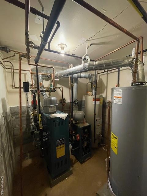 - Empty room featuring a baseboard heating unit and dark colored carpet