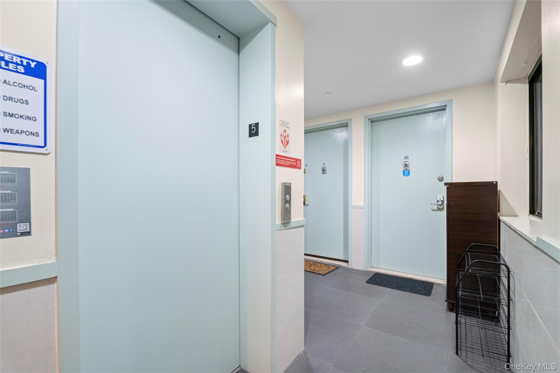- Corridor featuring elevator and recessed lighting