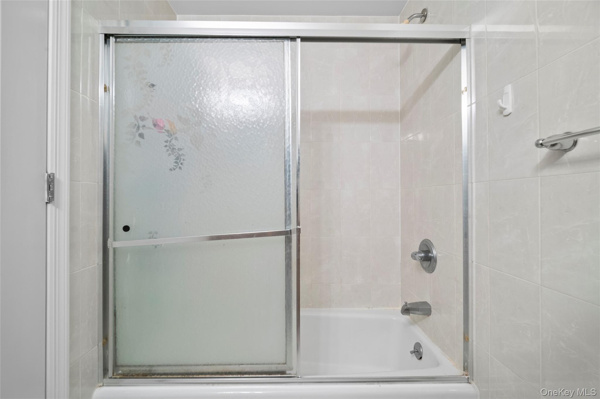 - Bathroom with shower / bath combination with glass door