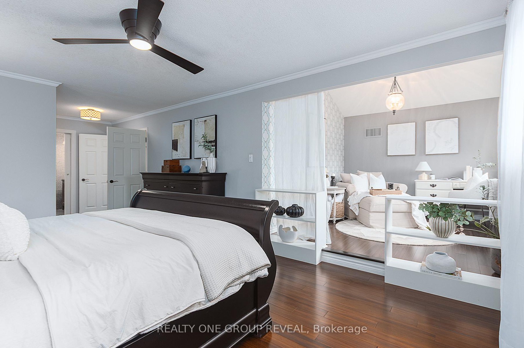 Located on a quiet cul-de-sac in the exclusive Queens Common neighbourhood, this 4+2-bedrooms, 5-bath, 2-full kitchens detached home offers flexible space for multi-generational living, co-ownership, or families with teens or older parents. With over 3,400 sq. ft. above grade and a fully finished approx.1,500 sq. ft. basement apartment, the layout supports privacy, independence, and shared space when needed. The main level includes formal dining and living areas, a family room with fireplace, and a breakfast area off the central kitchen. Upstairs, three generously sized bedrooms are complemented by an upper sitting area and a private office. A unique third-storey loft with its own bedroom, bath, and living space adds separation for young adults, guests or work-from-home setups. The basement apartment includes 2 bedrooms, a full kitchen, living area, bath, and egress windows-ideal for aging parents, grown children, or rental potential. Outdoors, enjoy a deep 158-ft lot backing onto conservation land, offering peace and privacy. The fenced backyard includes a shed, gazebo, and garden beds. The attached double garage and private drive accommodate 6 vehicles. Upgrades include EV charger, central vacuum, 2 electrical panels, and smart home features. Nearby amenities include top-rated schools, parks, the Whitby Library, and quick access to 401/412 highways.