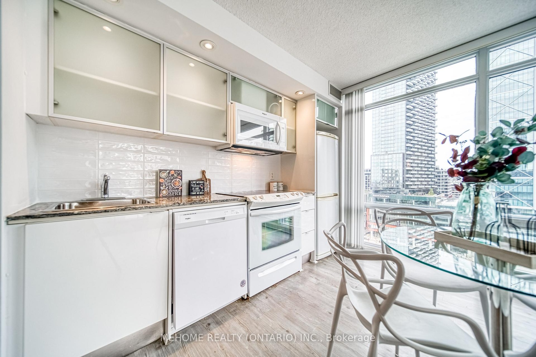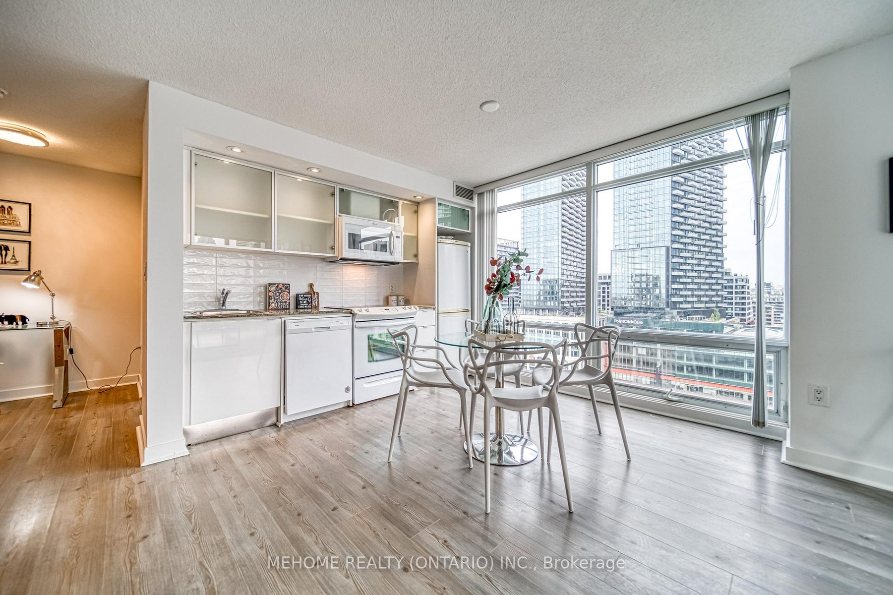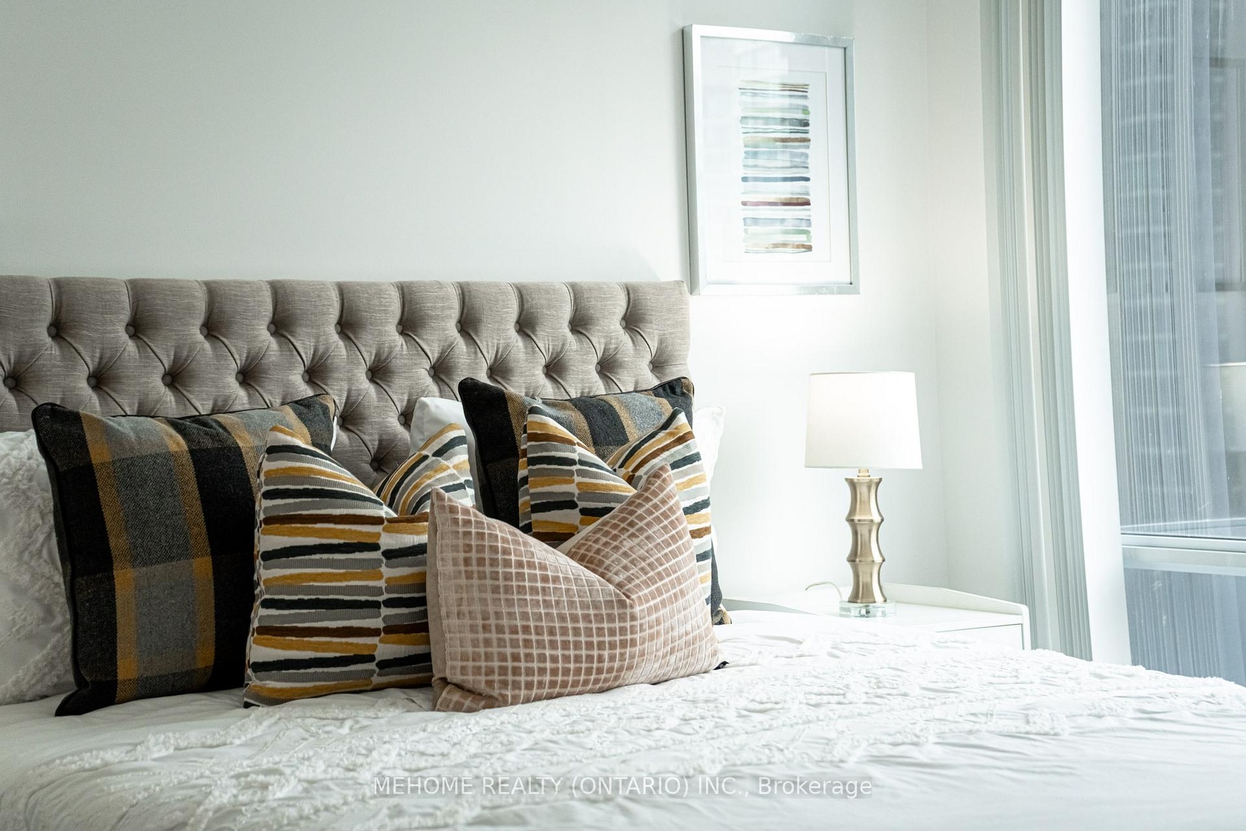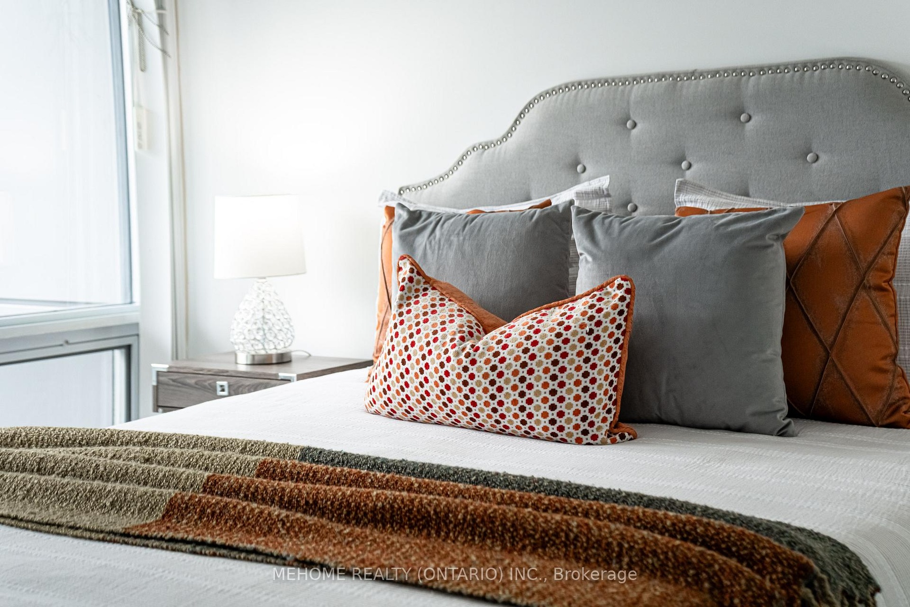 Montage at CityPlace! Enjoy a spectacular 270 view of the city from this bright and spacious 933 sq. ft. corner suite with a full-size balcony! Floor-to-ceiling windows fill the unit with natural light, while the functional split-bedroom layout and open-concept living area create the perfect space for both relaxation and entertaining.Featuring 2 bedrooms, 2 bathrooms, and a versatile open-concept den/study, this thoughtfully designed layout is ideal for comfortable living and working from home. The primary bedroom offers a double closet and 4-piece ensuite, while the second bedroom boasts floor-to-ceiling windows and a double closet overlooking the balcony. Enjoy the convenience of ensuite laundry with a full-size stacked washer and dryer, A stylish new kitchen backsplash, and updated appliances including a microwave with range hood (2023), dishwasher (2023), and fridge (2025). Luxury building with resort-style amenities including an indoor pool, hot tub, gym, theater, outdoor lounge, BBQ area, guest suites, and more. Direct underground access to Sobeys Market for everyday convenience.Steps to Harbourfront, CN Tower, Rogers Centre, The Well, transit, restaurants, and shops. Includes 1 parking space and 1 locker.