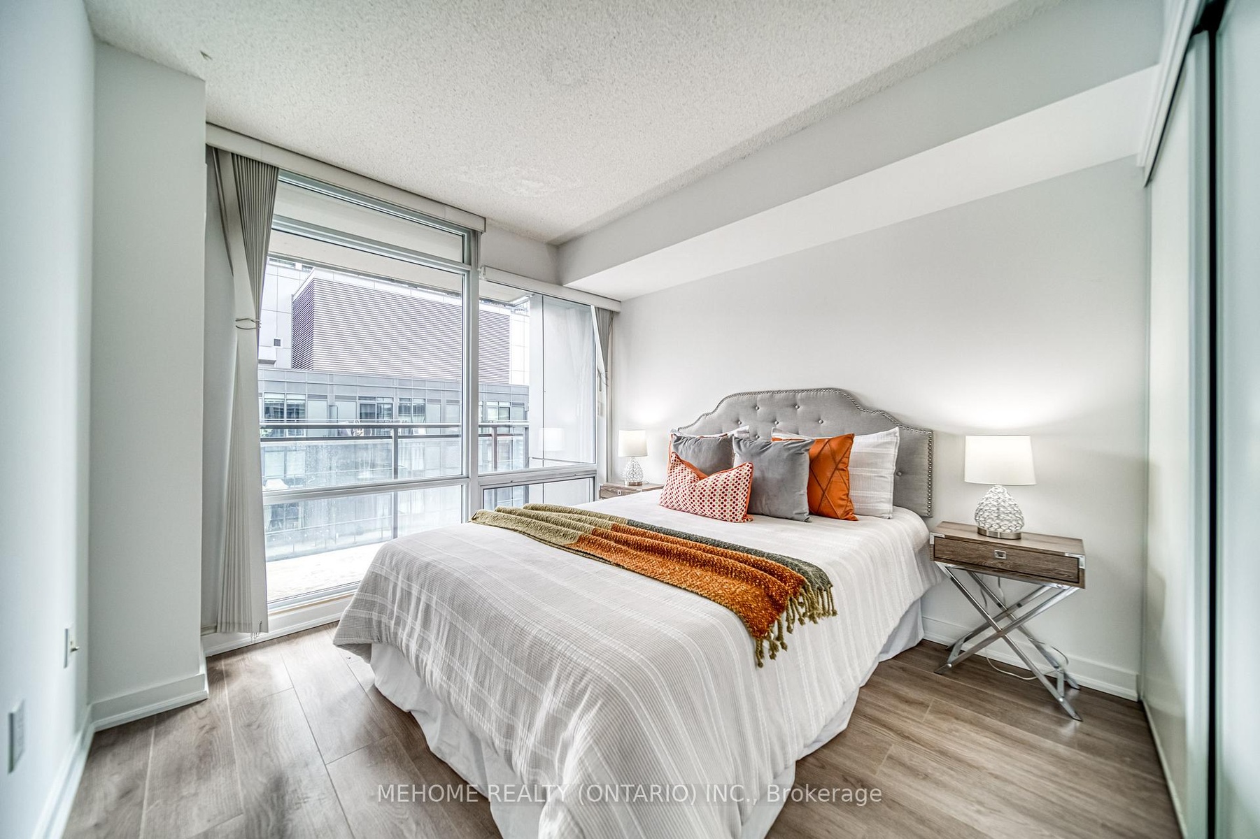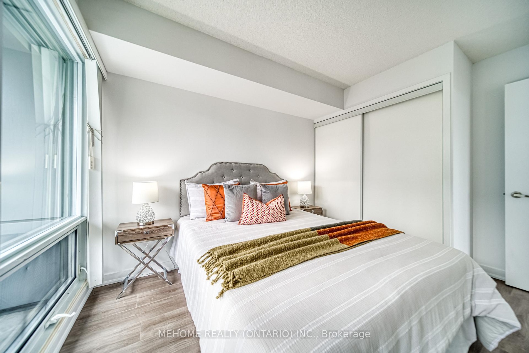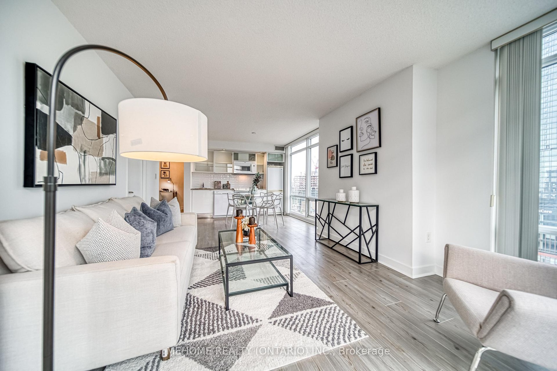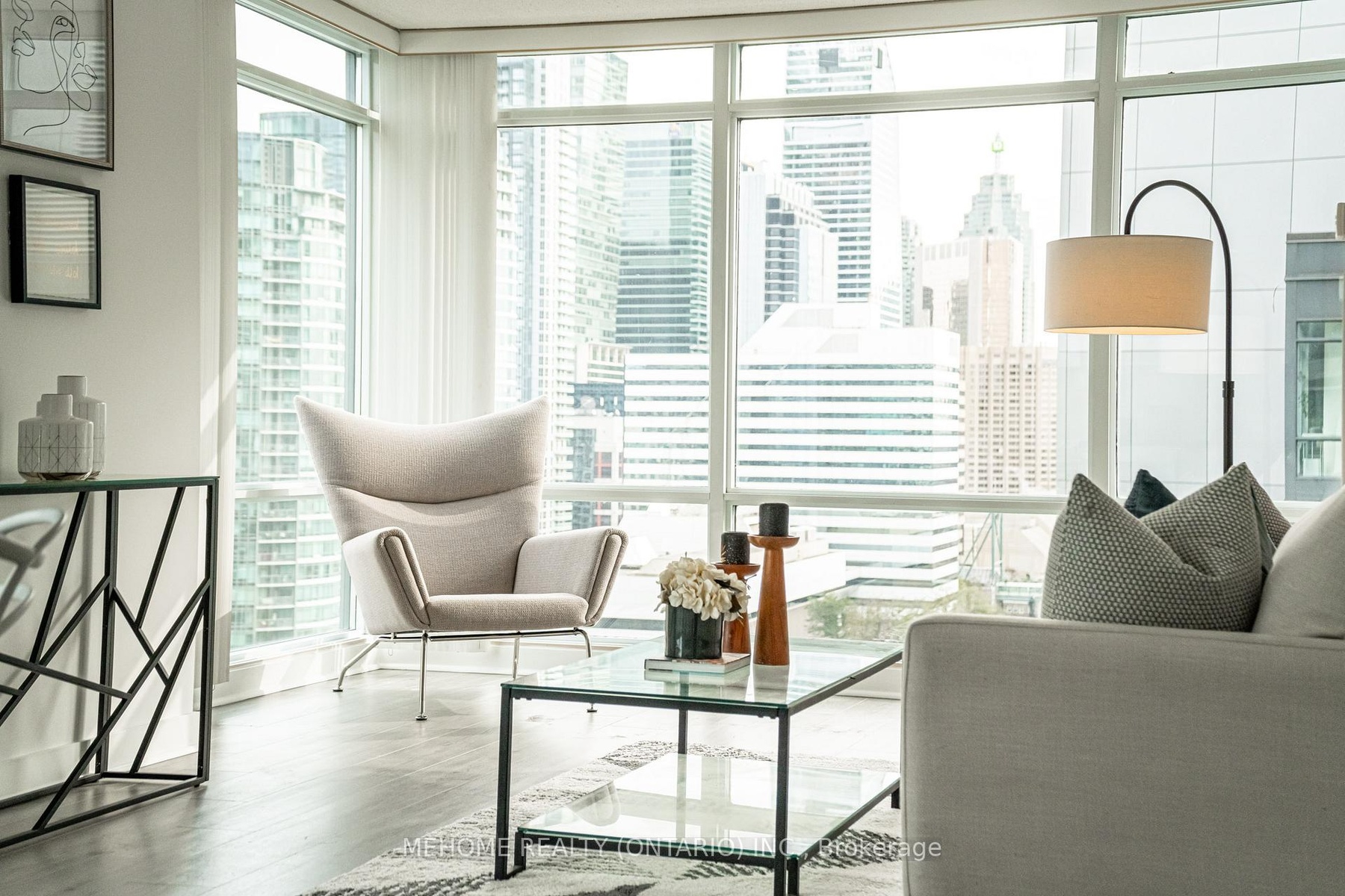 Montage at CityPlace! Enjoy a spectacular 270 view of the city from this bright and spacious 933 sq. ft. corner suite with a full-size balcony! Floor-to-ceiling windows fill the unit with natural light, while the functional split-bedroom layout and open-concept living area create the perfect space for both relaxation and entertaining.Featuring 2 bedrooms, 2 bathrooms, and a versatile open-concept den/study, this thoughtfully designed layout is ideal for comfortable living and working from home. The primary bedroom offers a double closet and 4-piece ensuite, while the second bedroom boasts floor-to-ceiling windows and a double closet overlooking the balcony. Enjoy the convenience of ensuite laundry with a full-size stacked washer and dryer, A stylish new kitchen backsplash, and updated appliances including a microwave with range hood (2023), dishwasher (2023), and fridge (2025). Luxury building with resort-style amenities including an indoor pool, hot tub, gym, theater, outdoor lounge, BBQ area, guest suites, and more. Direct underground access to Sobeys Market for everyday convenience.Steps to Harbourfront, CN Tower, Rogers Centre, The Well, transit, restaurants, and shops. Includes 1 parking space and 1 locker.