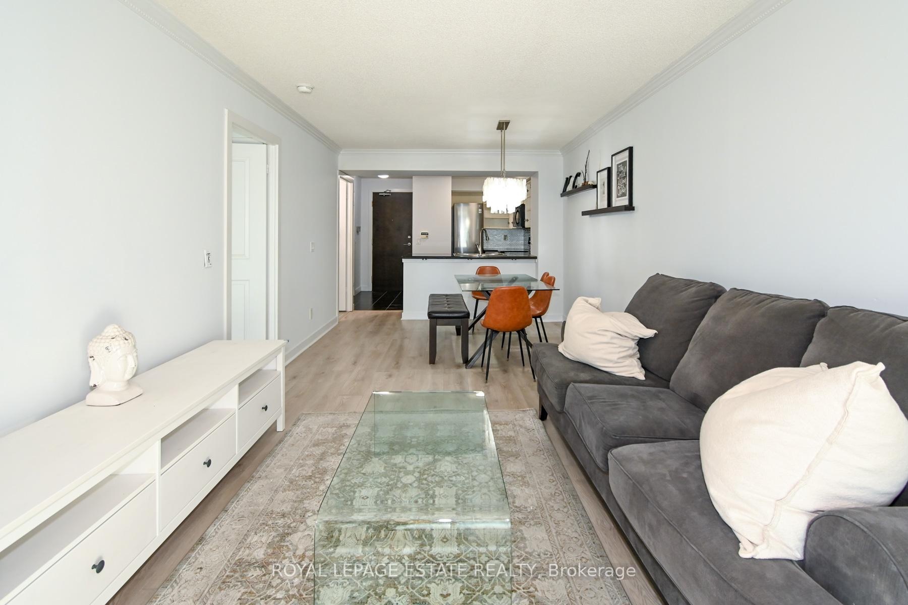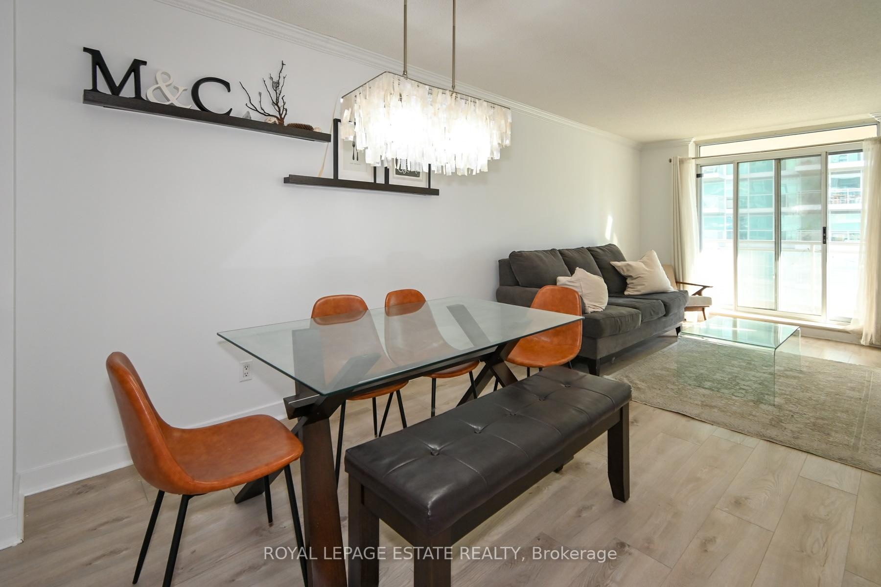 Welcome To This Oversized 1 Bedroom + Den Suite Offering The Perfect Blend Of Space, Comfort, And Style In One Of Toronto's Most Vibrant Neighbourhoods. The Open Concept Living And Dining Area Is Ideal For Entertaining, With Ample Room For A Full Sized Dining Table And Seamless Access To A Private Balcony From The Large Living Room. The Enclosed Den Complete With French Doors Makes For A Perfect Home Office, Guest Room, Or Creative Space. The Large Primary Bedroom Features Its Own Walk-Out To The Balcony And A Generous Walk-In Closet With Custom Storage Organizers For Optimal Functionality. Enjoy Updated Flooring Throughout, And A Modern Kitchen Equipped With Stainless Steel Appliances, Granite Countertops, A Stylish Backsplash, And Convenient Breakfast Bar Seating. Located In A Well Managed Building With Top Tier Amenities Including A Gym, Indoor Pool, Party/Meeting Room, Concierge & More. Don't Miss Your Chance To Live In The Heart Of Liberty Village With Everything You Need Right At Your Doorstep!