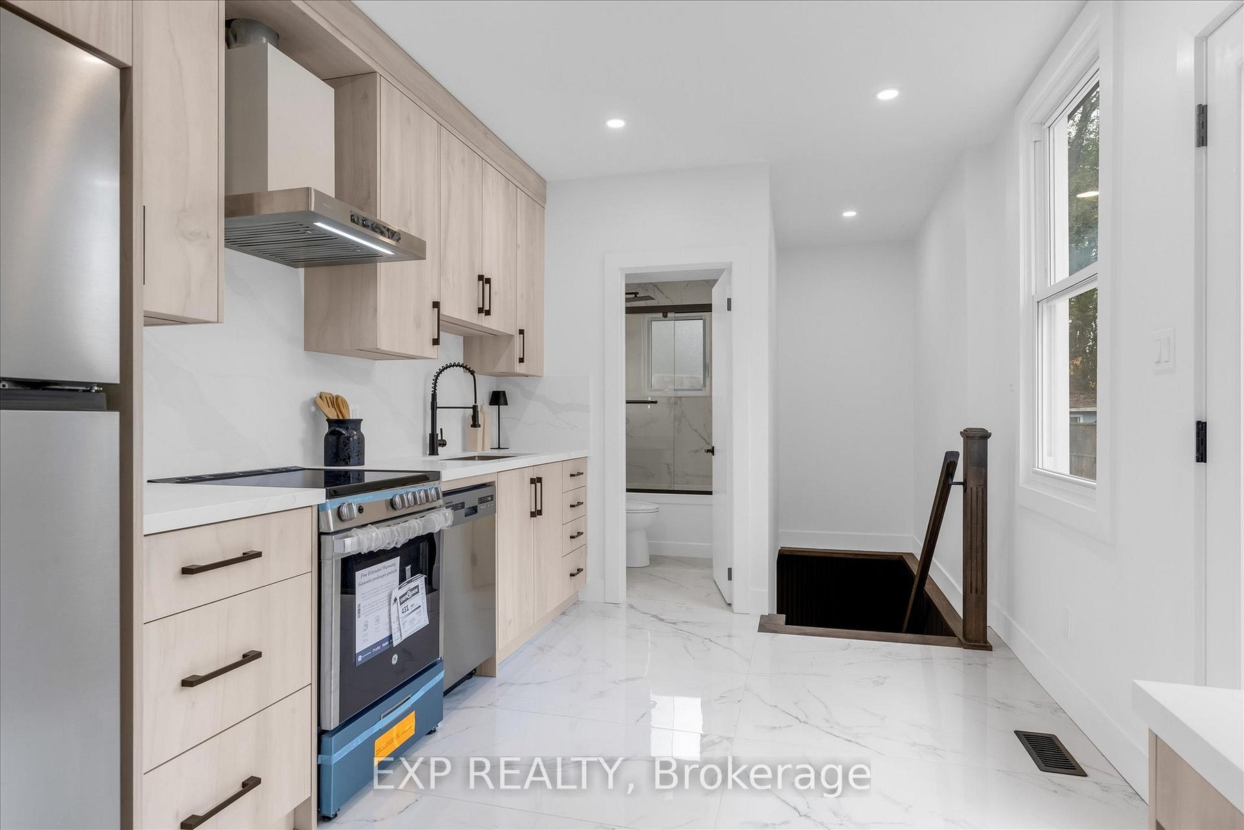This FULLY RENOVATED home offers a complete top-to-bottom transformation with every major component replaced. Features include a NEW ROOF, NEW ELECTRICAL, NEW PLUMBING (interior and underground), and ALL NEW DRYWALL AND FINISHES throughout. The home includes TWO NEW CUSTOM KITCHENS and an IN-LAW SUITE, perfect for extended family or rental income. Both bathrooms are CUSTOM BUILT with modern tile and fixtures. The EXTERIOR has been REDONE with a NEW DECK and updated curb appeal. Located just ONE MINUTE from HIGHWAY 403 and with a PARK directly across the street, this home combines modern living, prime location, and peace of mind with all major updates already completed.