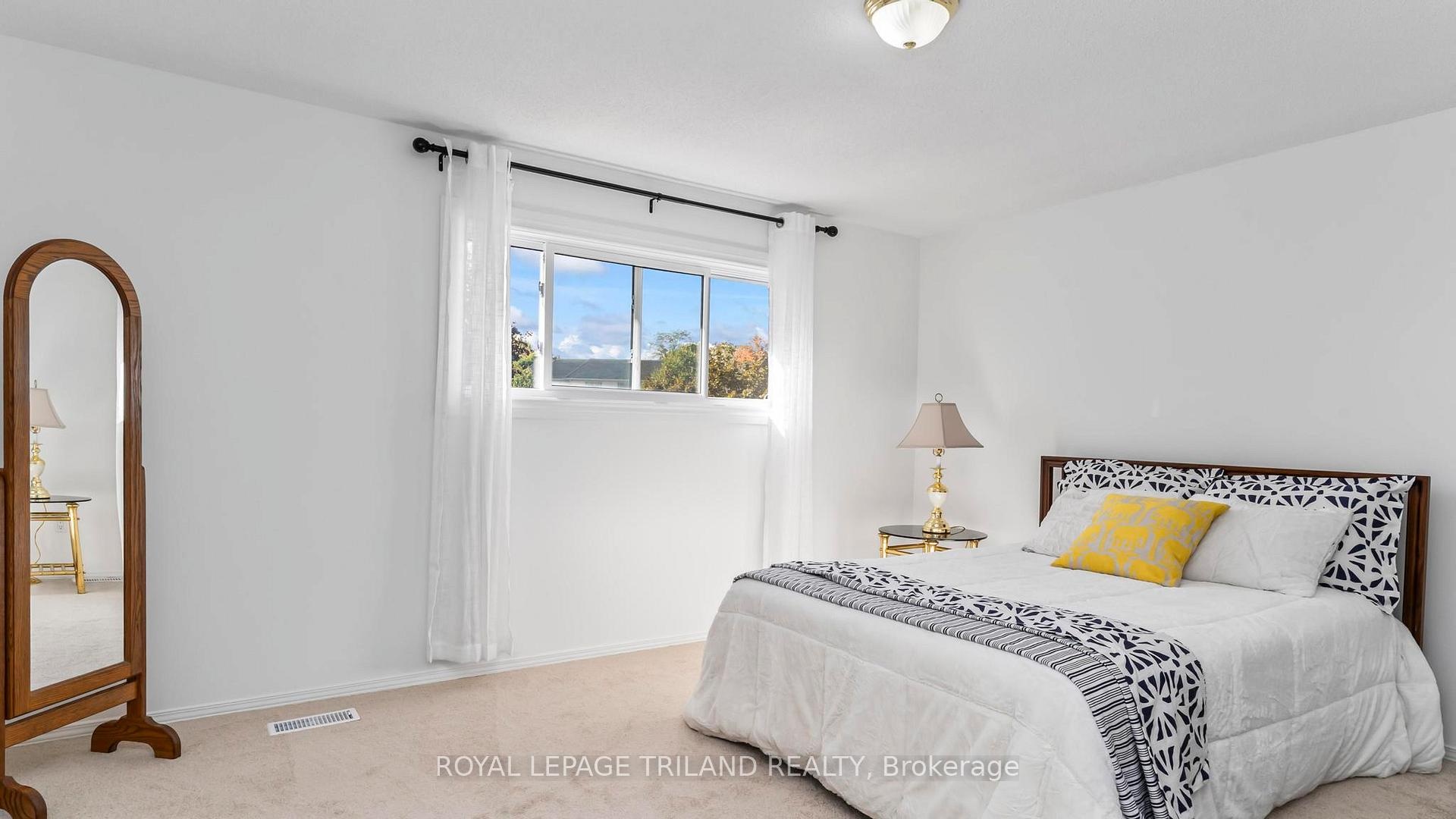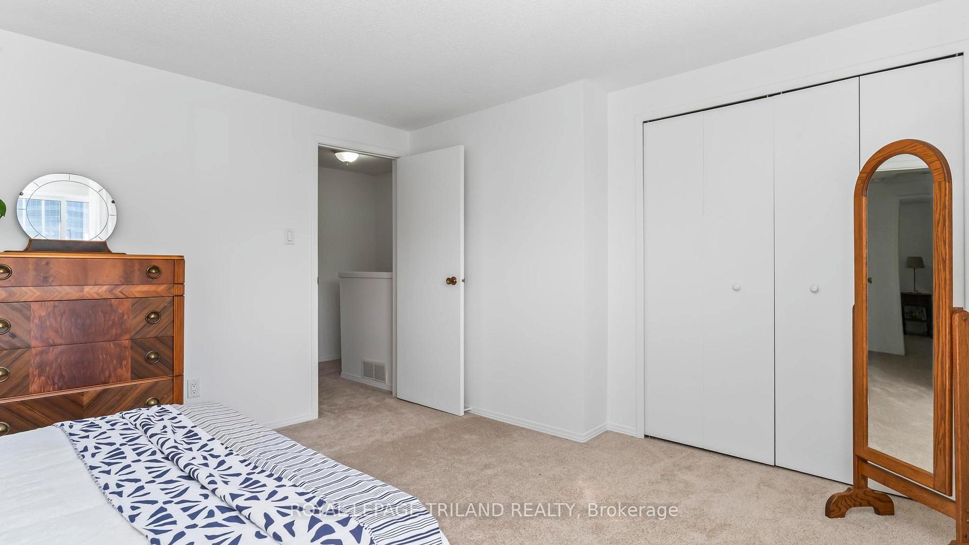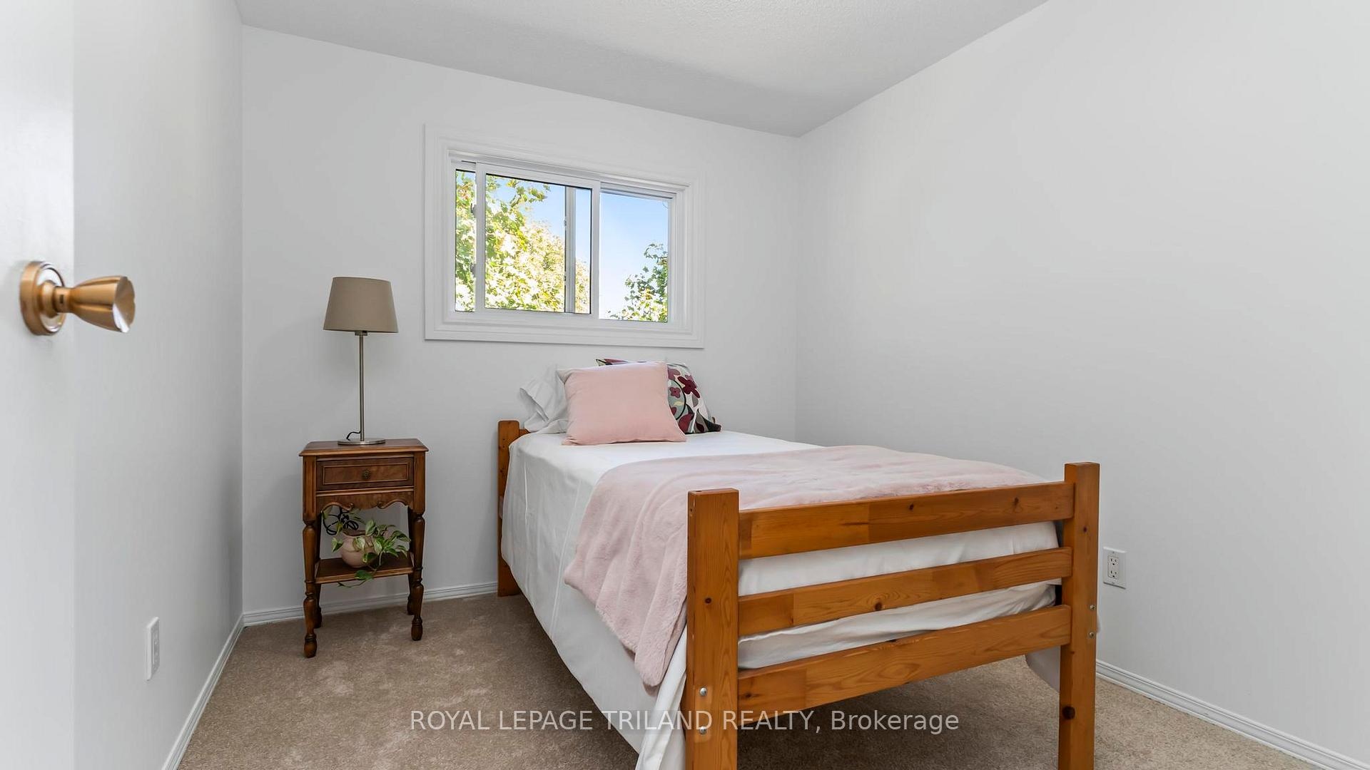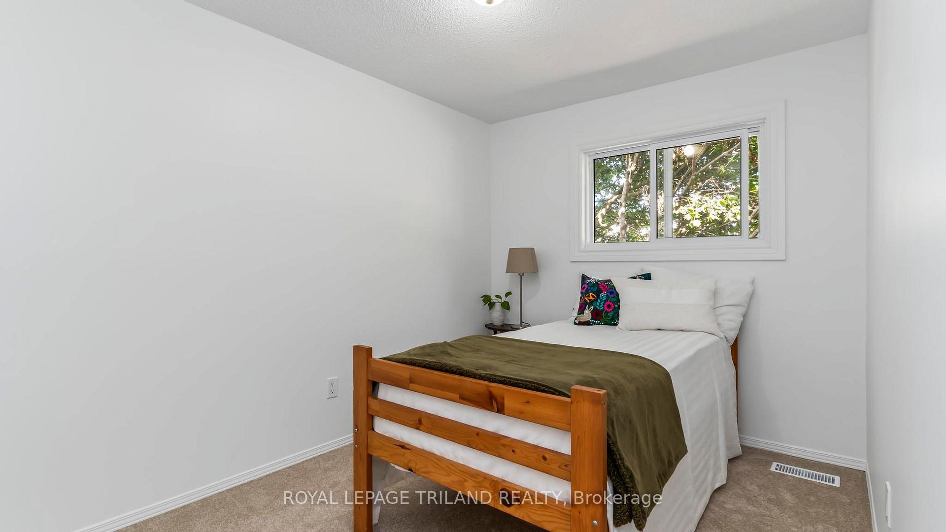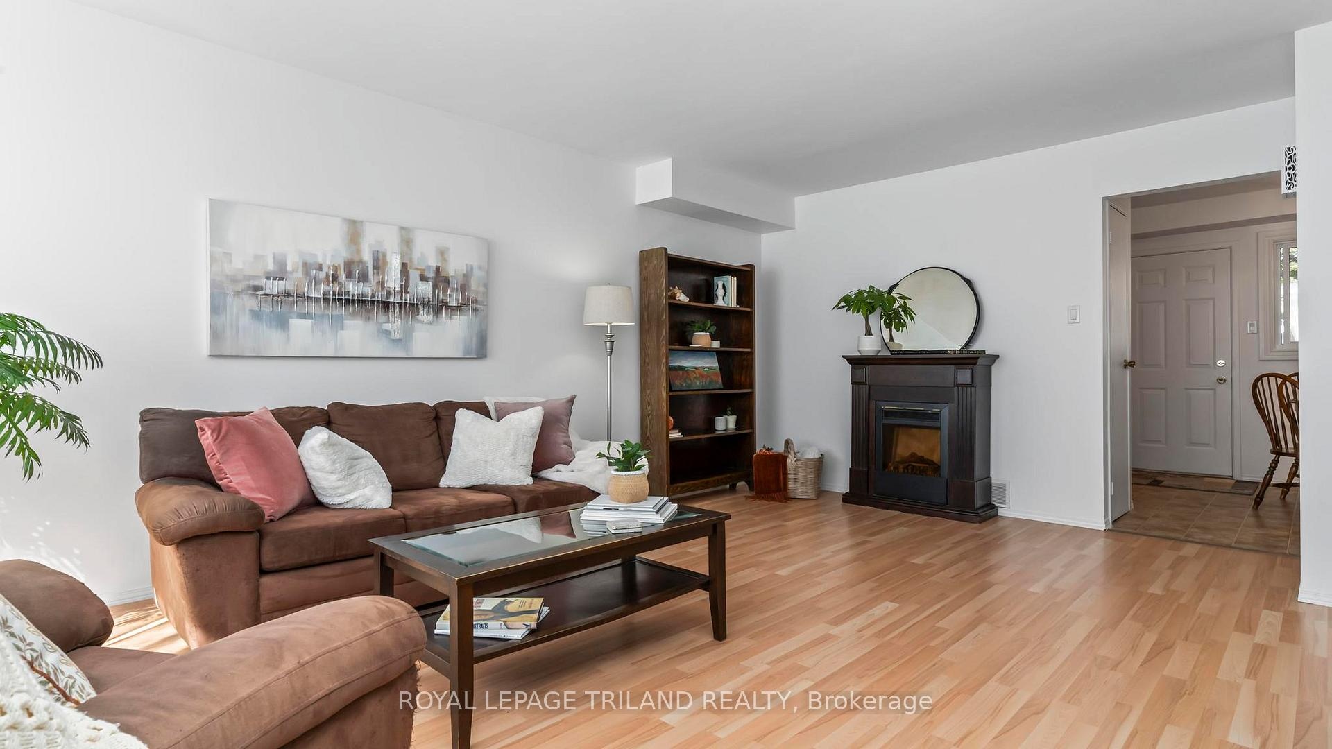 Welcome Home! Just steps from London's major healthcare hubs (Victoria Hospital, Children's Hospital, and Parkwood Institute) this charming, well-maintained townhome offers comfortable, low-maintenance living close to parks, grocery stores, and restaurants. Lovingly cared for by the same owner for over 15 years, the home features a bright, carpet-free main floor with a spacious layout and convenient main floor bath, leading to a 12' x 10' private patio overlooking peaceful greenspace that is perfect for relaxing or entertaining. Upstairs, enjoy three freshly painted, newly carpeted bedrooms and a full bath, while the partially finished lower level adds a cozy rec room with fireplace and plenty of storage space. Front porch virtually staged. Private parking is conveniently located just steps from your front door.