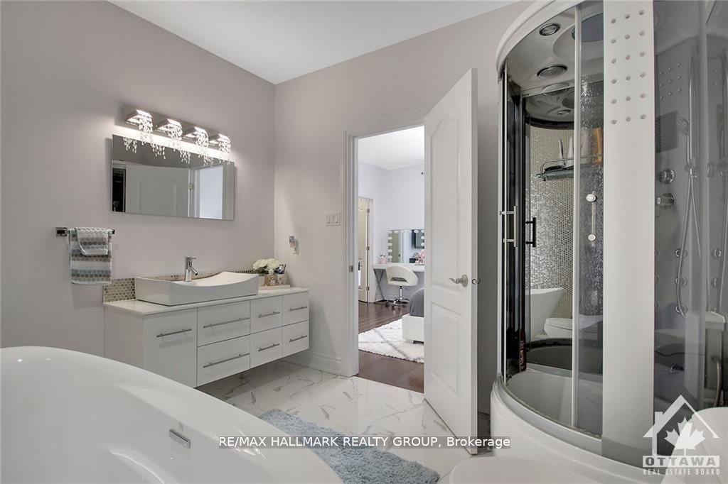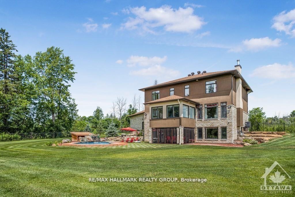 699 Ballycastle Crescent - Custom Luxury Home | Walkout Lot | No Rear Neighbours | Improved Price. Welcome to this luxurious5-bedroom, 5-bathroom custom home on a premium walkout lot in Emerald Creek Estates. Emerald Creek Estates is a prestigious, low-density community known for its peaceful ambiance, mature landscaping, and architecturally distinct homes. Tucked away yet conveniently located near schools, shops, transit, and major routes, this enclave offers both seclusion and accessibility. Backing onto green space with no rear neighbours, this home offers 4000+ sq ft of finished living space, a private saltwater pool, and flexible layout ideal for multigenerational living.The main level features formal living and dining rooms, a family room with wood-burning fireplace, and a chef's kitchen with granite countertops, high-end appliances, and custom cabinetry. A built-in bar, four-season sunroom, and screened-in porch overlook the backyard oasis.Upstairs includes four bedrooms-two with private ensuites and walk-in closets-plus a third full bath and second-floor laundry. The fully finished walkout lower level offers a complete in-law or teen suite with its own bedroom, full bathroom, family room with gas fireplace, and wet bar with fridge and sink.Additional highlights include hardwood flooring, 9-ft ceilings, double garage, in-ground irrigation, and updated mechanicals. Located in one of Ottawa's most sought-after neighborhoods near schools, shopping, and golf. Immediate occupancy available.If you've been dreaming of a home that truly has it all-space, luxury, privacy, and presence-your wait is over. This is a place where memories are made, legacies are built, and dreams become reality. Schedule your private viewing today, and discover why 699 Ballycastle Crescent is not just a home... it's your castle.