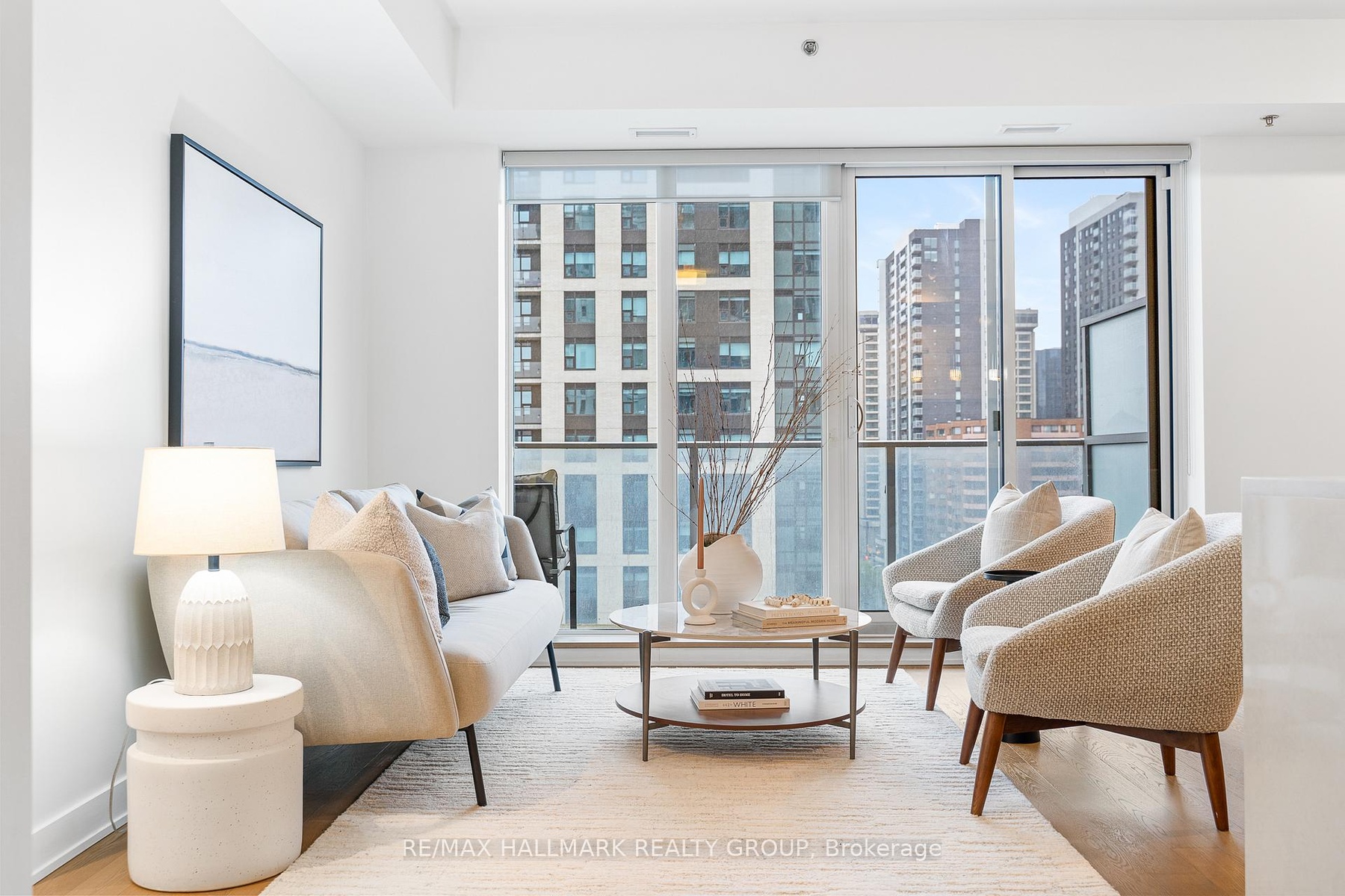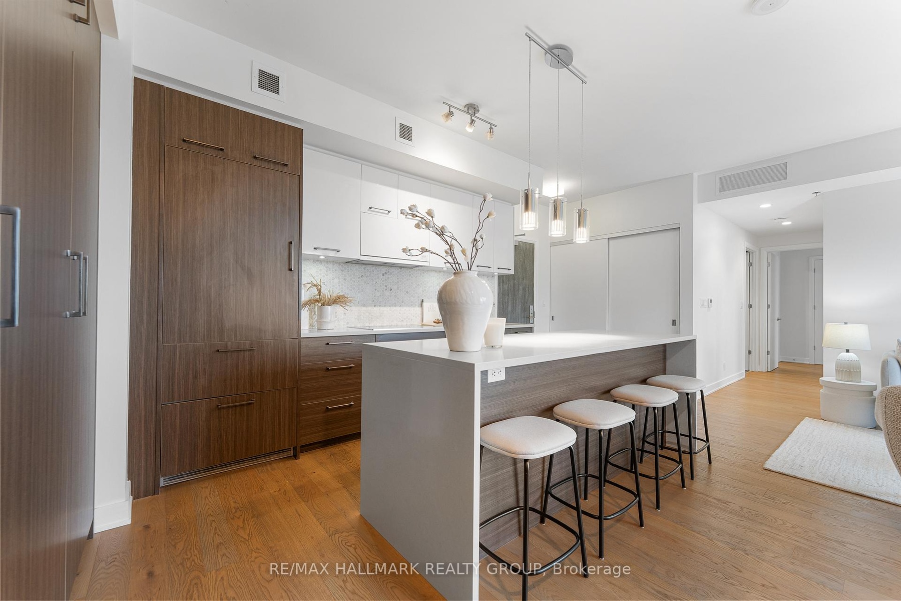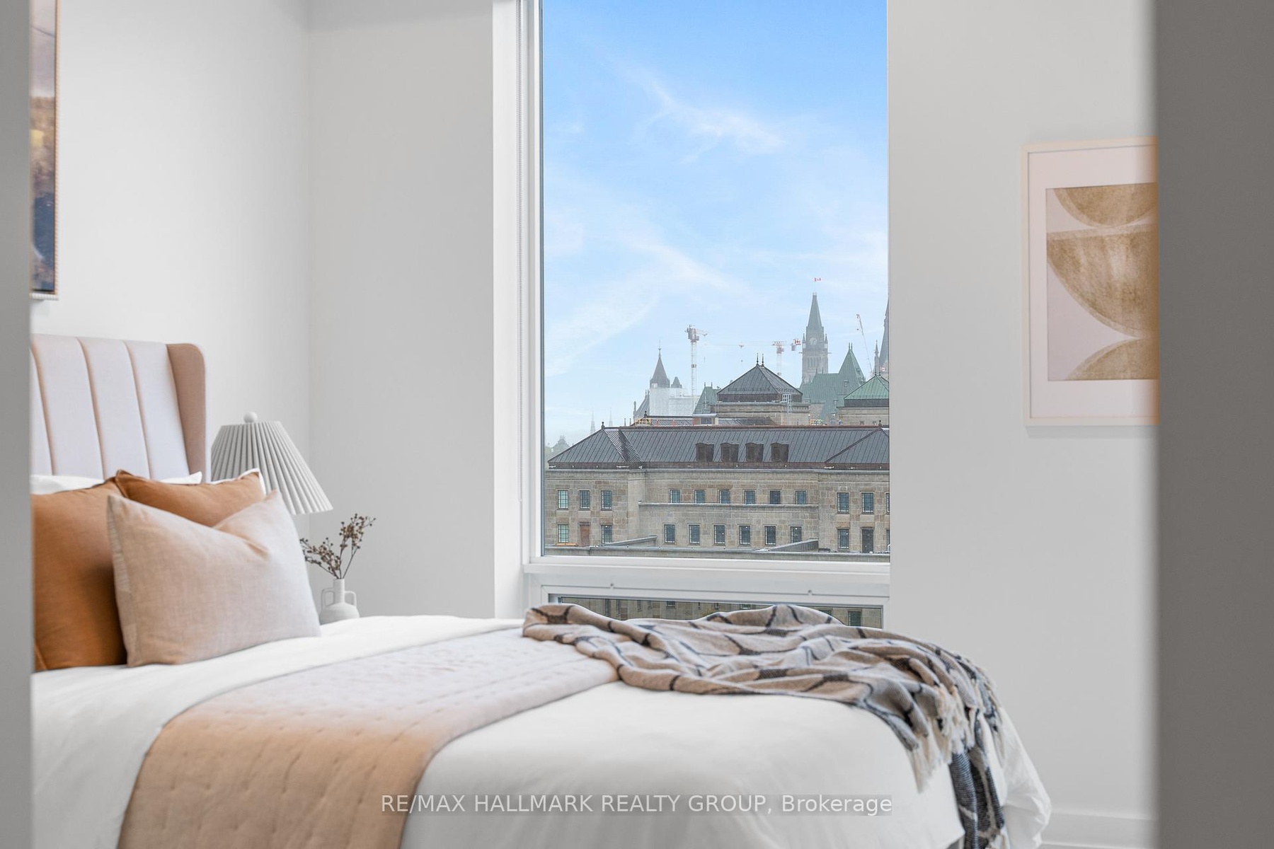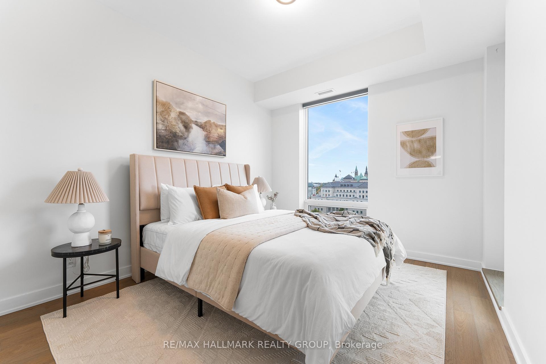 Welcome home to Cathedral Hill - where luxury meets lifestyle in the heart of Ottawa! Discover this spectacular two bedroom, two FULL bathroom condo perched high on the 10th floor at 428 Sparks Street. Offering breathtaking views of the Ottawa River, downtown skyline, Gatineau Hills and Parliament, this condo delivers a daily dose of inspiration from sunrise to sunset. Inside, an airy open-concept layout is bathed in natural light from floor-to-ceiling windows, complemented by rich hardwood floors throughout. The designer European kitchen is a true showpiece - featuring mosaic backsplash, two-tone cabinetry with integrated lighting, built-in appliances, and a stylish island with breakfast bar - perfect for morning coffee or entertaining guests.The elegant Primary Bedroom boasts a spacious walk-in closet and a spa-inspired ensuite complete with a glass shower AND deep soaker tub. A generous second bedroom, full main bathroom, and in-suite laundry add comfort and convenience to everyday living. Perfect for hosting guests, families or even an at home office, if desired. Step out onto your private balcony to take in panoramic city and river views - the perfect setting to unwind after a long day. This condo also comes with secure underground parking and a full storage locker. This is luxury living in an environmentally friendly LEED certified building! Residents of Cathedral Hill enjoy access to premium amenities including a fitness centre, yoga studio, party room, pet wash station, and concierge service. All this in an unbeatable downtown location - only steps to the Lyon LRT station, Lebreton Flats, Parliament Hill, the ByWard Market, and so much more. Experience upscale urban living at Cathedral Hill - urban luxury at its finest! Come fall in love today.