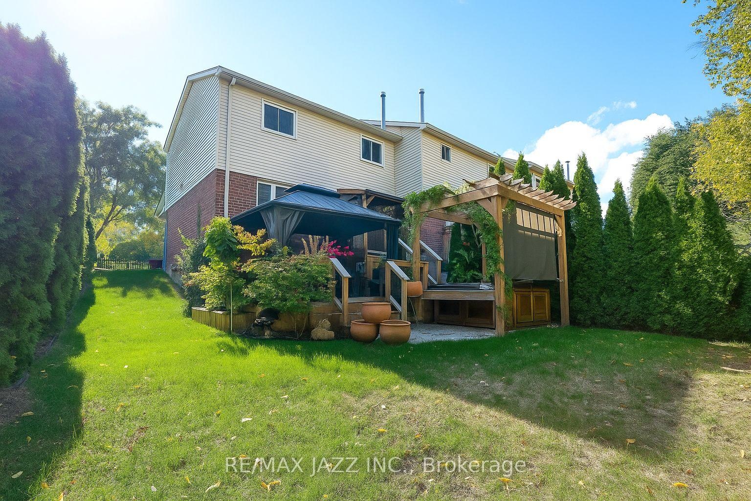 Welcome to 97 Stuart Road! Absolutely charming 3+1 bedroom, 3-bathroom home loaded with upgrades and style. Featuring beautiful vinyl windows that fill the home with natural light, this open-concept layout offers bright and spacious living and dining areas perfect for relaxing or entertaining.The modern kitchen includes a convenient walk-out to your stunning backyard oasis, complete with a custom two-tier deck featuring built-in LED lighting, a 10x12 hardtop gazebo, and a custom pergola ideal for hosting family and friends. Upstairs, you'll find generously sized bedrooms with large windows and ample closet space. The finished basement provides additional living space, a private laundry area with a custom sliding wood door, and stylish luxury vinyl plank flooring that also continues throughout the upper level. Enjoy the beautifully landscaped exterior with a two-car stone driveway, stone front porch, and single-car garage. Located directly across from a peaceful greenbelt and green space, this move-in-ready home offers comfort, quality, and curb appeal in a sought-after neighbourhood!