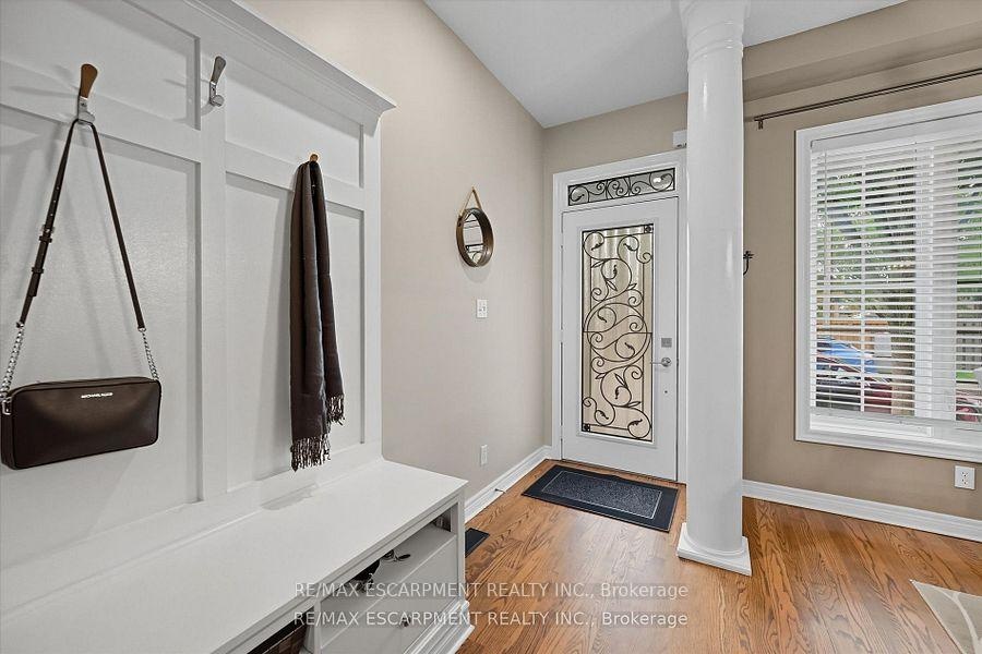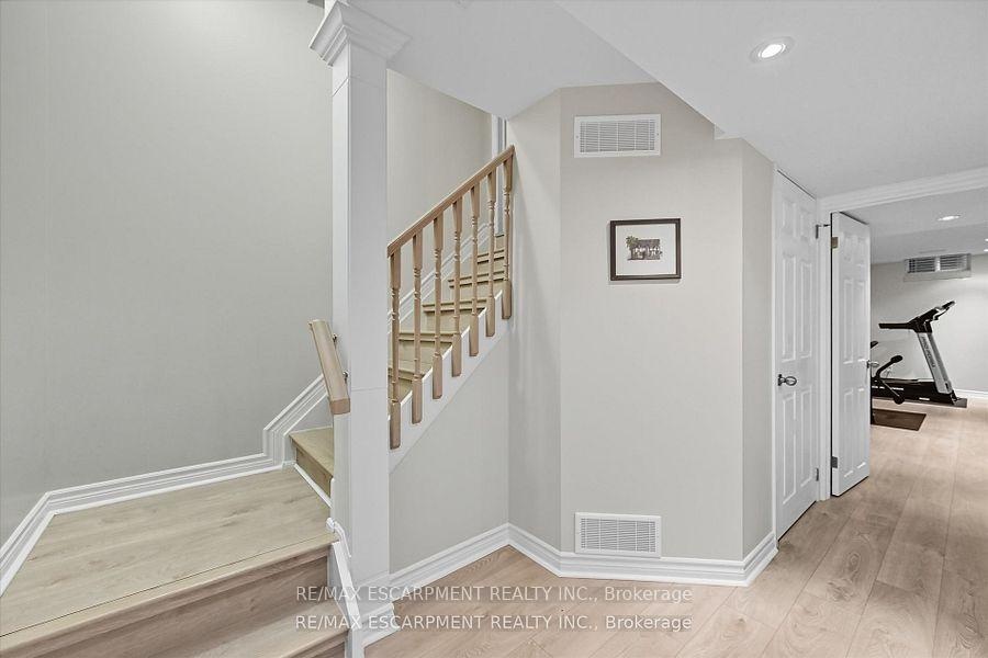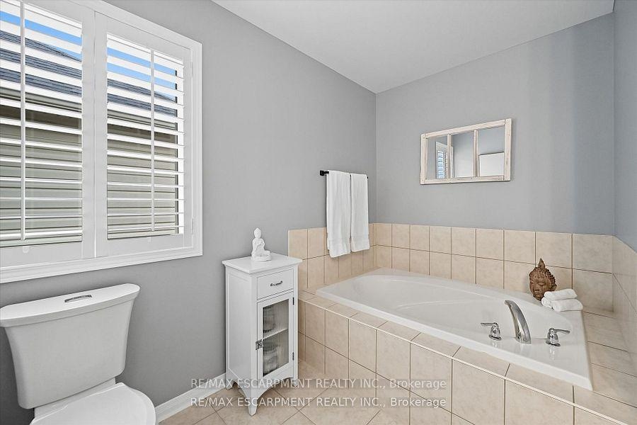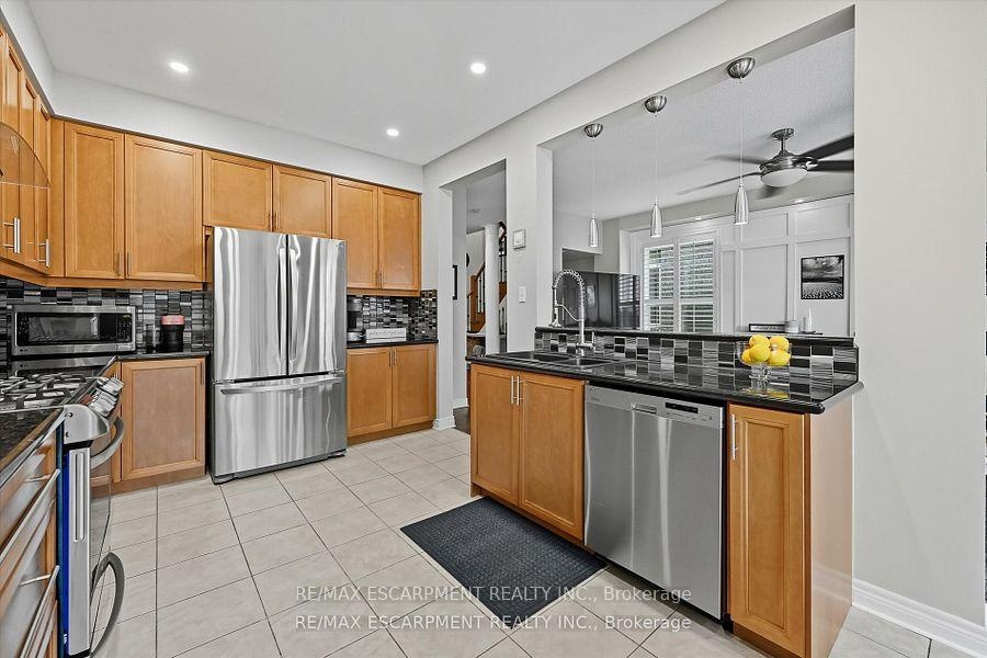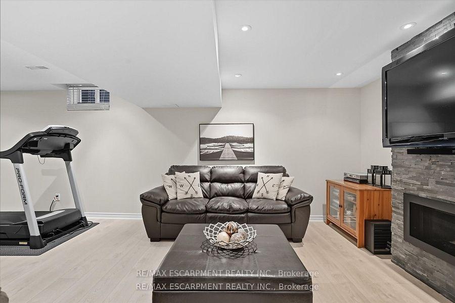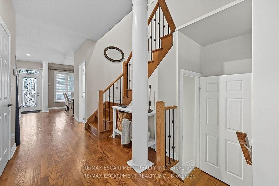 Welcome to this absolute turnkey 4 bedroom, 4 bathroom family home located in Burlingtons highly desirable Orchard community. Perfectly positioned backing onto a greenbelt corridor with a woodland walking trail, this bright spacious home offers the ideal blend of comfort, function, and style, with thoughtful upgrades throughout. The open concept main level features custom wood wall/entry bench, 9foot ceilings, warm toned hardwood floors, hardwood staircase w/black iron like spindles and lots of natural light. Fabulous eat-in kitchen boasts loads of cabinetry and counter space, pot lighting, modern fixtures, and LG stainless-steel appliances as well as a walk out to deck, private yard and fence to walking trail. Updated powder room with tile flooring, vanity, and wainscoting. Upstairs, youll find 4 really good size bedrooms and 2 bathrooms. You will love the super spacious primary suite with large walk-in closet and a newly renovated ensuite with quartz counter, custom glass shower (2025). Updates include three modern double-flush toilets. The finished basement expands your living space with a cozy gas fireplace and stone feature wall, plus a convenient powder room, offering a great retreat for family movie nights or entertaining guests. There is also lots of storage here. Outdoor living offers a 400 sq ft two-level cedar deck (2013), meticulously maintained, complete with a 10x12 covered gazebo with curtains and durable polyester roof ideal for relaxing or entertaining. Full roof done in (2022) with transferable warranties for peace of mind. Beyond your yard, enjoy direct access to a walking trail that links through the Orchard to Pathfinder Park and Orchard Community Park, a family-friendly network of paths, playfields, and the new leash-free area. Close to excellent schools, parks, shopping, restaurants, and commuter routes, this home is a rare find in one of Burlingtons most sought-after communities!