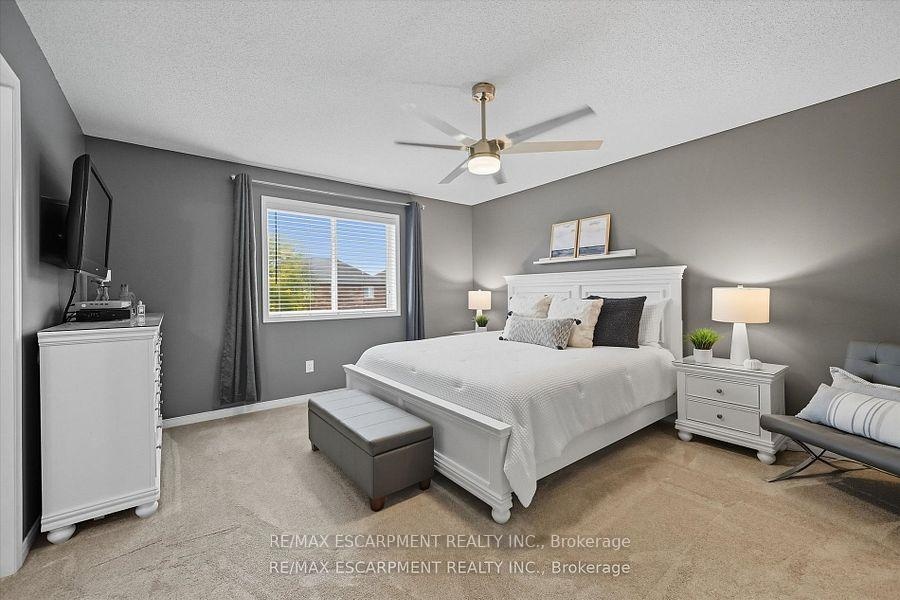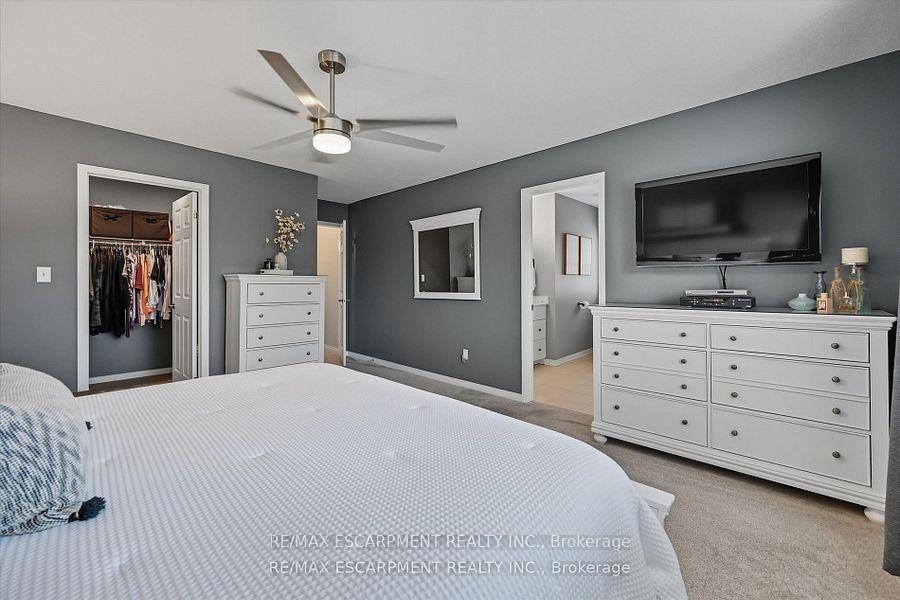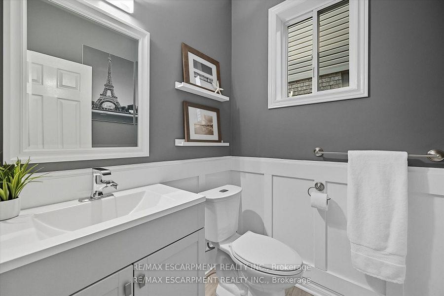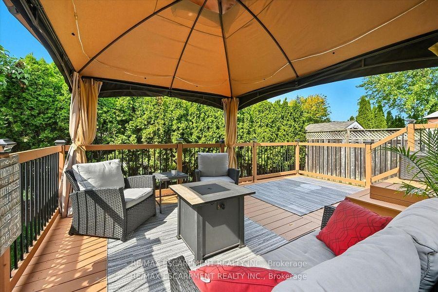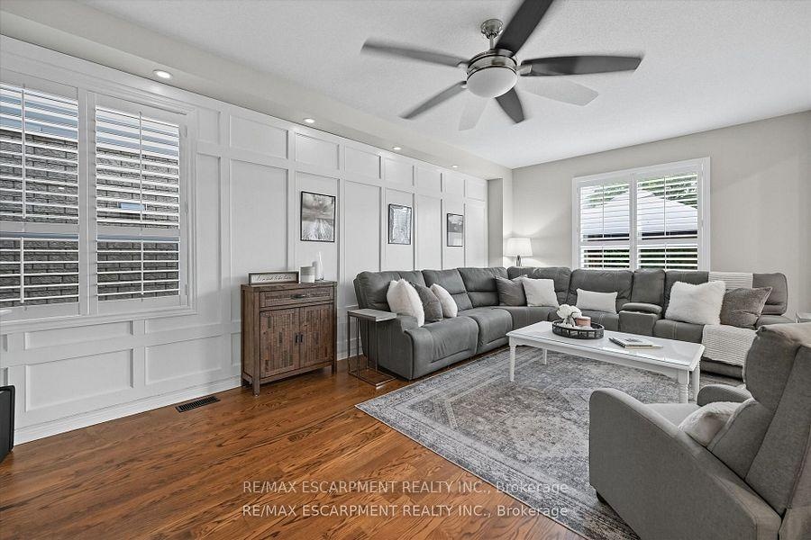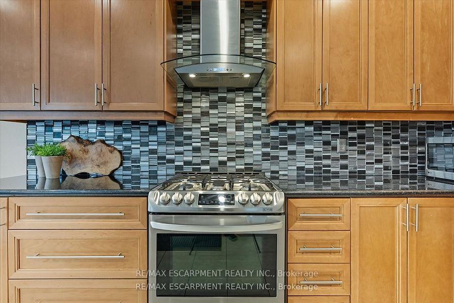 Welcome to this absolute turnkey 4 bedroom, 4 bathroom family home located in Burlingtons highly desirable Orchard community. Perfectly positioned backing onto a greenbelt corridor with a woodland walking trail, this bright spacious home offers the ideal blend of comfort, function, and style, with thoughtful upgrades throughout. The open concept main level features custom wood wall/entry bench, 9foot ceilings, warm toned hardwood floors, hardwood staircase w/black iron like spindles and lots of natural light. Fabulous eat-in kitchen boasts loads of cabinetry and counter space, pot lighting, modern fixtures, and LG stainless-steel appliances as well as a walk out to deck, private yard and fence to walking trail. Updated powder room with tile flooring, vanity, and wainscoting. Upstairs, youll find 4 really good size bedrooms and 2 bathrooms. You will love the super spacious primary suite with large walk-in closet and a newly renovated ensuite with quartz counter, custom glass shower (2025). Updates include three modern double-flush toilets. The finished basement expands your living space with a cozy gas fireplace and stone feature wall, plus a convenient powder room, offering a great retreat for family movie nights or entertaining guests. There is also lots of storage here. Outdoor living offers a 400 sq ft two-level cedar deck (2013), meticulously maintained, complete with a 10x12 covered gazebo with curtains and durable polyester roof ideal for relaxing or entertaining. Full roof done in (2022) with transferable warranties for peace of mind. Beyond your yard, enjoy direct access to a walking trail that links through the Orchard to Pathfinder Park and Orchard Community Park, a family-friendly network of paths, playfields, and the new leash-free area. Close to excellent schools, parks, shopping, restaurants, and commuter routes, this home is a rare find in one of Burlingtons most sought-after communities!