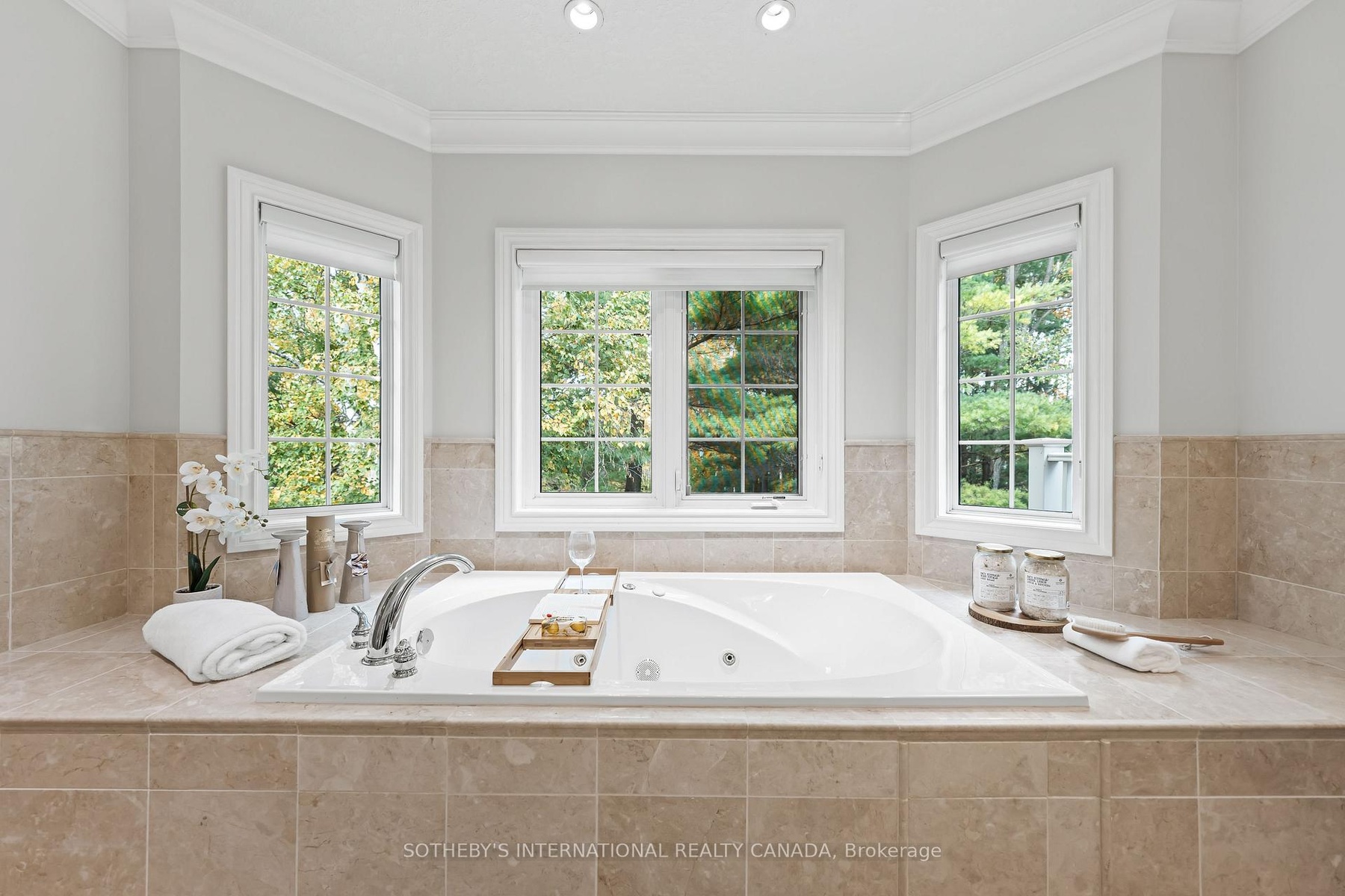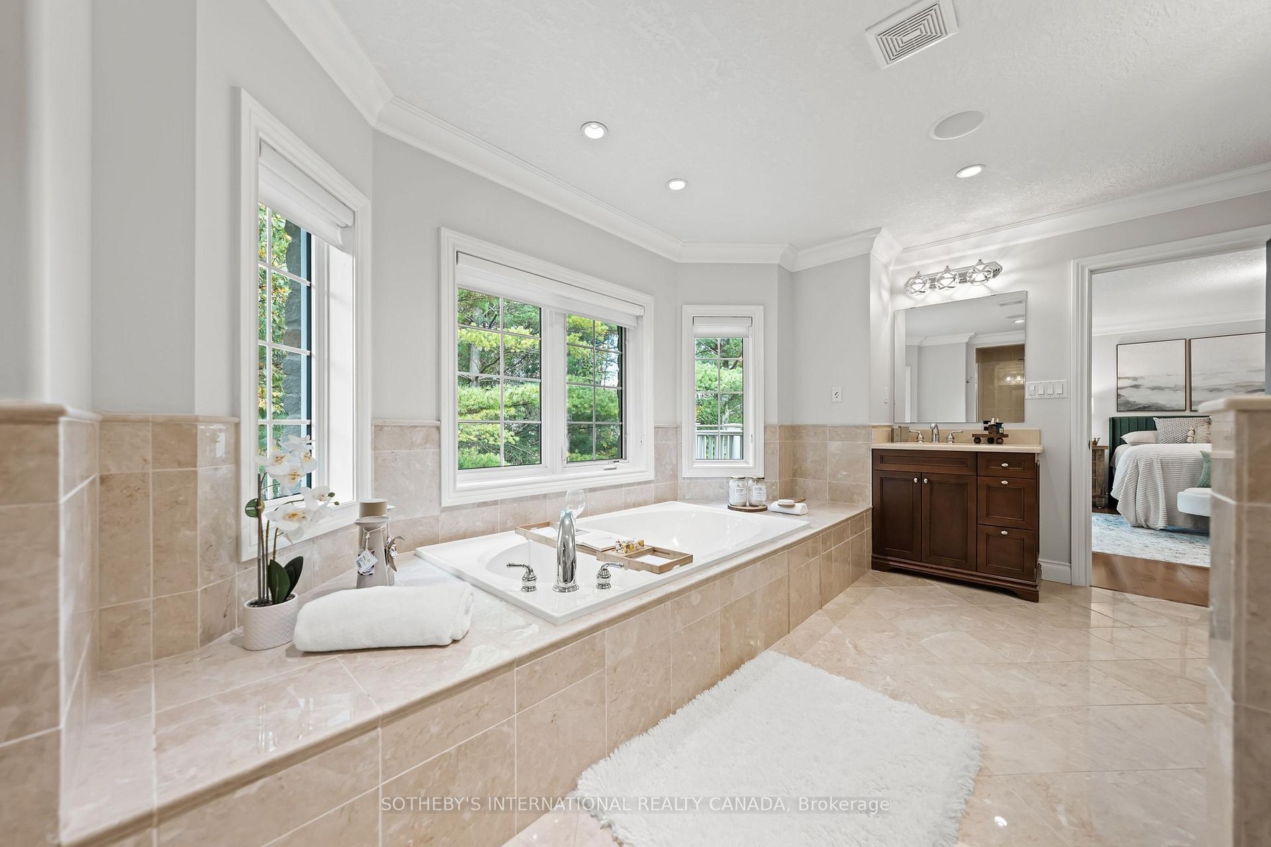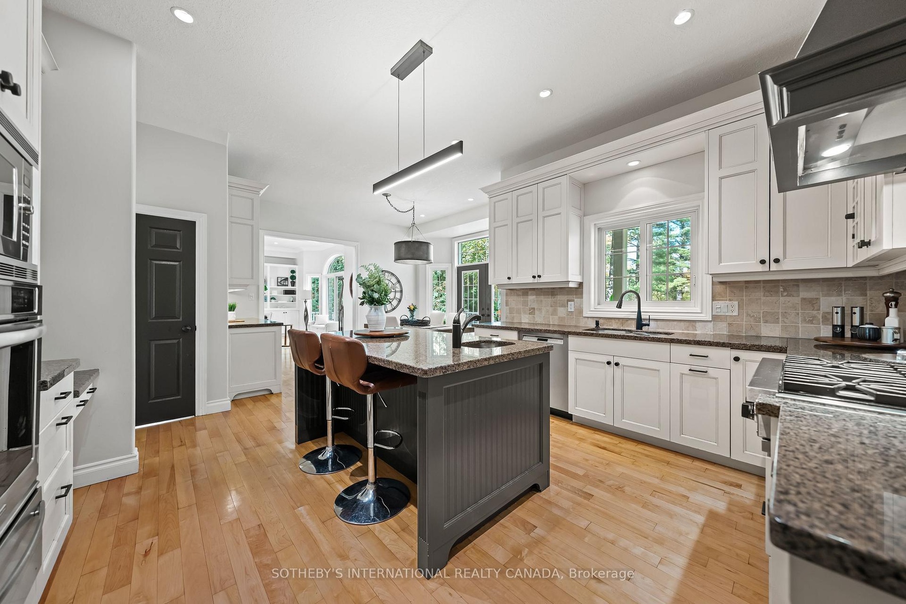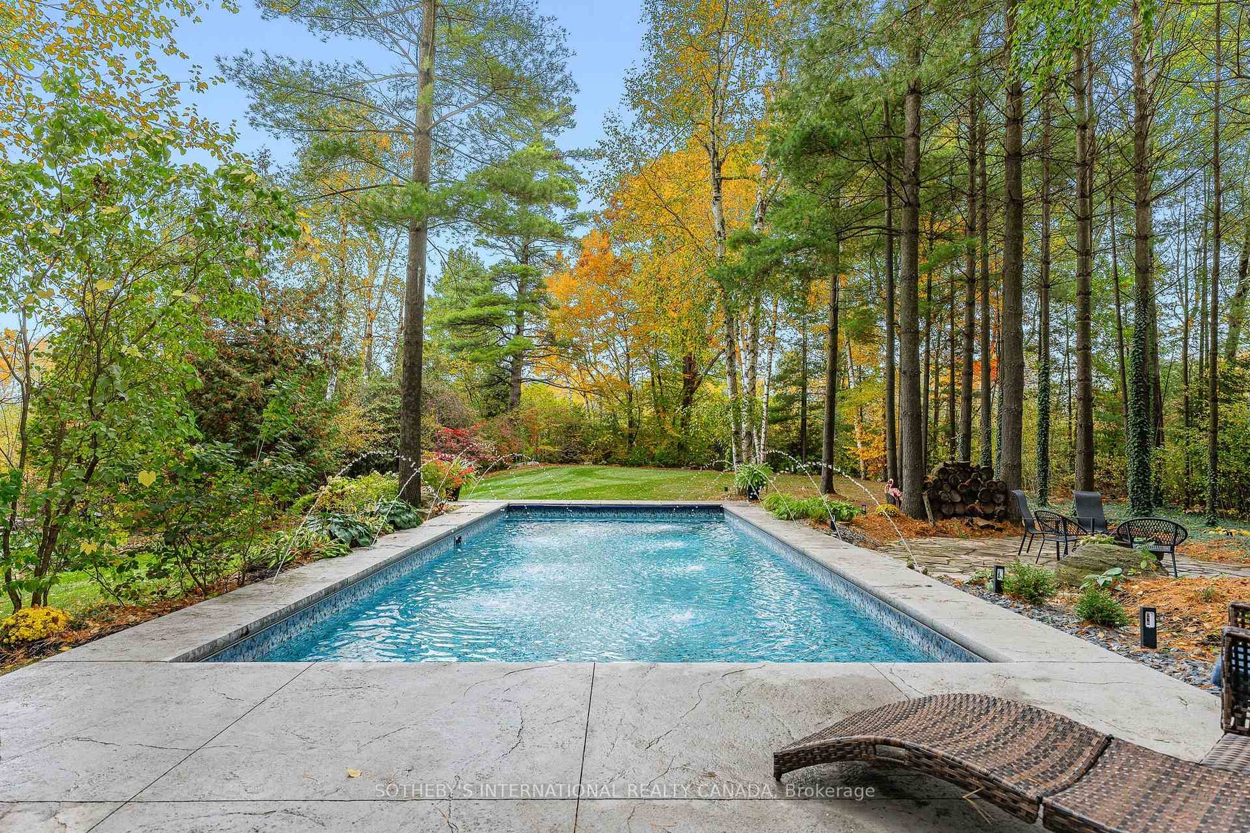 Welcome to 80 Cedarbrook Court, where secluded luxury meets modern convenience. Nestled in North Galts' most prestigious neighbourhood, this exquisite home offers the perfect balance of privacy and proximity. Set on a quiet court surrounded by mature, old-growth trees, the property feels like a private retreat while remaining just minutes from major amenities. This timeless residence offers nearly 5000 SF of total living space, 5 beds, 5 baths and resort-style amenities including an in-ground salt water pool. Inside, modern updates and refined finishes elevate every space, blending contemporary luxury with timeless comfort. From the soaring 10 fr ceilings to the chef inspired kitchen, this home features a functional floor plan with versatility- leaving this a one-of-a-kind property for those seeking space, serenity and style. This home features a beautiful primary bedroom with a luxurious 5+ piece spa-like ensuite, a large walk-in closet and your own balcony overlooking the rear yard. Find 3 additional bedrooms, and 2 stunning bathrooms to complete the upper floor. This home features not 1 but 3 en-suite bedrooms. The finished lower level features flexible living space- perfect for a recreation room, home theatre or an in-law/nanny suite opportunity allowing for a self-contained space with a walk-out. The fully fenced backyard is a true sanctuary-bordering protected green space ensuring complete peace and privacy. Thoughtfully landscaped grounds frame a stunning saltwater pool, tranquil pond, composite deck, and multiple spaces for outdoor living, offering a serene escape. Minutes from Highway 401, schools, parks, public transit, shopping and amenities. This is an exceptional opportunity to enjoy estate-style living with all the benefits of an exclusive, well-connected community.