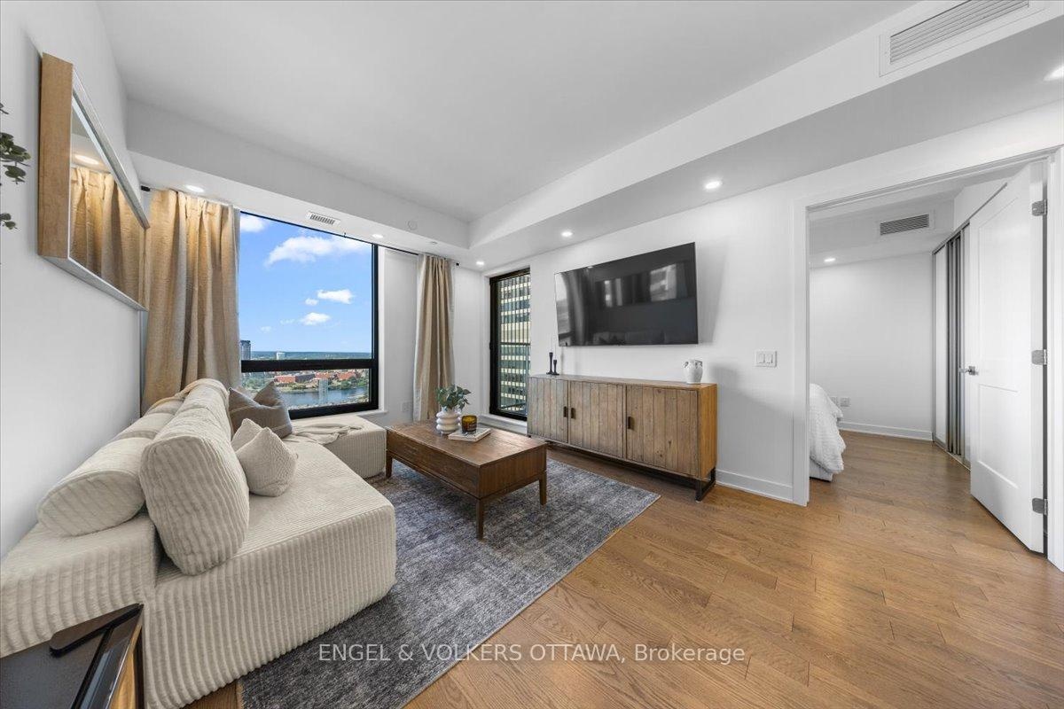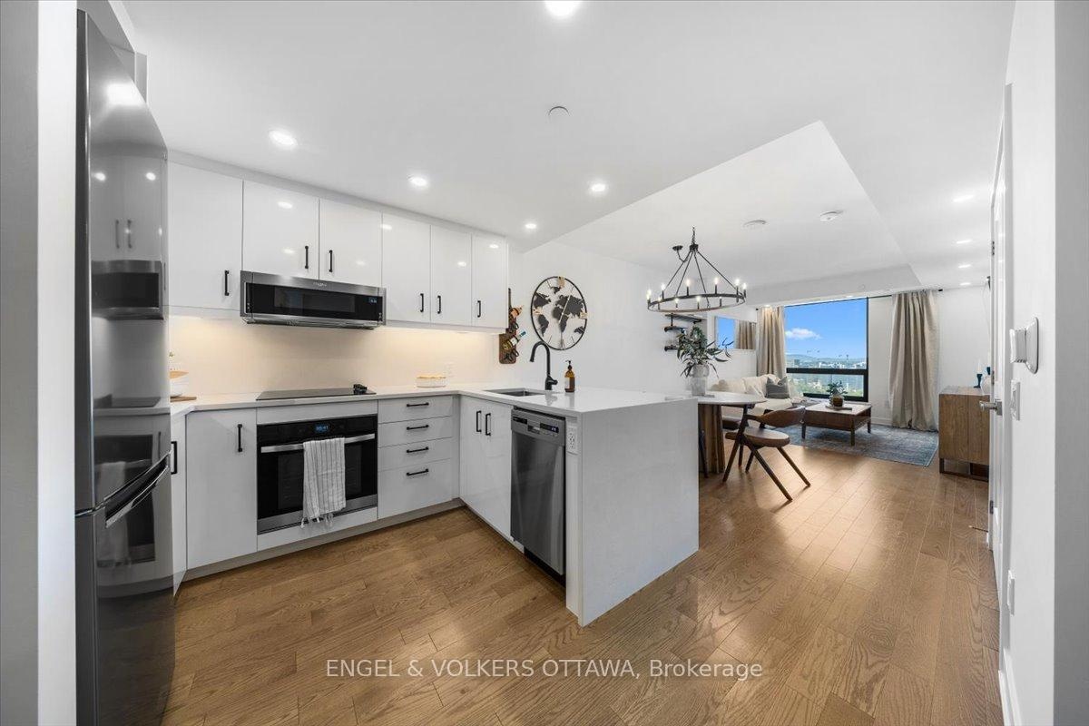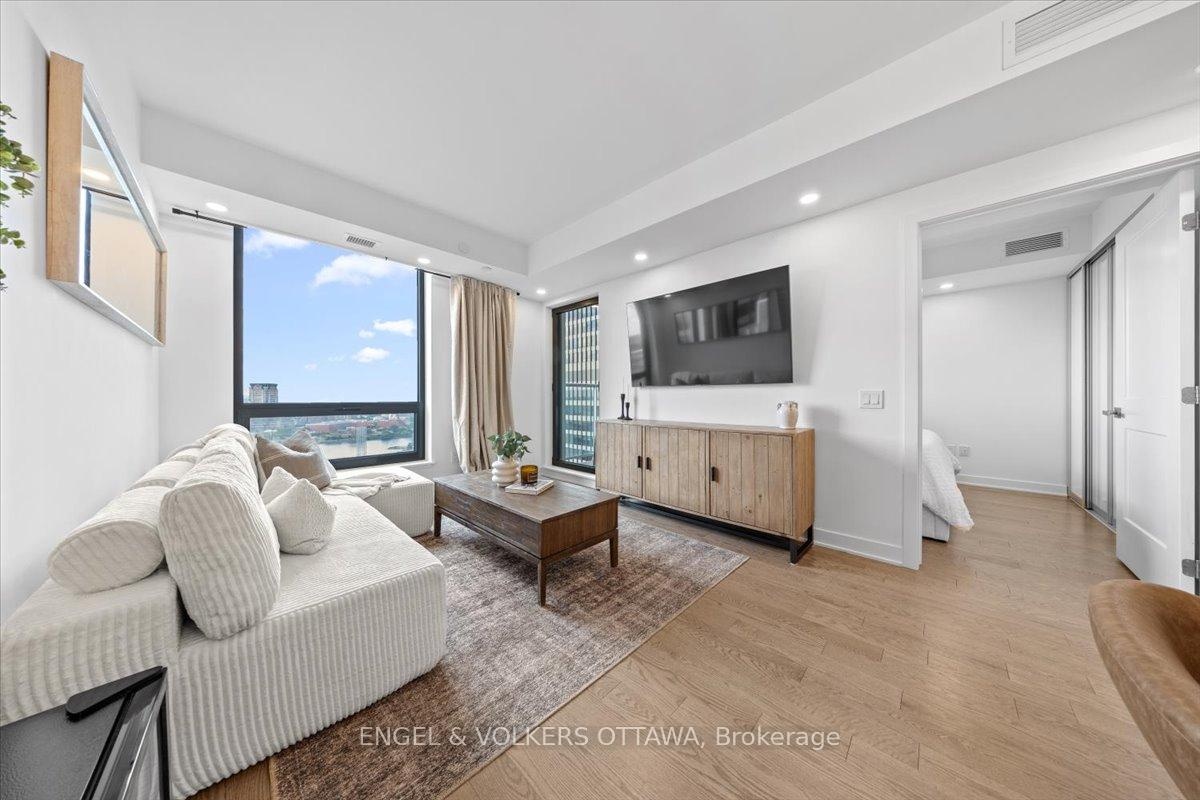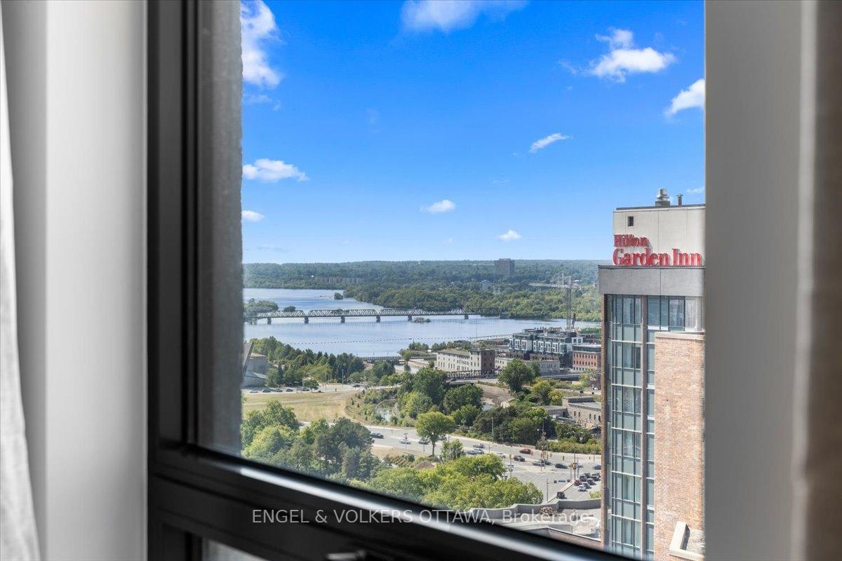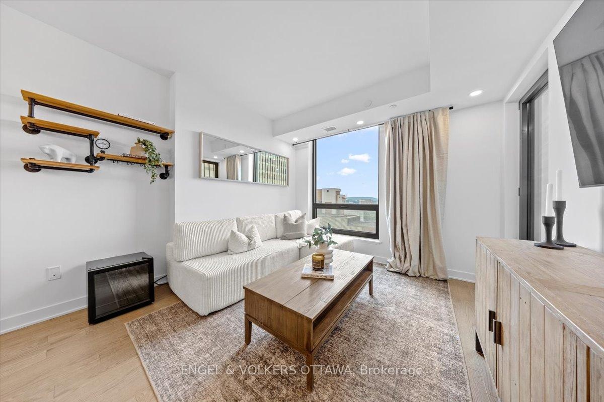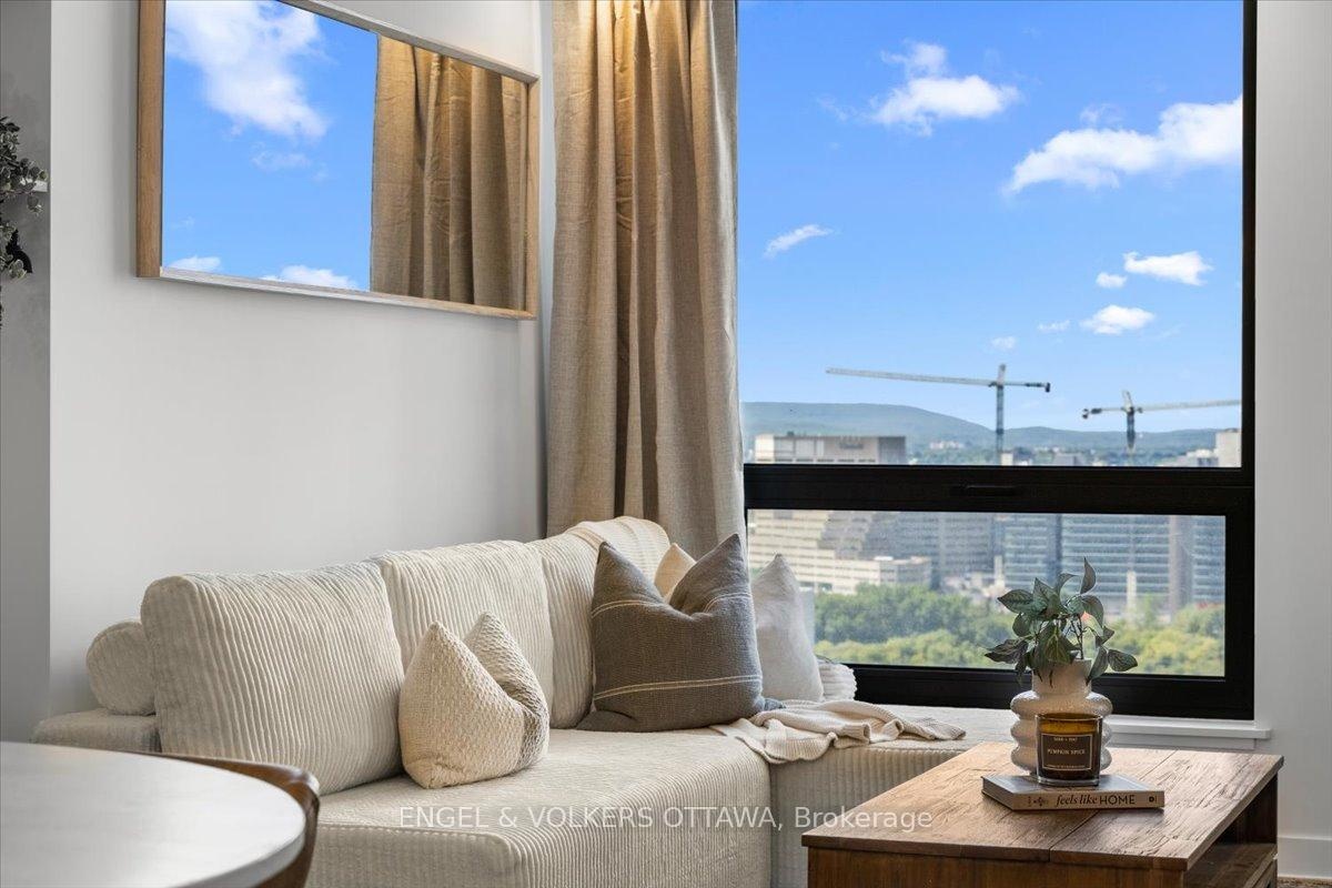 OFFERING 1 YEAR OF FREE CONDO FEES! METICULOUSLY maintained, owner occupied, 1 bedroom, 1 bathroom condo with approx. 665 sqft of functional living space that INCLUDES ALL FURNITURE! All you have to do is unpack and enjoy! With views of the Ottawa River from your living room couch and gorgeous sunsets in the summer you'll be excited to come home everyday. Over $20,000 in luxury upgrades including custom built-in closet storage, black hardware, pot lights, modern light fixtures, quartz countertops in the kitchen and bathroom, LED fog proof bathroom mirror, upgraded tile, and more. All furniture included with some luxury pieces from Dala Decor. In-unit laundry. A private covered balcony with views of the Ottawa River! Luxury amenities throughout the building including a fully equipped Gym with a squat rack, Indoor heated pool, Meeting room, Lounge, Theatre Room, Outdoor Terrace with BBQs and 27/4 Concierge + Security. Incredible location and investment opportunity with millions being invested across the central core of Ottawa.This is Ottawa's ONLY residence located above the LRT line. Not only would you live just above Lyon Station and a brand new Food Basics, but you are also just minutes to Parliament Hill, Tech Dog Park, Sparks Street, the upcoming Lebreton Flats Ottawa Senators Arena, Elgin Street, Rideau Centre, the future History Venue (coming in 2026), festivals, nightlife and so much more. 1 Underground Parking & 1 Storage Locker Included! OPEN HOUSE SATURDAY OCTOBER 25TH FROM 11AM - 1PM!