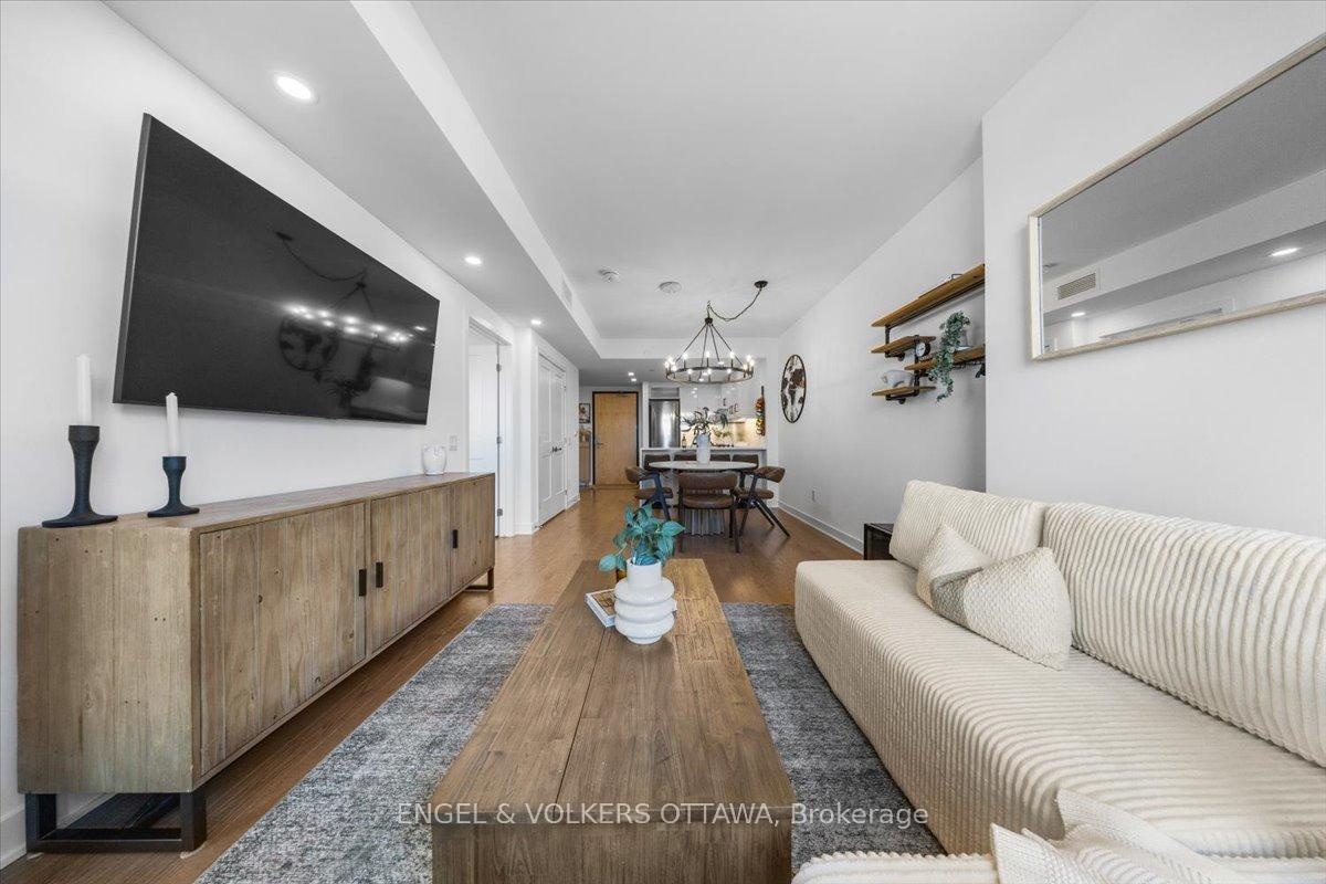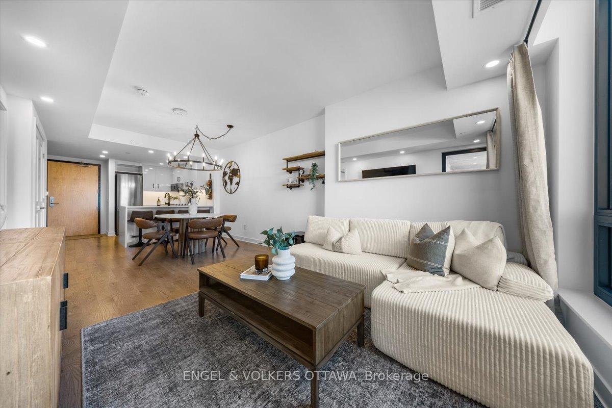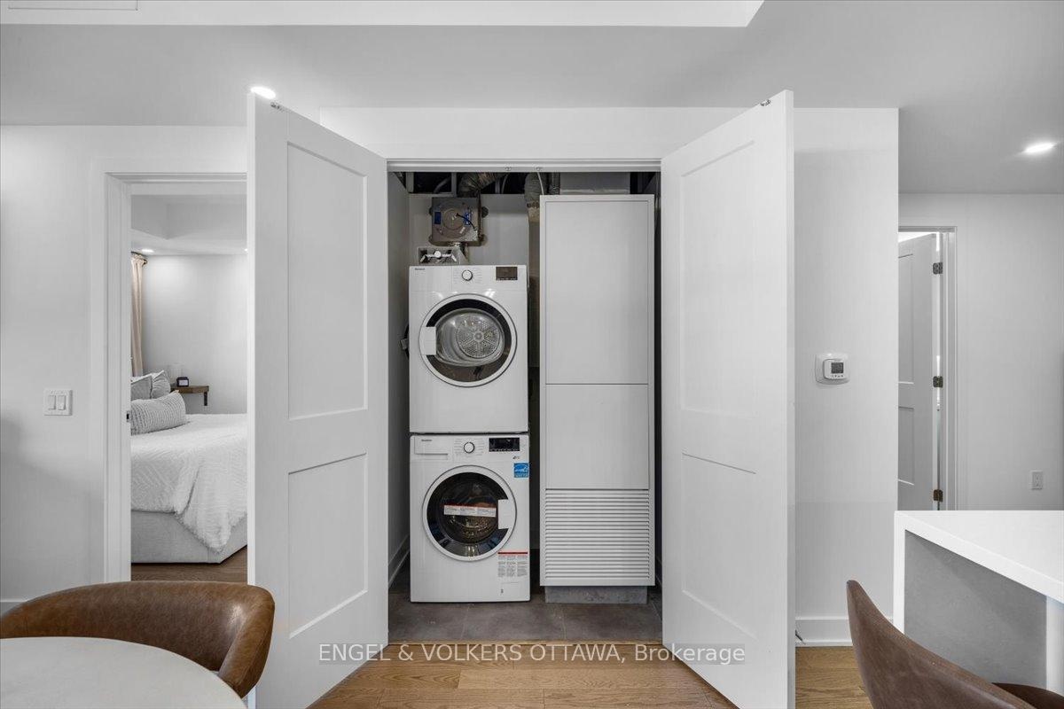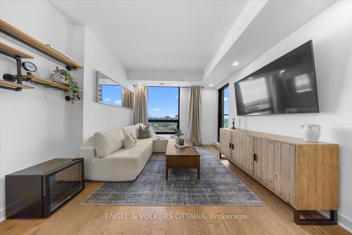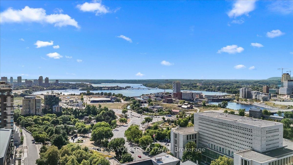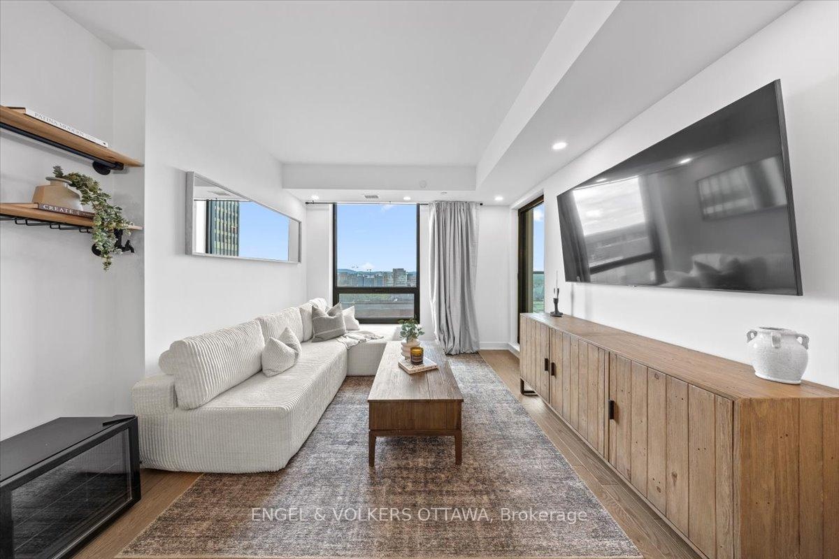 OFFERING 1 YEAR OF FREE CONDO FEES! METICULOUSLY maintained, owner occupied, 1 bedroom, 1 bathroom condo with approx. 665 sqft of functional living space that INCLUDES ALL FURNITURE! All you have to do is unpack and enjoy! With views of the Ottawa River from your living room couch and gorgeous sunsets in the summer you'll be excited to come home everyday. Over $20,000 in luxury upgrades including custom built-in closet storage, black hardware, pot lights, modern light fixtures, quartz countertops in the kitchen and bathroom, LED fog proof bathroom mirror, upgraded tile, and more. All furniture included with some luxury pieces from Dala Decor. In-unit laundry. A private covered balcony with views of the Ottawa River! Luxury amenities throughout the building including a fully equipped Gym with a squat rack, Indoor heated pool, Meeting room, Lounge, Theatre Room, Outdoor Terrace with BBQs and 27/4 Concierge + Security. Incredible location and investment opportunity with millions being invested across the central core of Ottawa.This is Ottawa's ONLY residence located above the LRT line. Not only would you live just above Lyon Station and a brand new Food Basics, but you are also just minutes to Parliament Hill, Tech Dog Park, Sparks Street, the upcoming Lebreton Flats Ottawa Senators Arena, Elgin Street, Rideau Centre, the future History Venue (coming in 2026), festivals, nightlife and so much more. 1 Underground Parking & 1 Storage Locker Included! OPEN HOUSE SATURDAY OCTOBER 25TH FROM 11AM - 1PM!