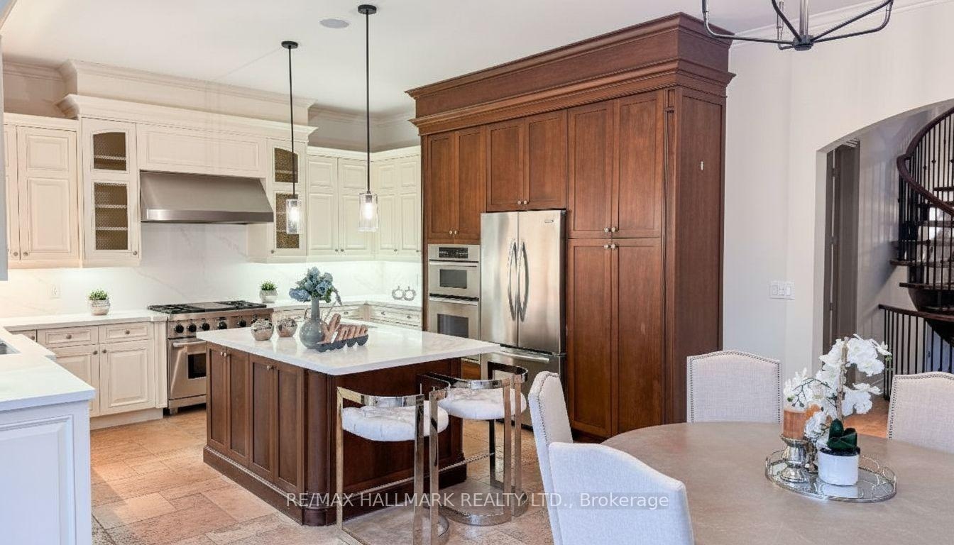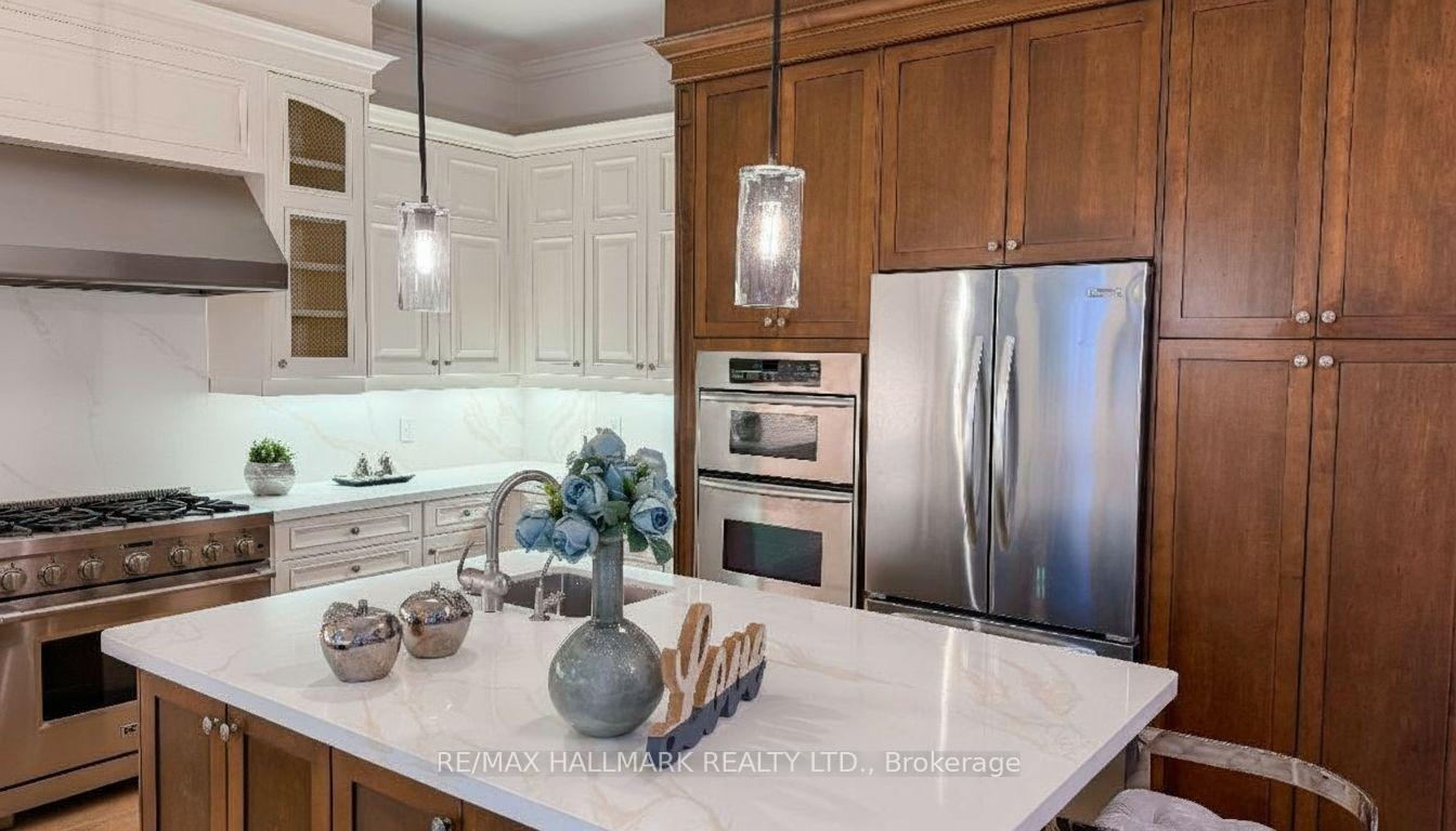 Explore This Magnificent Home Set On A Premium Lot Backing Onto A Serene Conservation Area With Very Own Private Backyard Oasis Featuring An Inground Pool, Outdoor Kitchen & Oversized 3 Car Garage. Step inside to discover a thoughtfully designed layout with soaring ceilings, expansive windows, and an elegant circular staircase that sets a sophisticated tone. The chefs kitchen is a true centerpiece, boasting a large centre island with pendant lights, built-in appliances, ample cabinetry, and brand new quartz countertops & backsplash. Enjoy seamless indoor-outdoor living with a convenient walkout from the kitchen directly to the terrace overlooking the huge backyard designed for both relaxation and entertaining, featuring a large inground pool, a custom stone outdoor kitchen with built-in grill and wood-fired oven, wet bar, and a spacious terrace surrounded by mature trees and breathtaking natural scenery. Upstairs, the expansive primary retreat features a large walk-in closet with custom organizers and a spa-like 5-piece ensuite with a soaking tub and frameless glass shower. Four additional bedrooms offer comfort and flexibility for growing families. The finished lower level expands your living space with high ceilings, pot lights, large windows, and a walkout to the backyard. It includes a second full kitchen, wet bar, full-size fridge, recreation room with a second fireplace. Set on a quiet street in the sought-after Oak Ridges community, this gem is close to the serene Lake Wilcox Park & Community Centre,all amenities,public&private schools,golf courses,Hwy400,GO Station & more. Includes: Built-in stainless steel appliances: 2 fridges, cooktop, oven, dishwasher & bar fridge. Outdoor grill & fireplace, hot tub, pool liner & equipment. Central vac, alarm system, CAC & furnace.