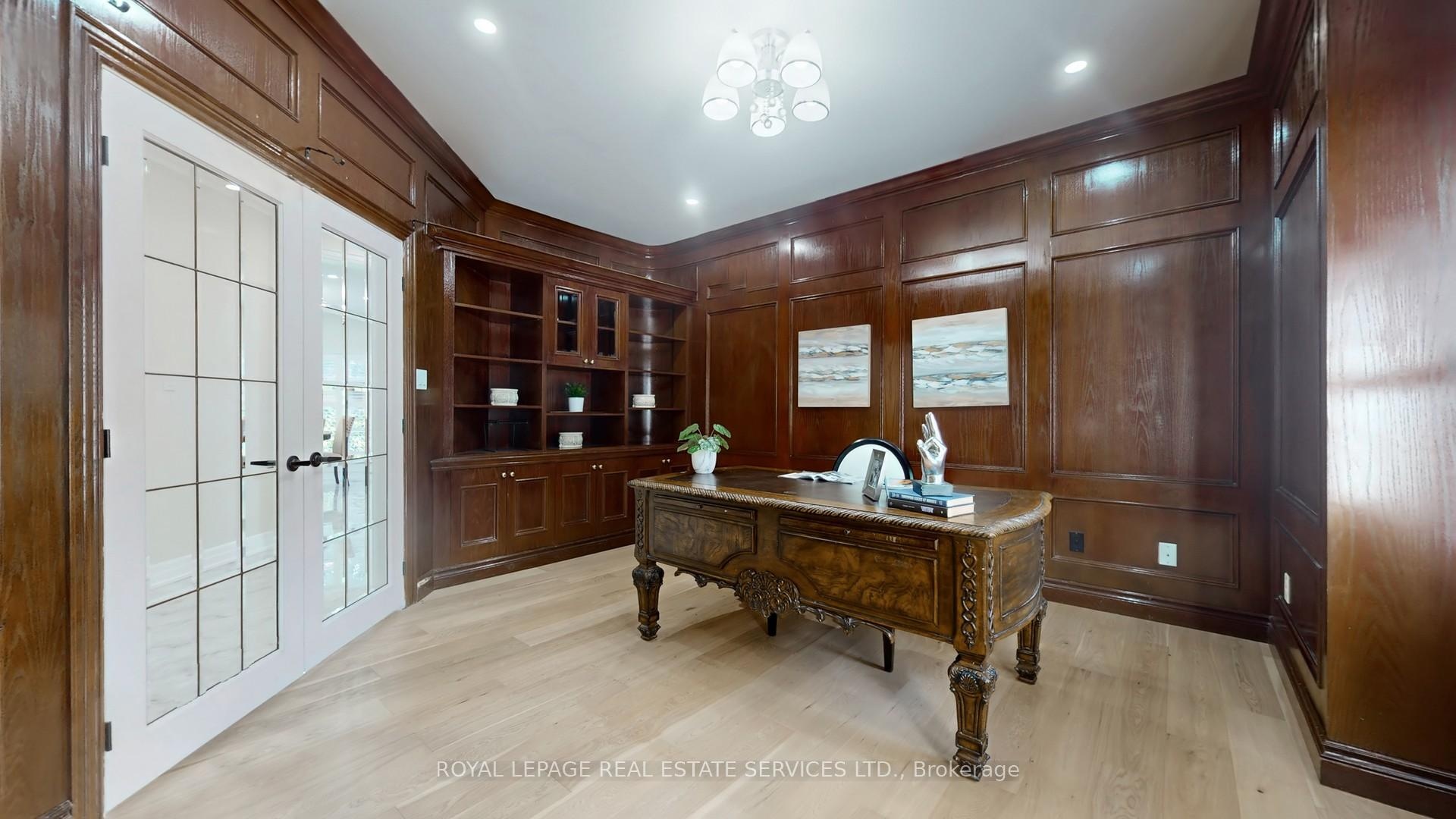 Magnificent Mississauga Estate! Nestled in one of GTA most prestigious Streets, near mega mansion homes! This Mansion offers over 1/2 Acre lot at 117' x 277' creating a serene, Muskoka-Like Setting, features Quality Custom-Built Boasts outstanding size at 12,321 sqft of Living Space with 8900 sqft above grade, a Resort-Style Indoor Swimming Pool! Deep front setback ensures privacy, Exceptional Curb Appeal complemented by the Elegant Architecture, beautiful Landscaped garden, Mature trees, Iron fenced with 2 auto double-door Gates. From glass doors enclosed foyer, you are Invited by a soaring 2-story elegant foyer with solid brass art deco railing spiral stairs. Spectacular Family room features Cathedral-Like open & grand atmosphere. Impressive Living room & Dining rooms showcase 10.5' &10' coffered ceilings, with gorgeous 2-side fireplace between. The State-of-Art chef-inspired gourmet Kitchen features Luxurious elements & huge Custom island; Very spacious breakfast area w/o to sundeck. The office w/wood bookshelves & wall panels. 2 stairs leading to 2nd level, stunning overlooks the family room. Primary Bedroom features 2-side fireplace, new luxury 5pc ensuite, and large windows overlook back garden. Large 2nd bedroom has its own ensuite, A private stairs leading to the huge & tranquil 5th bedroom on 3rd floor offers its own Hvac system. Entertaining basement boasts 9' ceiling, self-contained unit, Sauna, 2 bathrooms, Rec room with Wet Bar and walks up to the inspired Indoor Pool with Skylights, perfect for Year-Round family activities! Interlocking front yard w/Circular Driveway, 3 walkouts leading to East facing back garden, perennial landscaped gardens provide outdoor entertaining and relaxing in tranquility! It located minutes from top-rated schools, shopping centers, Mississauga Golf & Country Club, UTM, Erindale Park, Go Station, easy QEW access. This Estate offers a First-Class Living experience with a blend of Peaceful Retreat & Enriched Home Comforts!!