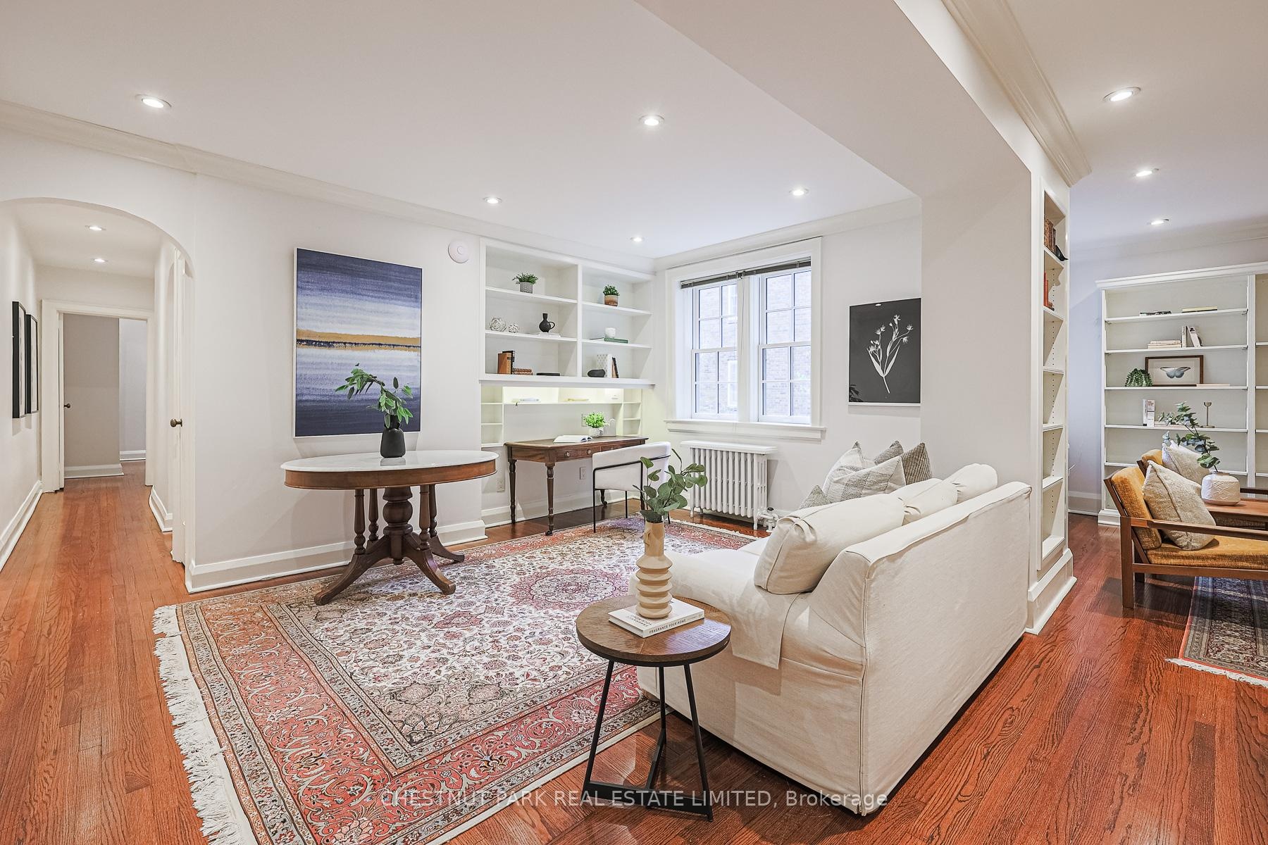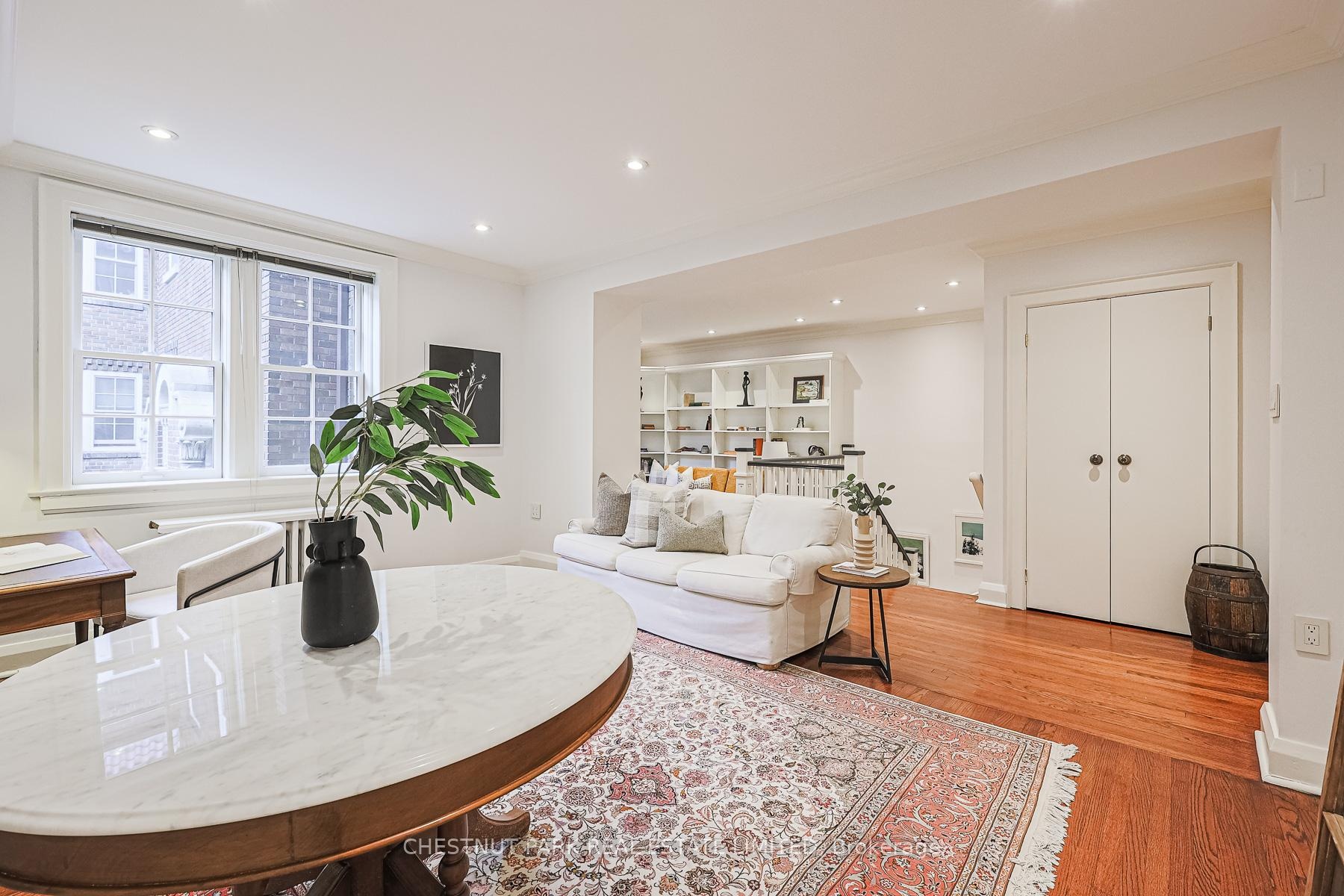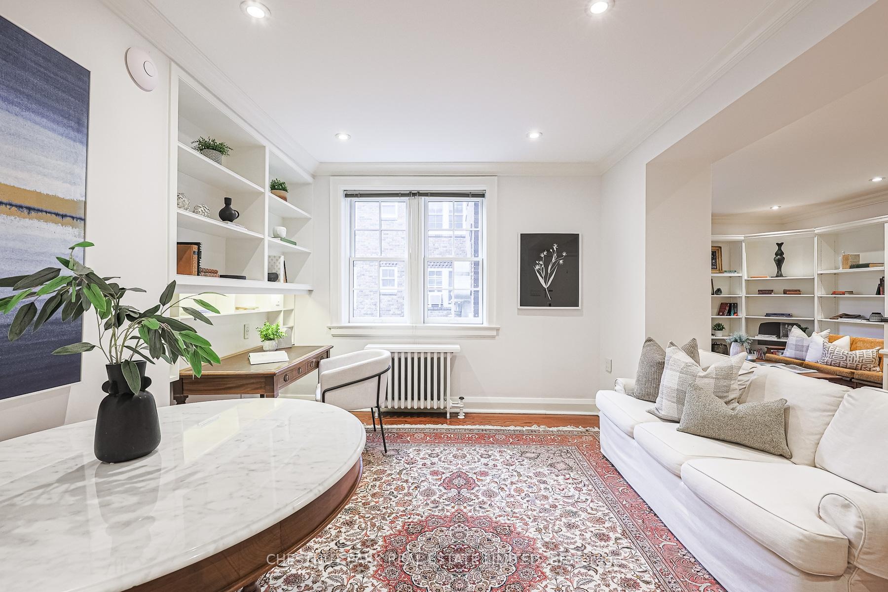 Timeless elegance meets exceptional value in this incredibly rare 4-bedroom, 2-storey condo with parking. Set within 480 Oriole Parkway - an Art Deco landmark building tucked into the heart of Midtown Toronto - this unique ground-level condo blends the spaciousness of a townhouse with the charm of a boutique residence, offering over 2,000 sq ft of beautifully appointed living space. With two units thoughtfully united by a beautifully crafted interior staircase, you'll discover generous principal rooms, gleaming hardwood floors, pot lights throughout, and updated windows (replaced in 2017). The functional layout includes an inviting living room, dining area, kitchen, four spacious bedrooms, and two bathrooms - a design ideal for families, guests, and working from home. Recent upgrades include additional custom cabinetry in the kitchen, a built-in microwave, and, for extra convenience, rare in-suite laundry. Located in a quiet, well-managed building, this home falls within coveted catchment areas for top public and private schools that are just minutes away. Perfectly positioned near many fabulous local amenities - including Eglinton Park, North Toronto Arena and Community Centre, as well as the shops, dining, and vibrant lifestyle of the Yonge & Eglinton area - the location offers something for everyone: active families, professional couples, and individuals alike. With TTC subway and bus lines just steps away, along with the soon-to-arrive Eglinton Crosstown LRT, getting around the city is easy. Another advantage of this unit is the rare inclusion of surface-level garage parking, a rental space that is available for transfer upon closing, making everyday life just a little bit simpler. The unit also includes two lockers. So whether you're upsizing, downsizing, or simply seeking that elusive blend of character, space, and location, this remarkable condo delivers exceptional value in one of Midtown Toronto's most established and sought-after communities.