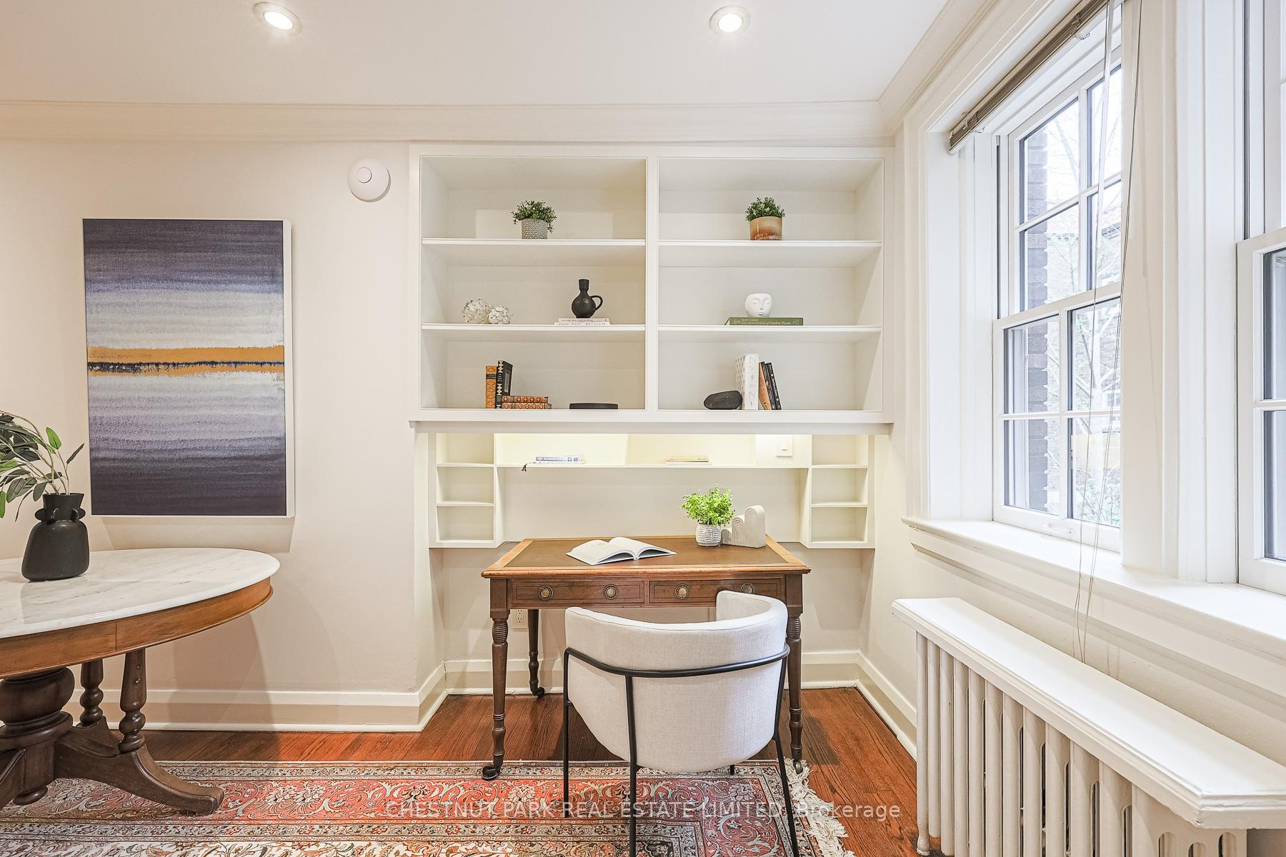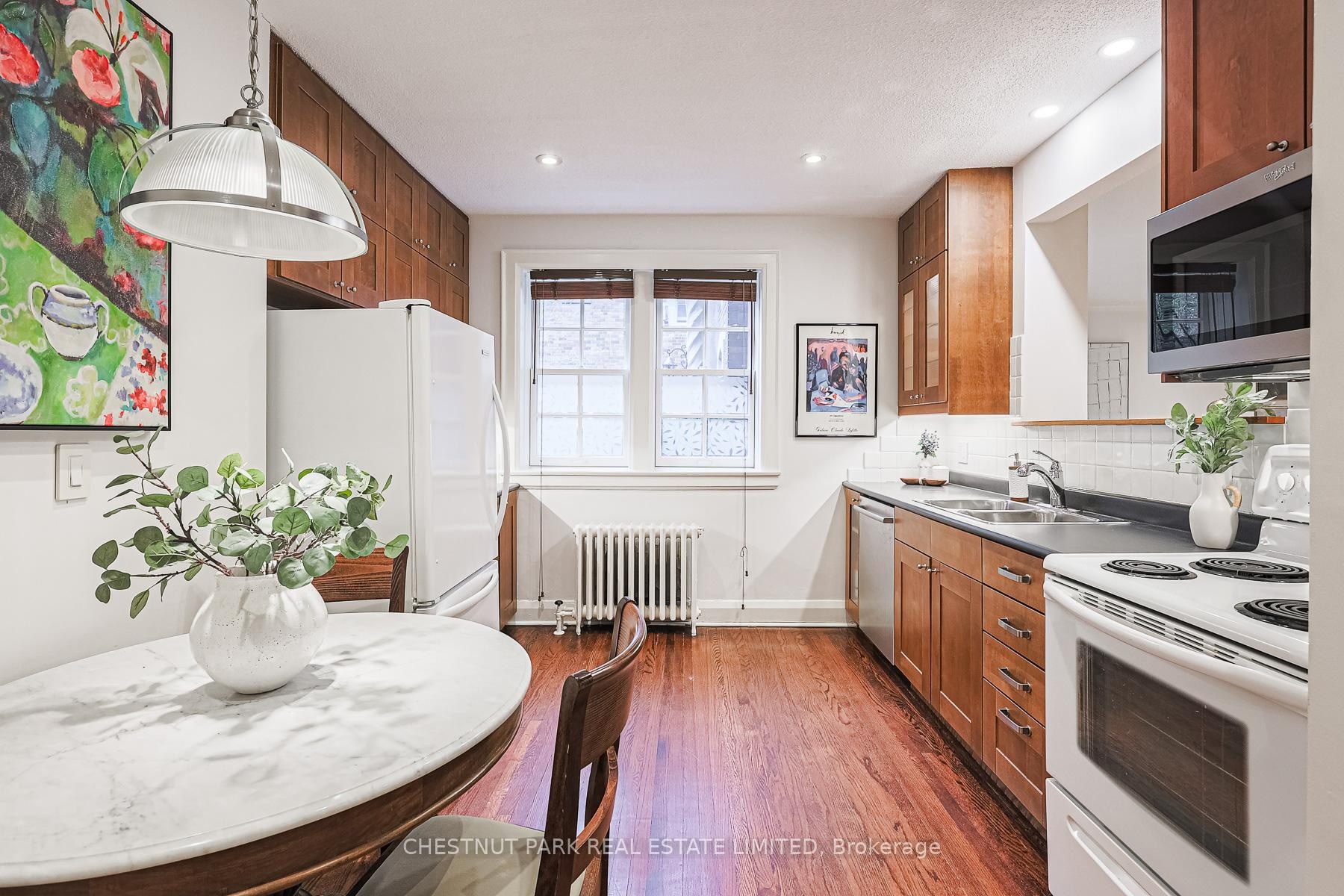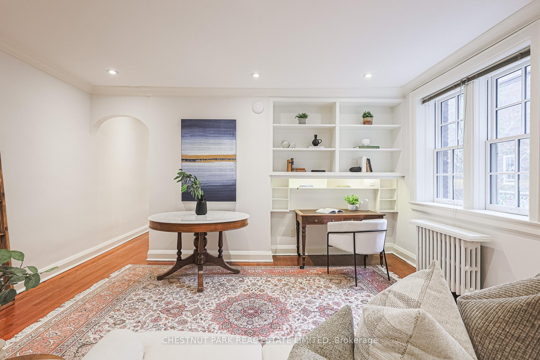 Timeless elegance meets exceptional value in this incredibly rare 4-bedroom, 2-storey condo with parking. Set within 480 Oriole Parkway - an Art Deco landmark building tucked into the heart of Midtown Toronto - this unique ground-level condo blends the spaciousness of a townhouse with the charm of a boutique residence, offering over 2,000 sq ft of beautifully appointed living space. With two units thoughtfully united by a beautifully crafted interior staircase, you'll discover generous principal rooms, gleaming hardwood floors, pot lights throughout, and updated windows (replaced in 2017). The functional layout includes an inviting living room, dining area, kitchen, four spacious bedrooms, and two bathrooms - a design ideal for families, guests, and working from home. Recent upgrades include additional custom cabinetry in the kitchen, a built-in microwave, and, for extra convenience, rare in-suite laundry. Located in a quiet, well-managed building, this home falls within coveted catchment areas for top public and private schools that are just minutes away. Perfectly positioned near many fabulous local amenities - including Eglinton Park, North Toronto Arena and Community Centre, as well as the shops, dining, and vibrant lifestyle of the Yonge & Eglinton area - the location offers something for everyone: active families, professional couples, and individuals alike. With TTC subway and bus lines just steps away, along with the soon-to-arrive Eglinton Crosstown LRT, getting around the city is easy. Another advantage of this unit is the rare inclusion of surface-level garage parking, a rental space that is available for transfer upon closing, making everyday life just a little bit simpler. The unit also includes two lockers. So whether you're upsizing, downsizing, or simply seeking that elusive blend of character, space, and location, this remarkable condo delivers exceptional value in one of Midtown Toronto's most established and sought-after communities.