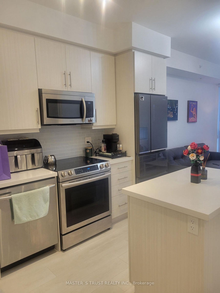 A spacious and comfortable one bedroom suite, kitchen, full bathroom, plus one premium parking, in the heart of Richmond Hills community at Yonge & Hwy 7. This bright and functional one Bedroom suite has a private balcony, and a modern open-concept layout. The sleek kitchen features stainless steel appliances, quartz countertops, under-mount lighting, and a stylish glass tile backsplash. With 9' smooth ceilings, wide-plank laminate flooring, and floor-to-ceiling windows, the space feels open and contemporary. Residents enjoy luxury building amenities including 24-hour concierge, indoor pool, fitness centre, party/meeting rooms, and rooftop deck with panoramic views. Steps from GO bus/train station, Viva transit, shopping, dining, schools, and parks, this home offers an unbeatable blend of lifestyle and convenience.