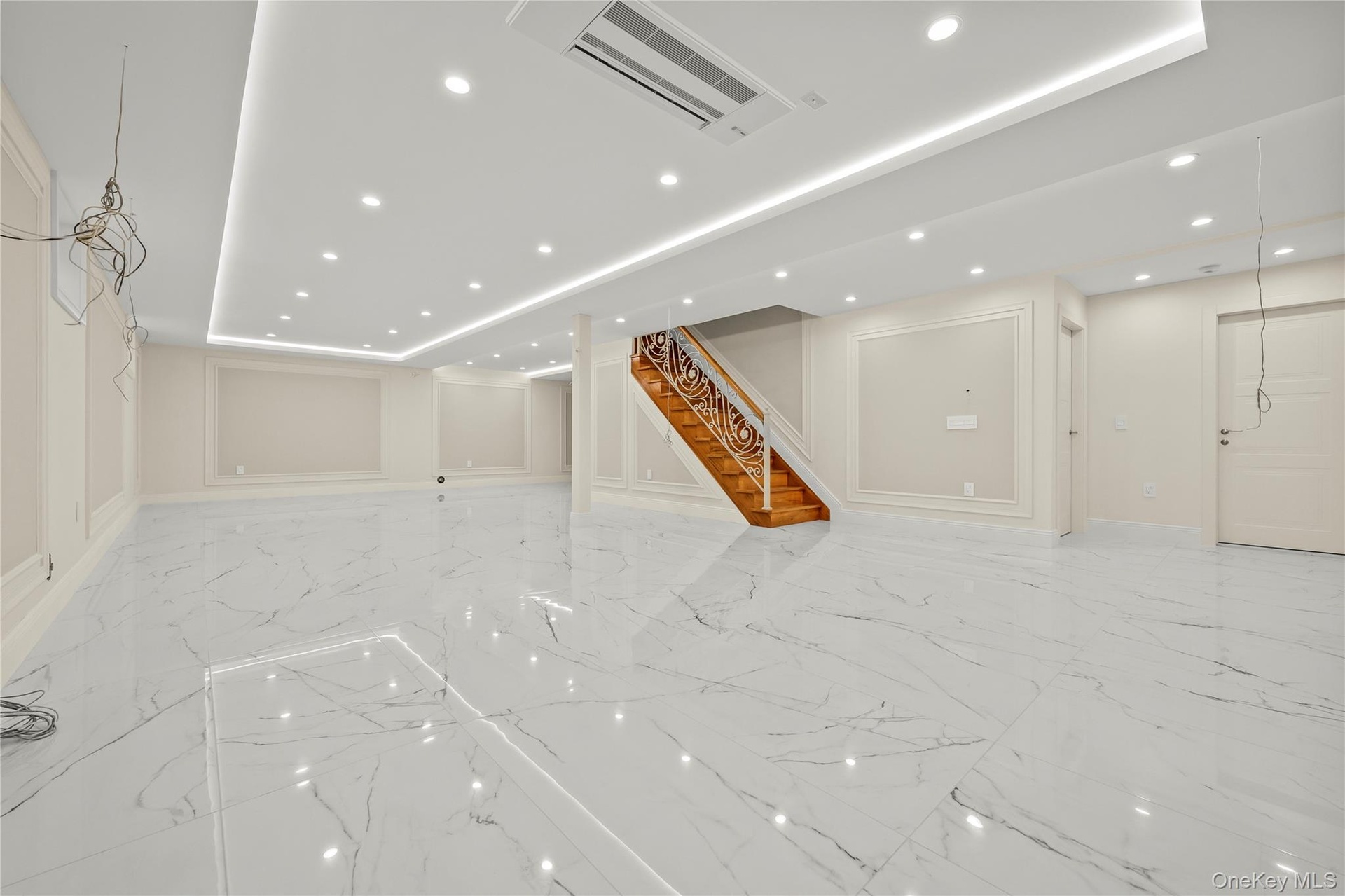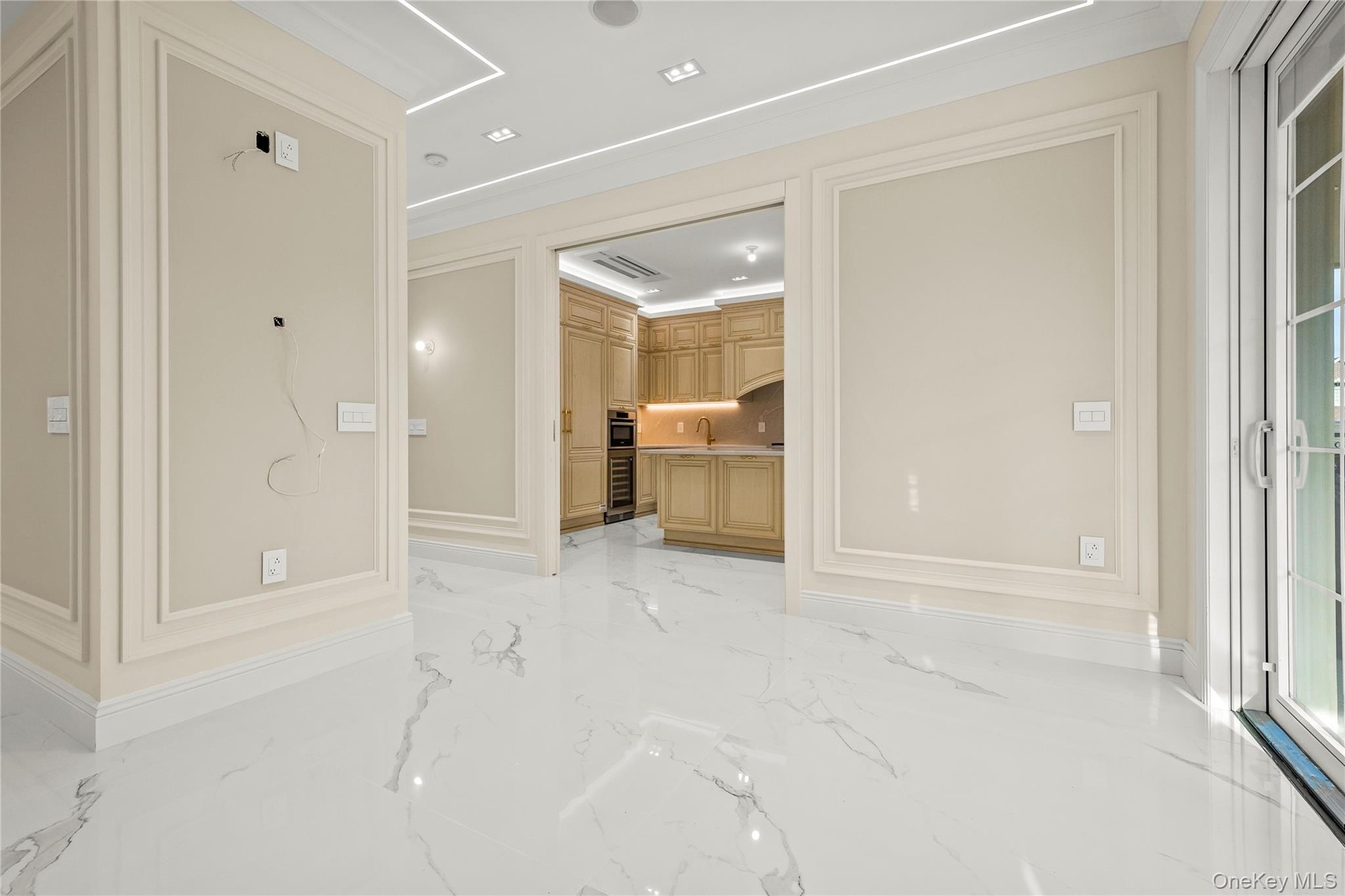 - Unfurnished room featuring light marble finish flooring and recessed lighting