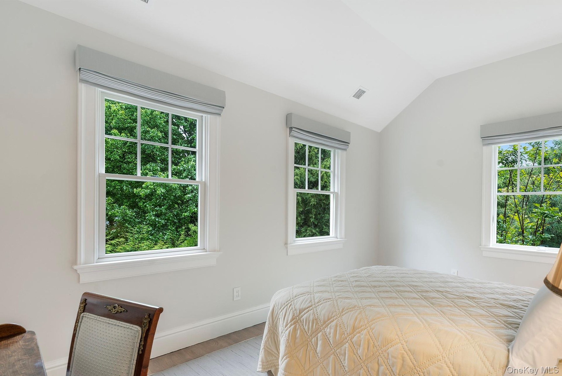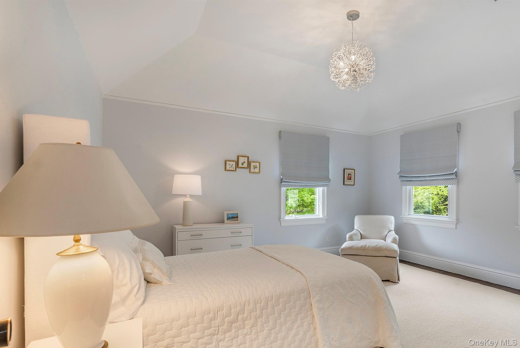 - First Floor En Suite Bedroom with high vaulted ceiling, ensuite bathroom, and ornamental molding