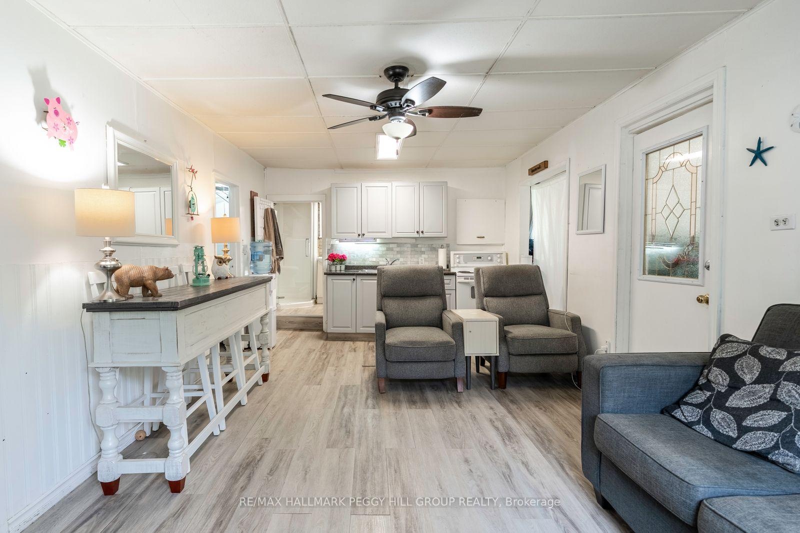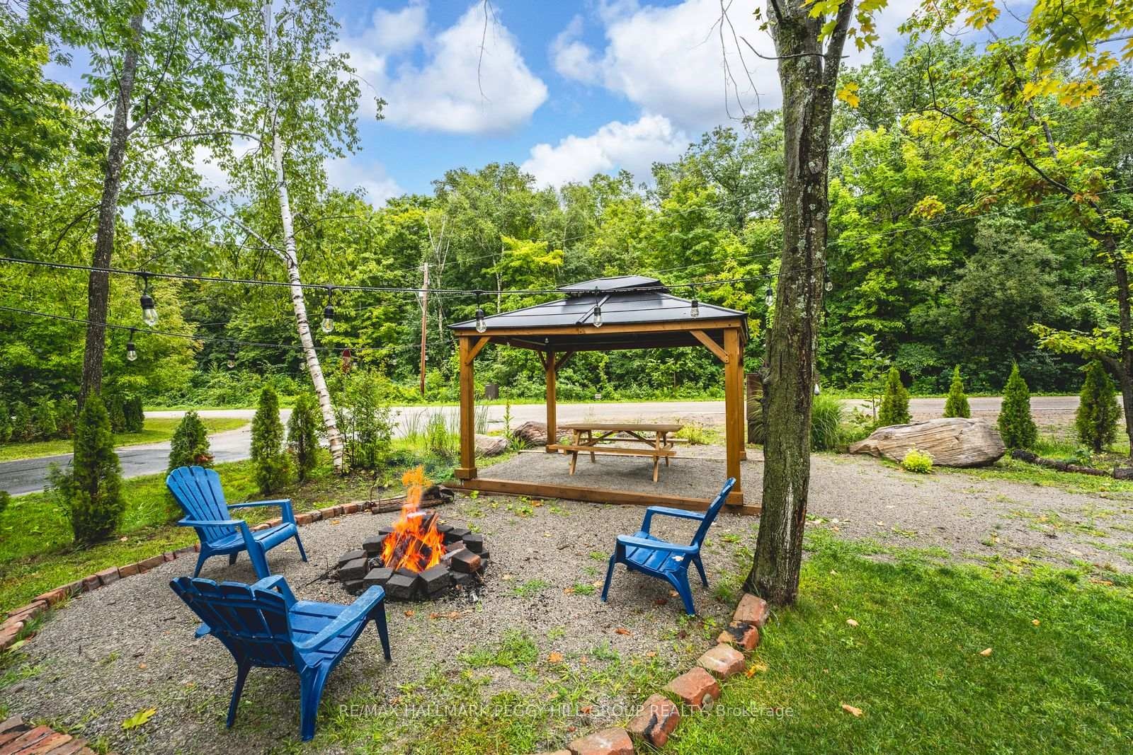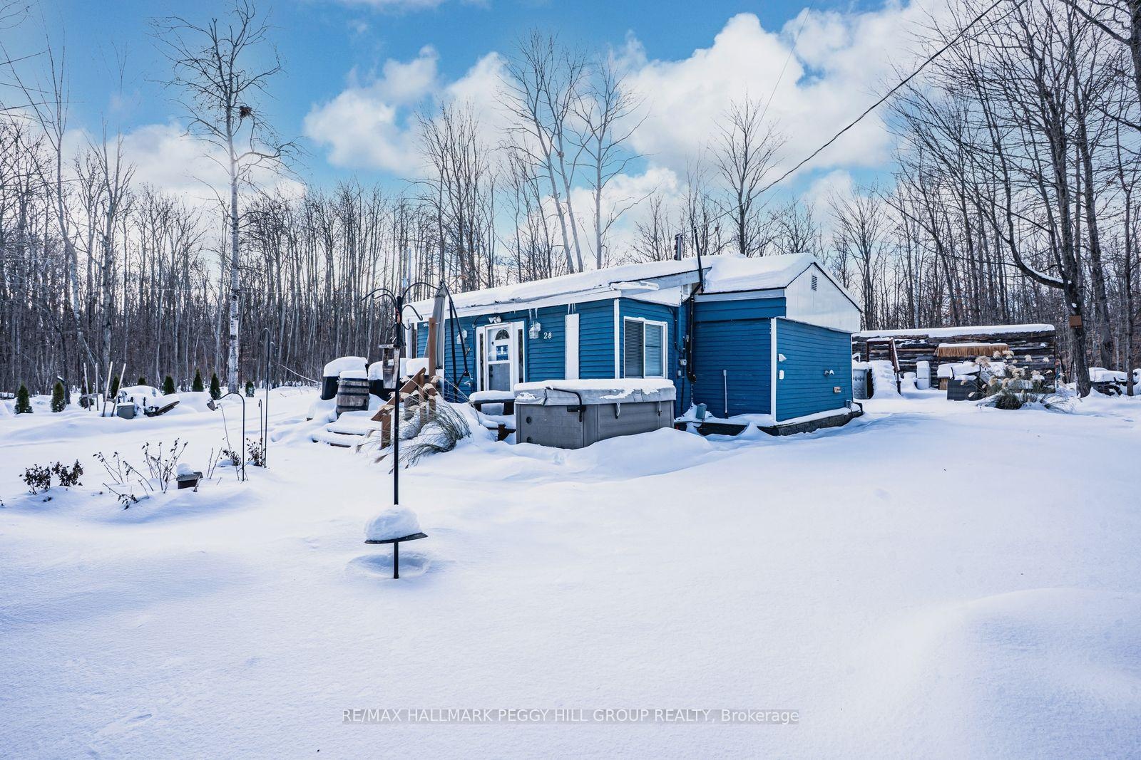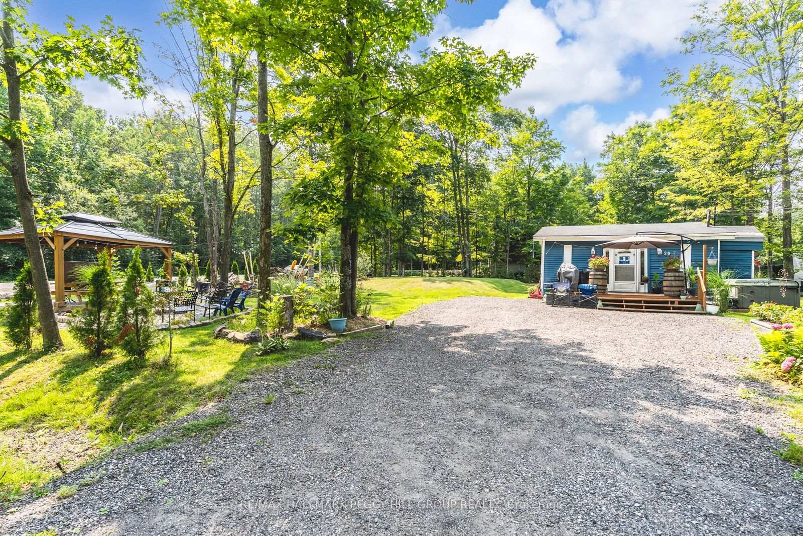 MOVE-IN-READY BUNGALOW ON A 150 X 100 FT LOT WITH POOL & GORGEOUS LANDSCAPING NEAR THE WATERFRONT! Close to the water and minutes from downtown, this beautifully maintained bungalow located at 28 Wozniak Road offers a relaxing lifestyle on a generous 150 x 100 ft corner lot. The property showcases gorgeous landscaping with mature trees, emerald cedars, colourful garden beds, and decorative landscape rocks that frame the space with natural beauty. Outdoor enjoyment takes centre stage with an above-ground pool with a wood platform, a patio, a 10 x 6 ft deck, and a hardtop gazebo with a fire pit. Three driveways provide convenient parking options, and a 50-amp breaker in the side yard is ready for RV hookup or future outbuilding power. The open layout feels bright and inviting, featuring easy-care laminate flooring, neutral paint tones, and a functional kitchen with grey cabinetry, a tile backsplash, and a large pantry. Two bedrooms and a 3-piece bath with laundry offer practical, one-level living. Recent updates include newer shingles, repainted blue vinyl siding, and a newer front deck, giving this property a fresh, move-in-ready feel. Located close to the waterfront trail, Discovery Harbour, King's Wharf Theatre, the Centennial Museum, local shops, restaurants, parks, and schools, this #HomeToStay combines comfort and convenience in a setting you'll love!
