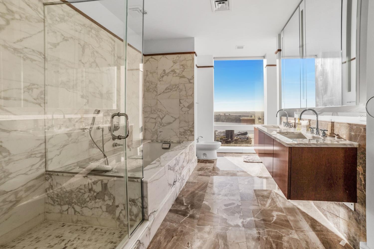 This exquisite, well-proportioned corner three-bedroom, three-and-a-half-bathroom apartment is located on the 69th floor of one of the most prestigious buildings in New York City. The apartment offers 360-degree spectacular views of Central Park, the George Washington Bridge, the Hudson River, and the City. It features high ceilings, ample closet space, marble bathrooms, a windowed eat-in kitchen with high-end appliances, and a washer and dryer. The corner living room boasts impressive views and is ideal for entertaining or smaller gatherings. All bedrooms have en-suite bathrooms and no shared walls. The five-star, full-service building has a state-of-the-art gym, an impressive space for private parties and meetings, a massage room, a children's playroom, a beautifully landscaped rooftop deck, a business center, a private screening room, and, most importantly, the best team to assist you with everything you need. Residents enjoy complimentary use of the amenities and swimming pool at the Mandarin Oriental Spa, located at the Mandarin Oriental Hotel, which they can access without going outside. The parking garage is in the building, and there is also direct indoor access to the shopping center, with dozens of shops, a Whole Foods store, and several top restaurants.